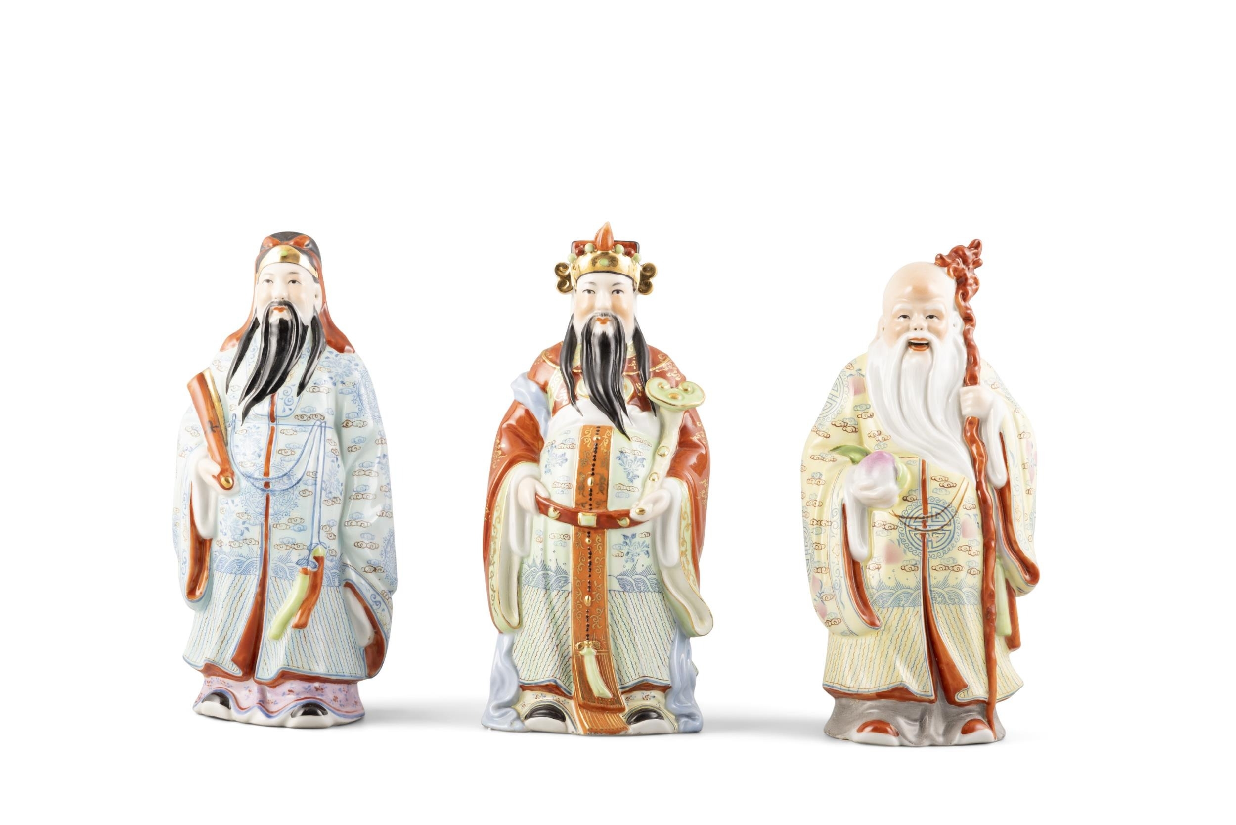 A GROUP OF FAMILLE ROSE STYLE 'FU, LU, SHOU' SANXING FIGURES 20????? ???????? China, late 20th century H: 20.6 - 21cm Provenance: Collection of Professor Sean Mackey (1917-1997) ????????????·??(1917-1997)?????