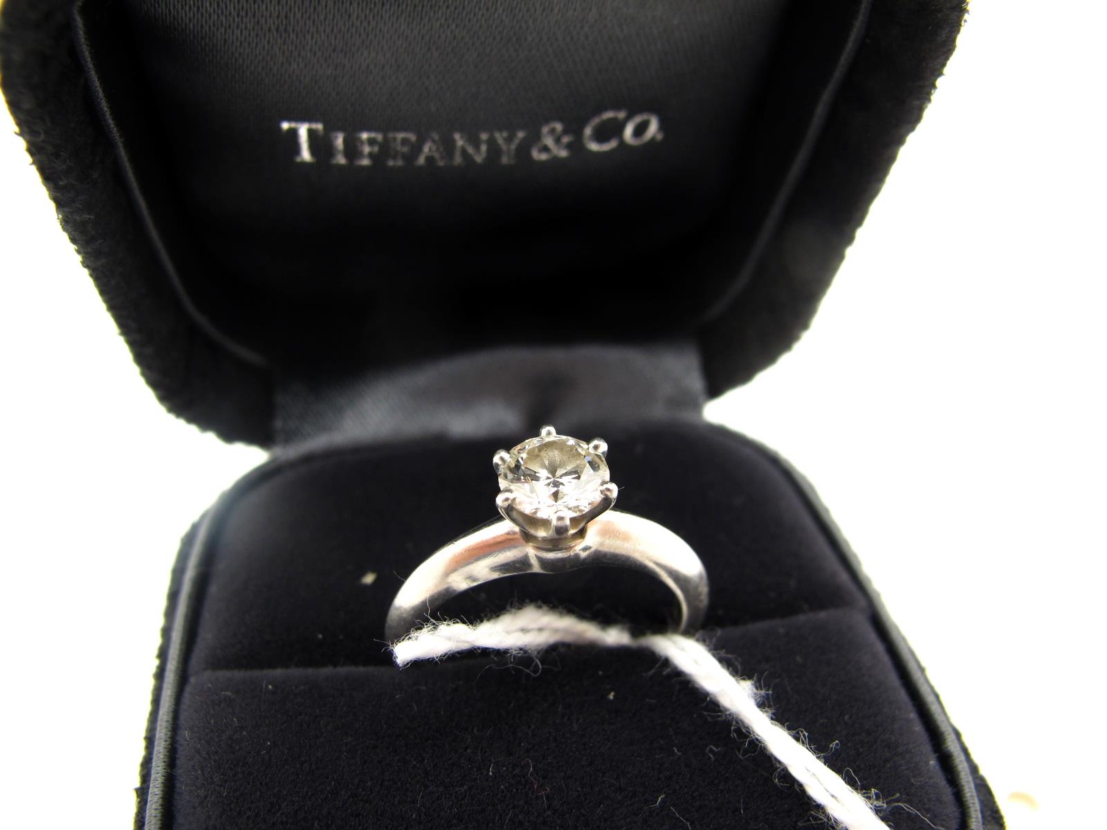 Tiffany & Co; A Modern Platinum Single Stone Diamond Ring, t...