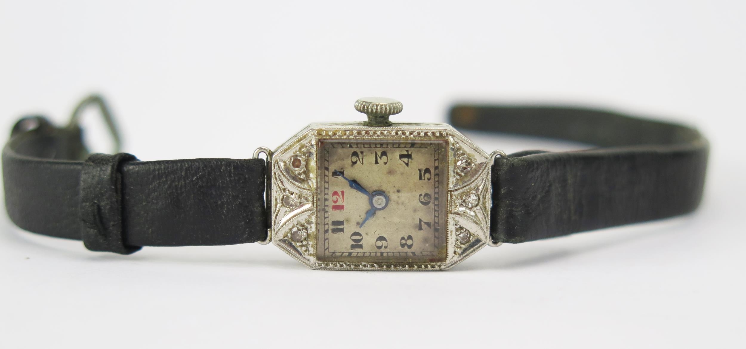 A Lady's Platinum and Diamond Set Wristwatch. Needs attention