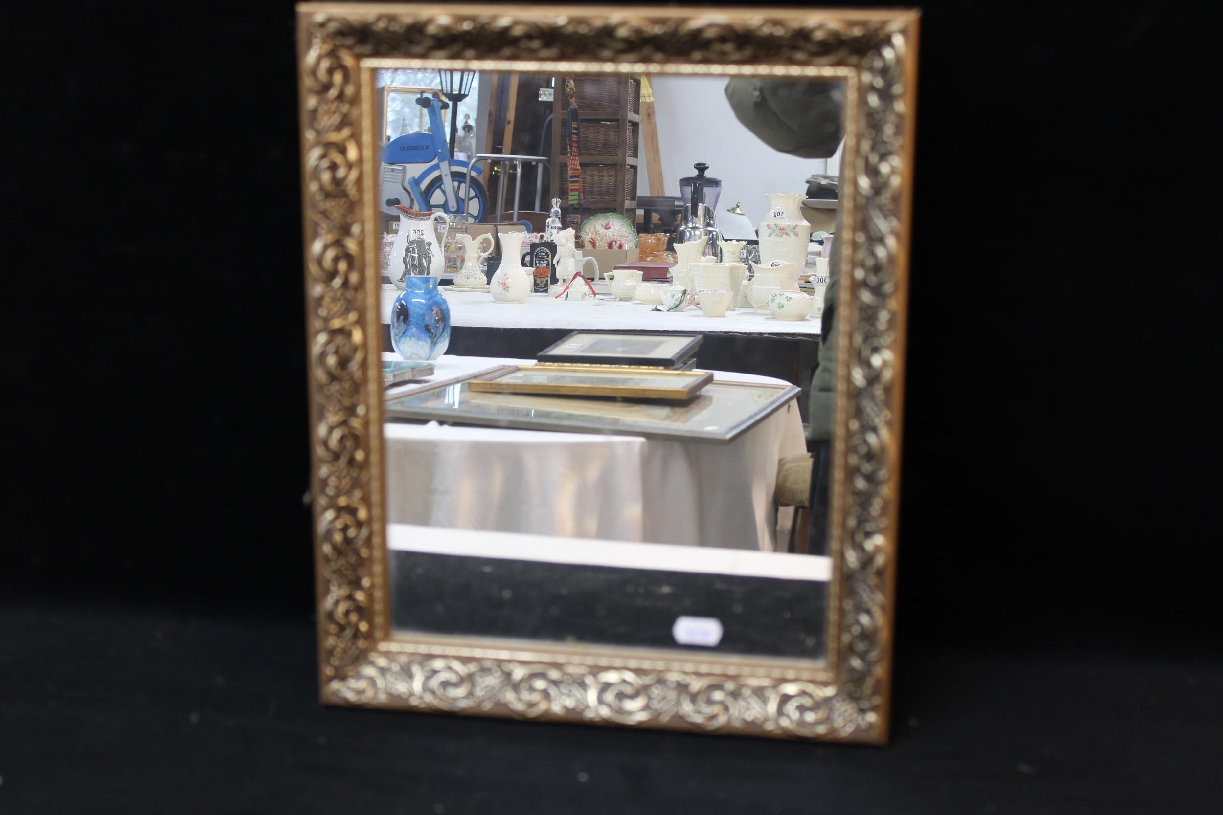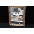 A decoratively framed mirror 41cm X 34cm