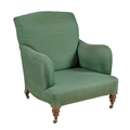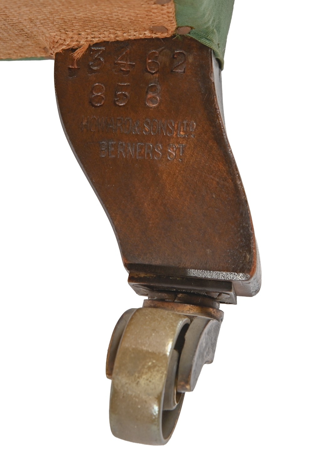 A Victorian easy armchair, Howard of Berners Street, c1900 on turned or square walnut legswith brass castors, back leg stamped 13462/858 HOWARD & SONS LTD BERNERS STREET