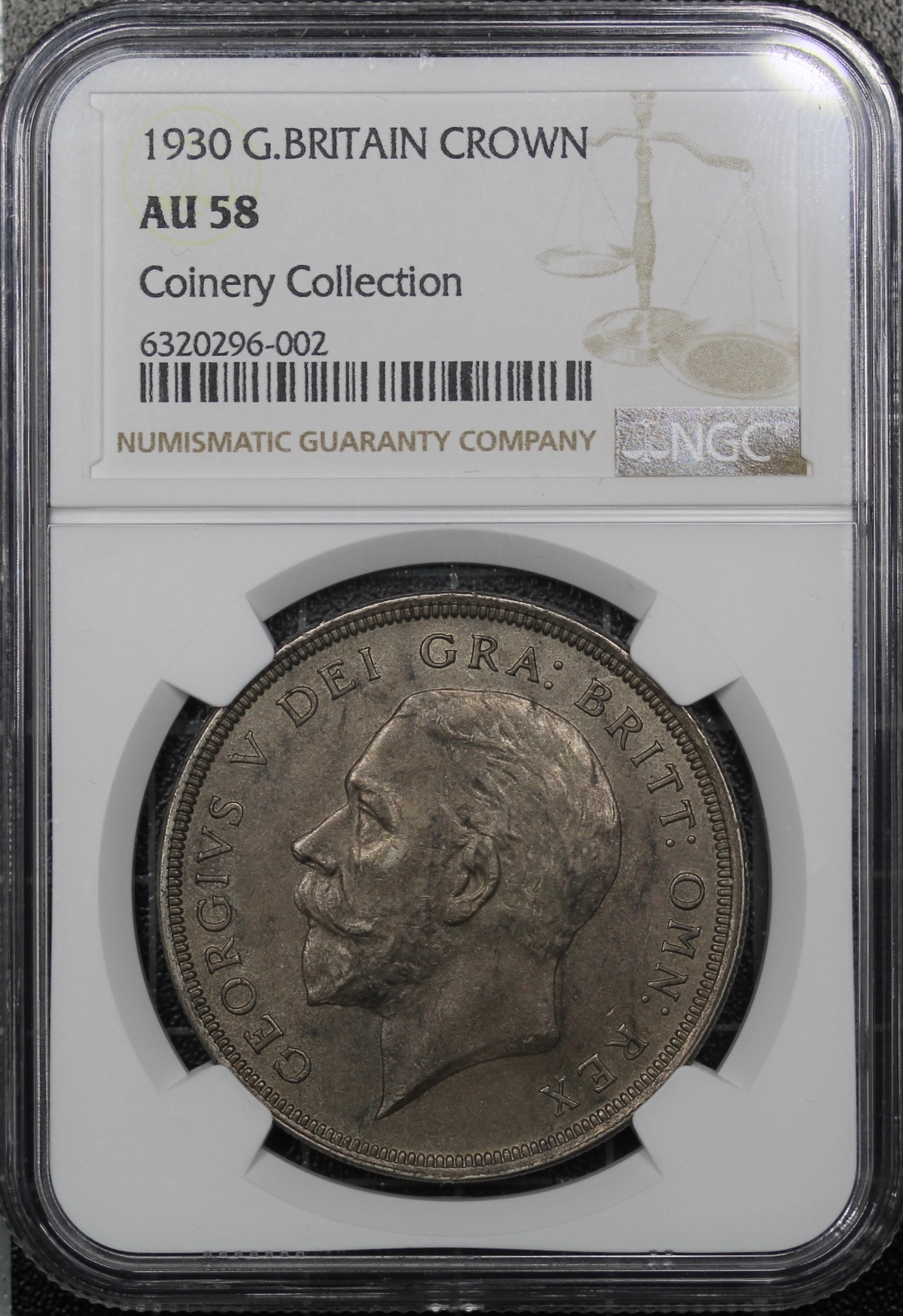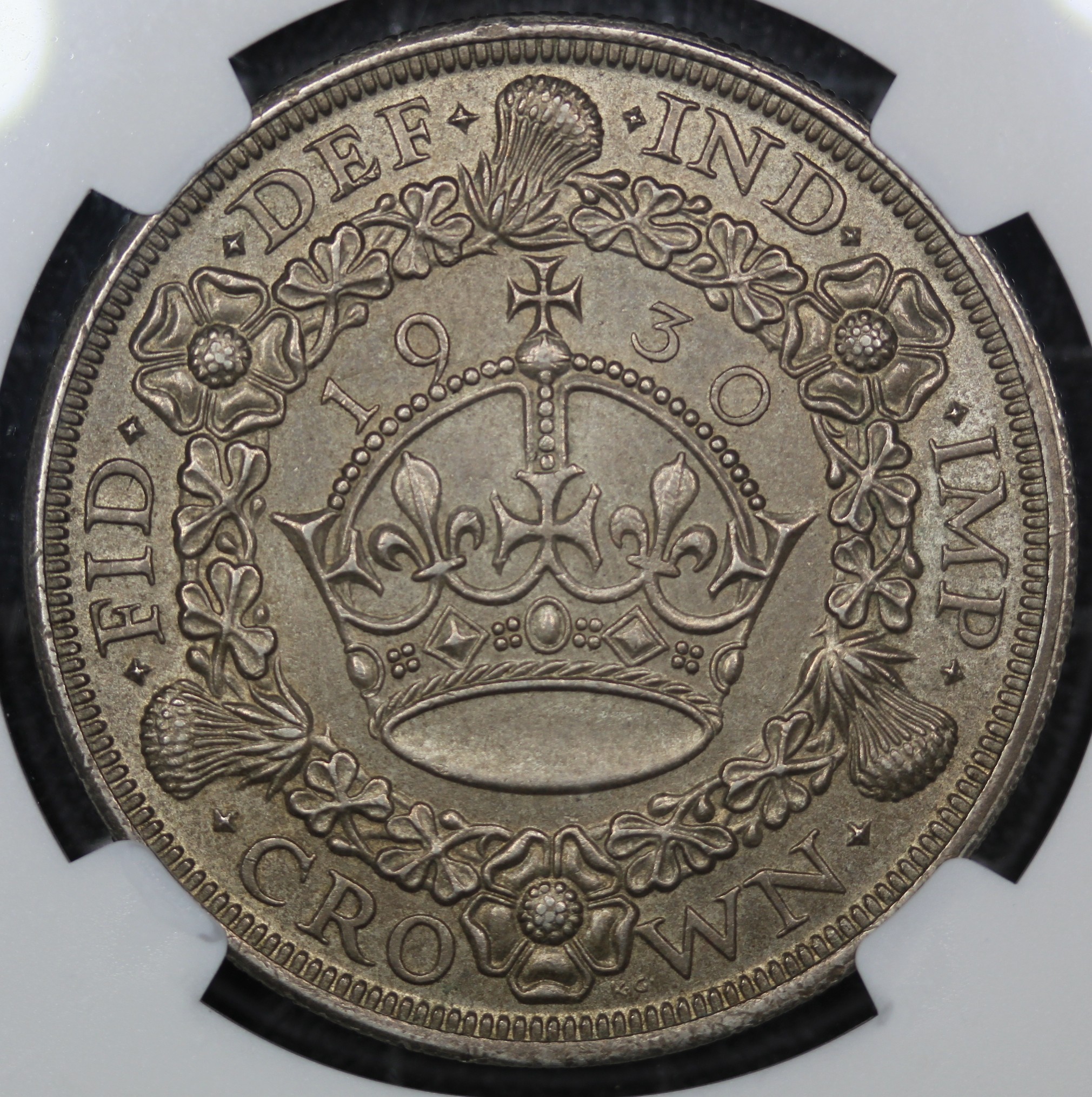 1930 Wreath Crown, George V (ESC 370, Bull 3638, S.4036). Graded NGS AU58, EF or better with a deep grey tone. Presented in a Coinery Collection holder. One of 4,847 coins struck.