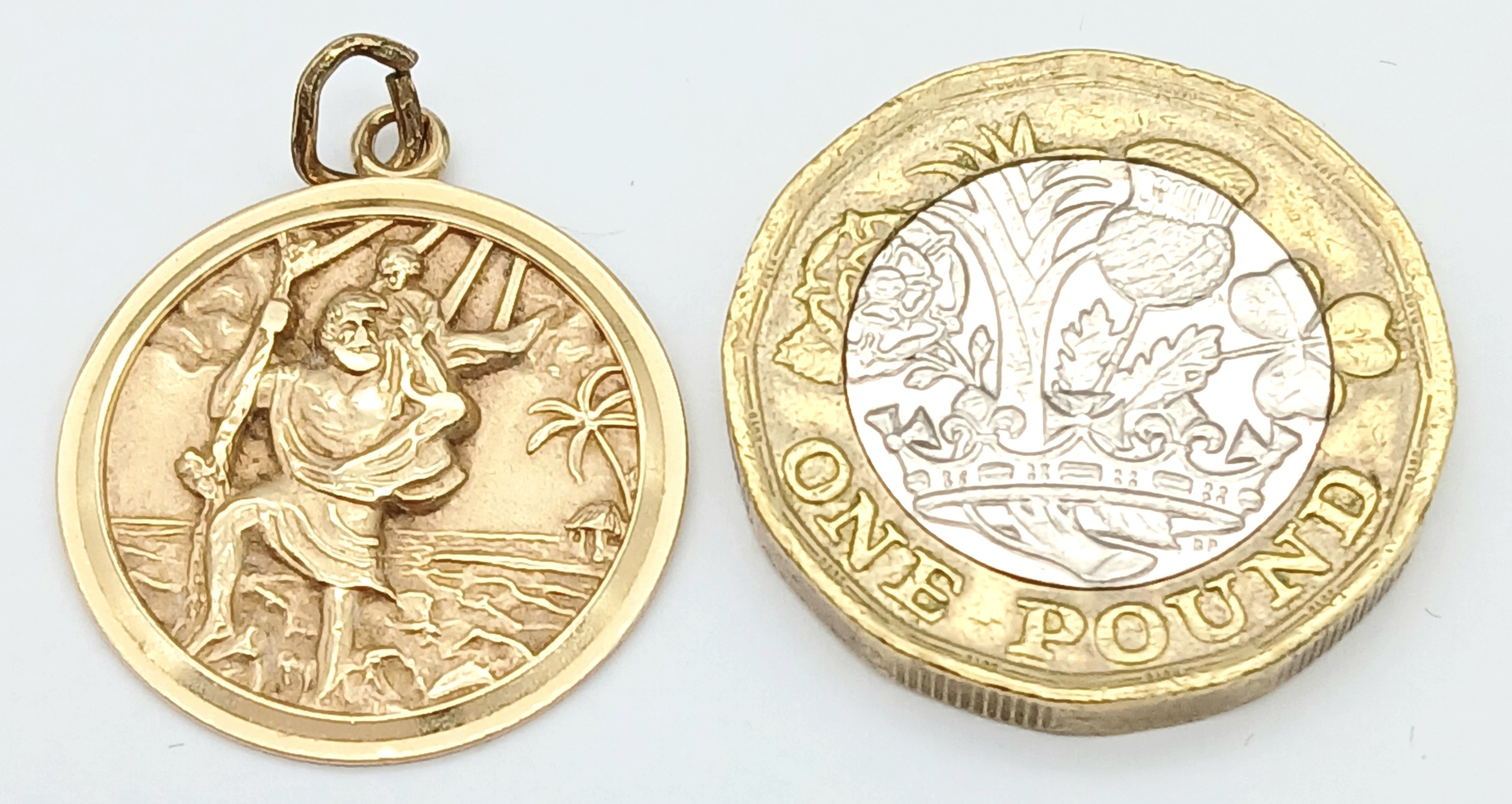 Fully hallmarked 9 CARAT GOLD St CHRISTOPHER MEDALLION. 2.2 Grams. 2 .0 cm Diameter. Lovely raised detail. Please see pictures.