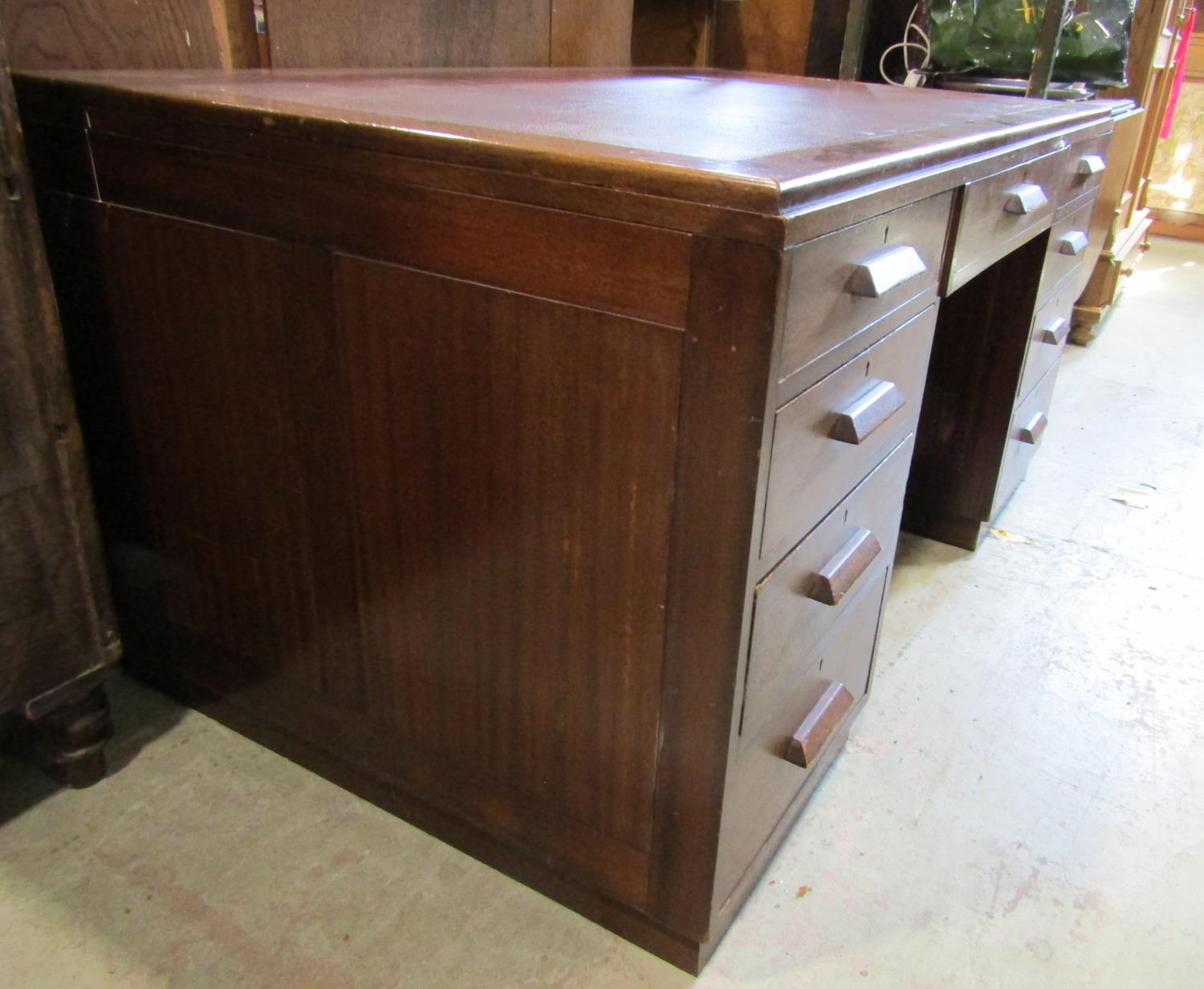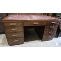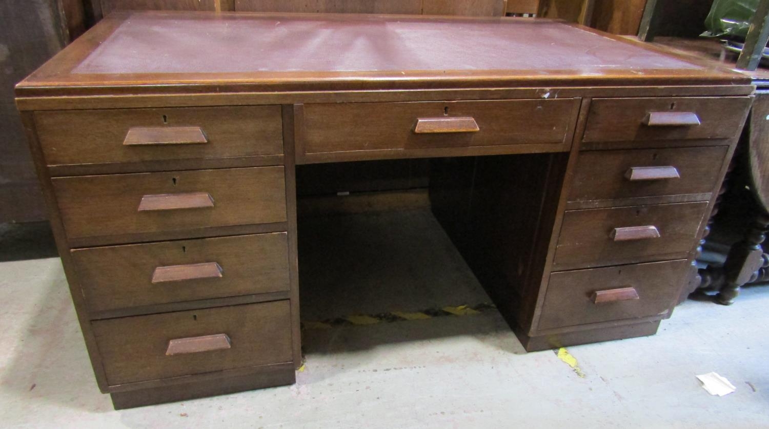 An art deco period writing desk, with nine drawers beneath an inset top, 153cm x 90cm