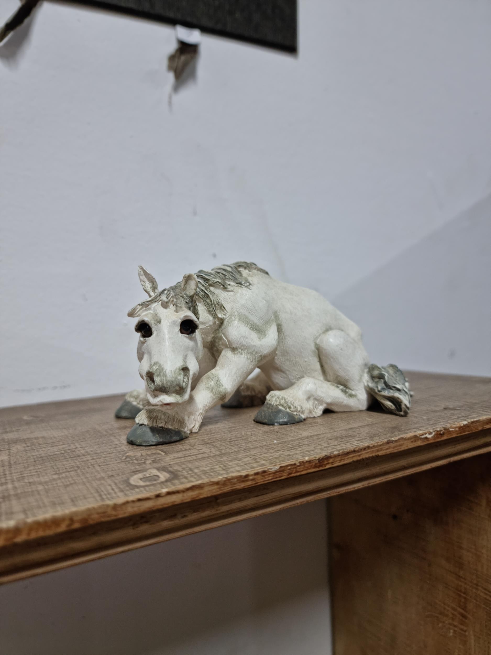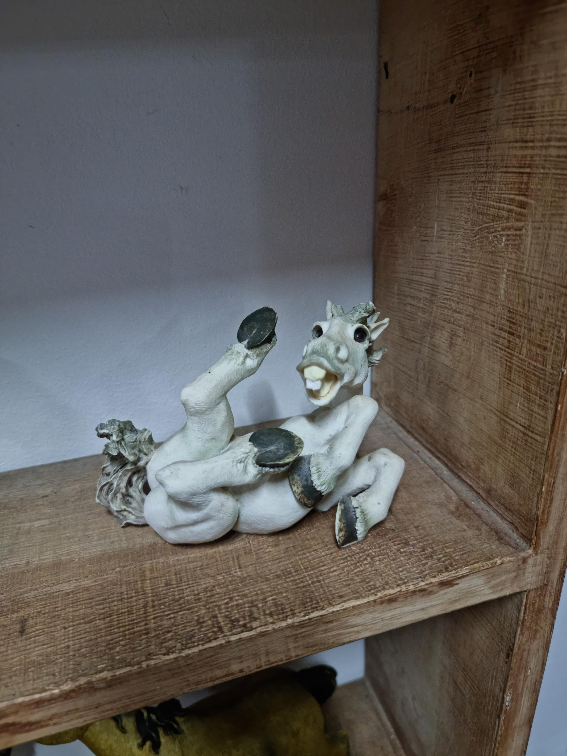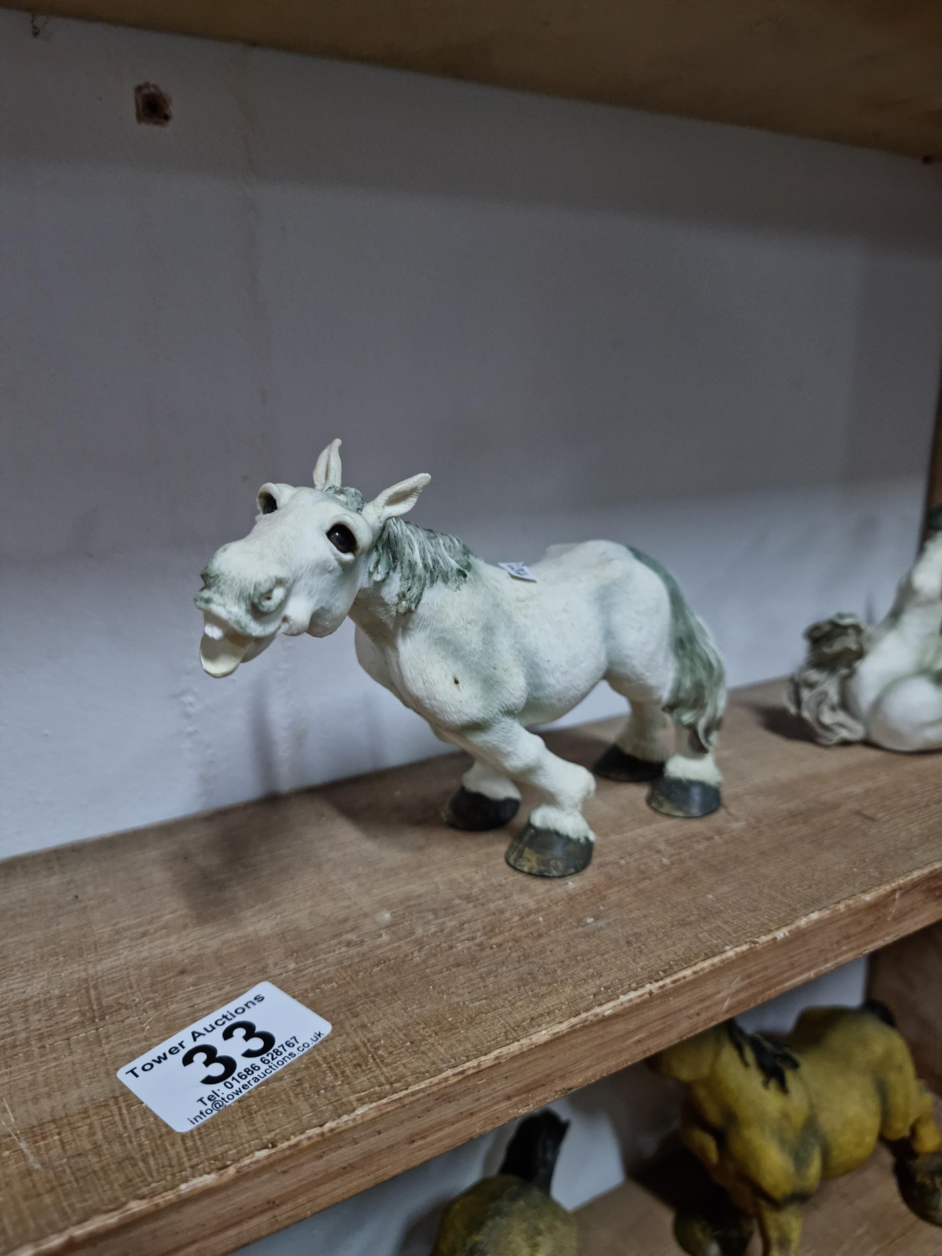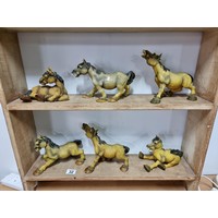 Quantity of 6x white Sealmark comical horse figures in resin in various different poses, all in good order and stamped Sealmark, largest figure measures 12cm high and 20cm long