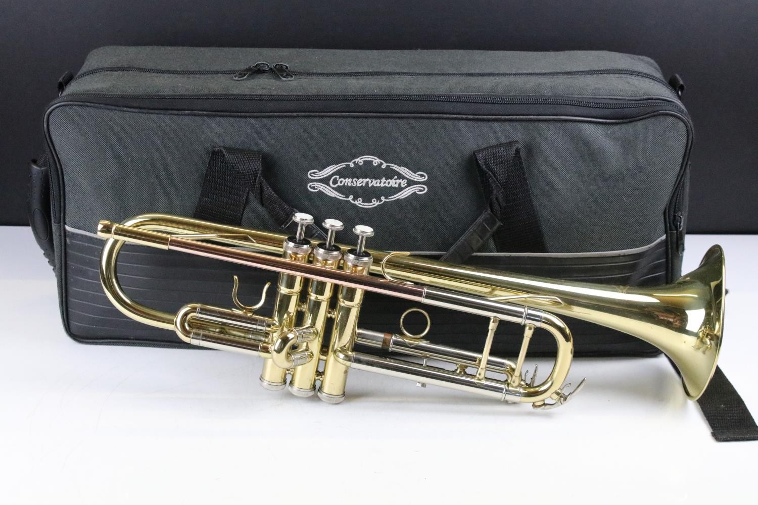 Conservatoire trumpet complete with mouthpiece and fitted carry case.