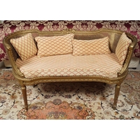 with bright cut scroll handles, and lozenge decoration baluster body, and faceted circular foot 12 cm. high