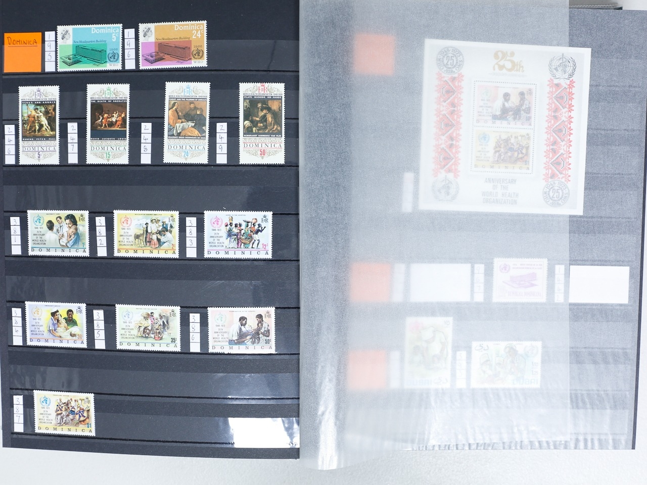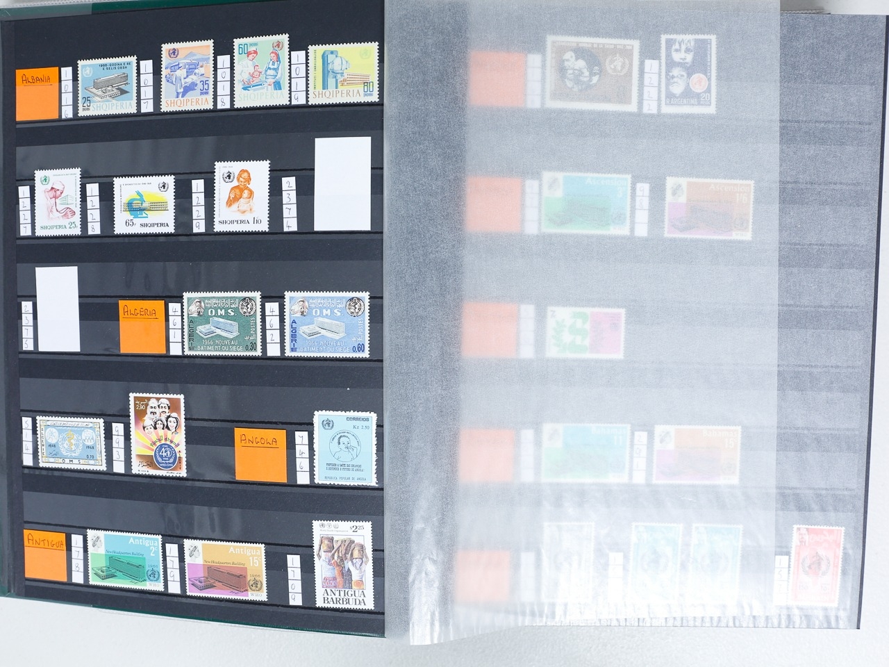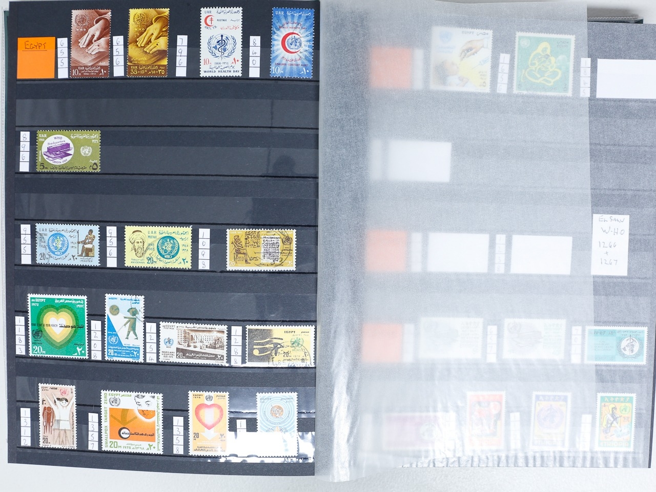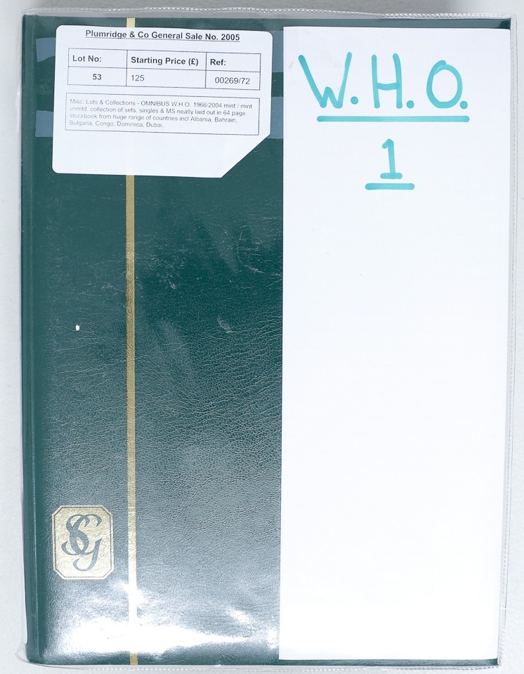 Misc. Lots & Collections OMNIBUS W.H.O. 1966/2004 mint / mint unmtd. collection of sets, singles & MS neatly laid out in 64 page stockbook from huge range of countries incl Albania, Bahrain, Bulgaria, Congo, Dominica, Dubai, Ethiopia, Gabon, Iraq, Jordan, Kuwait, Liberia, etc, etc, plus a few used, the collector has left spaces for the missing items, most are very fine, difficult lot to assemble, STC £995 (Ref: 00269/72)