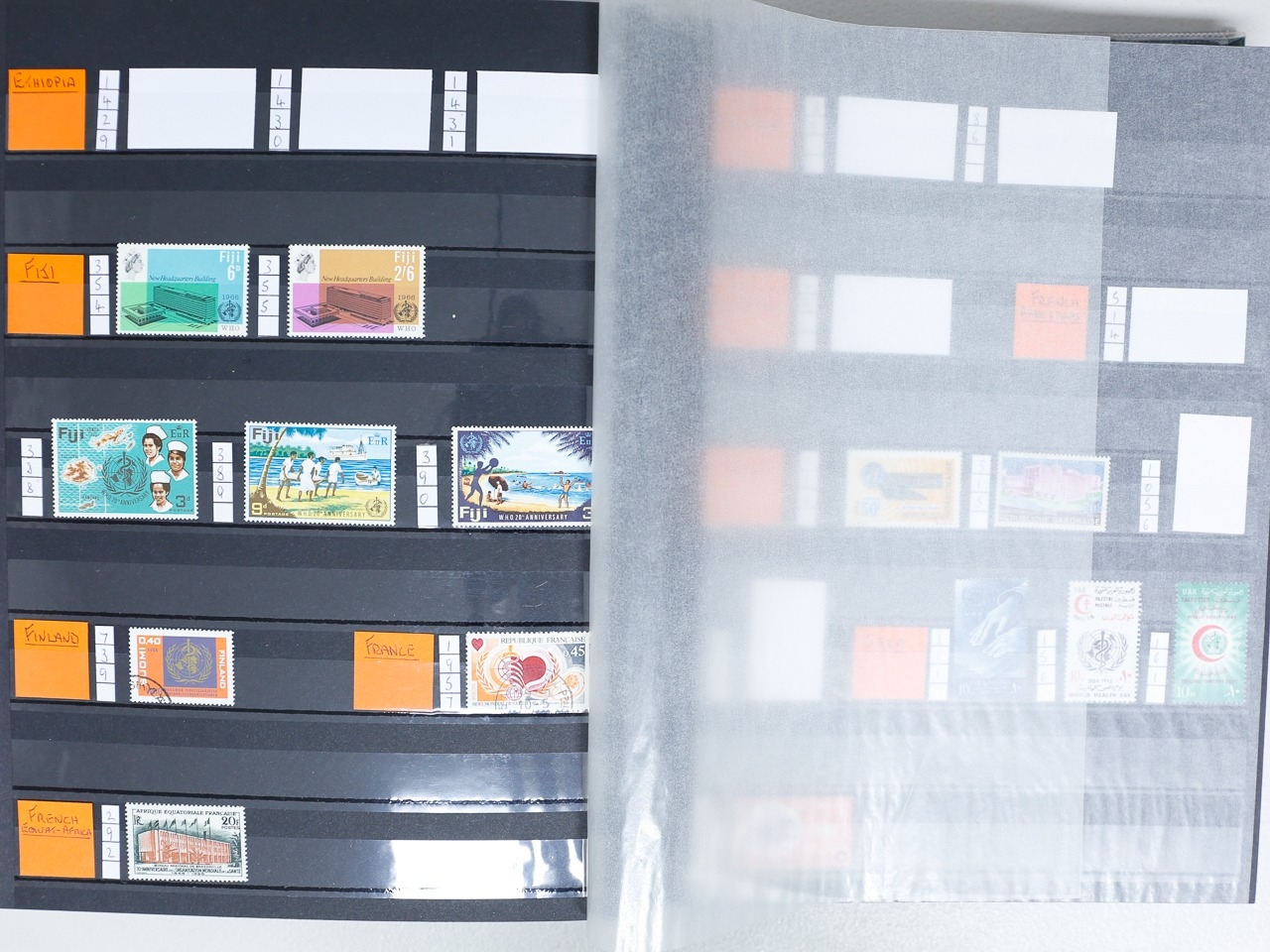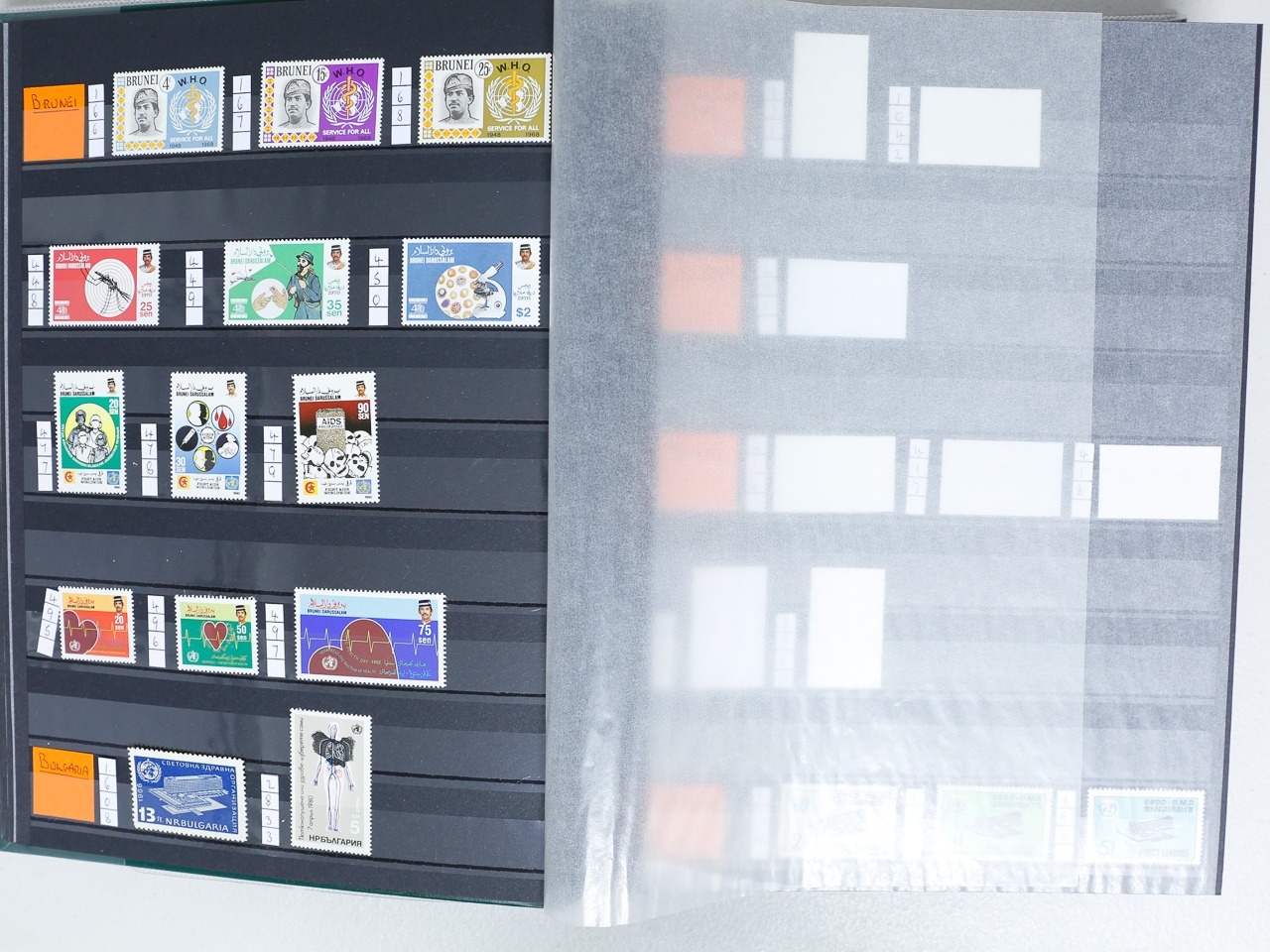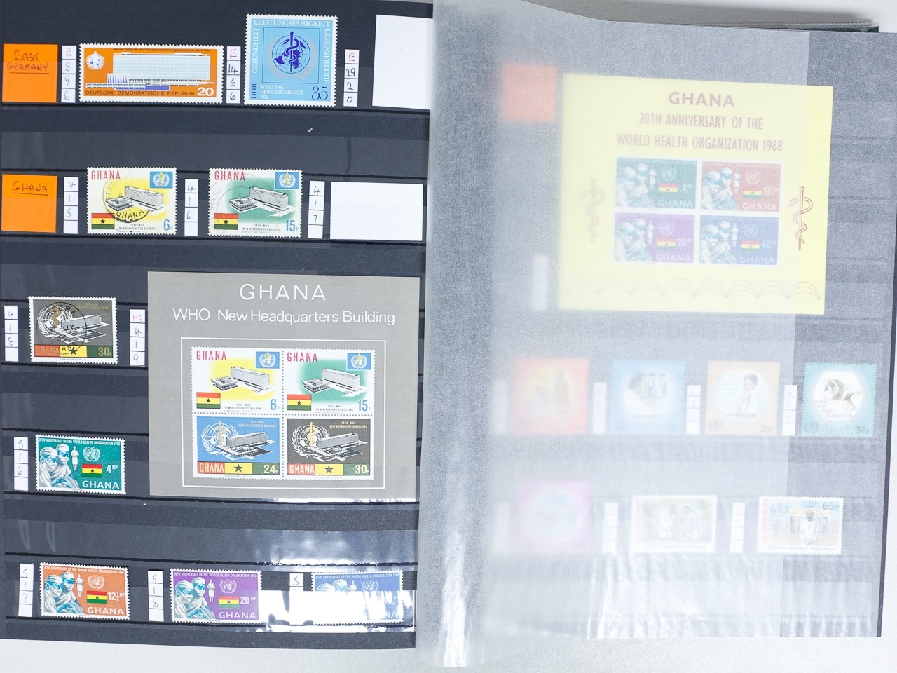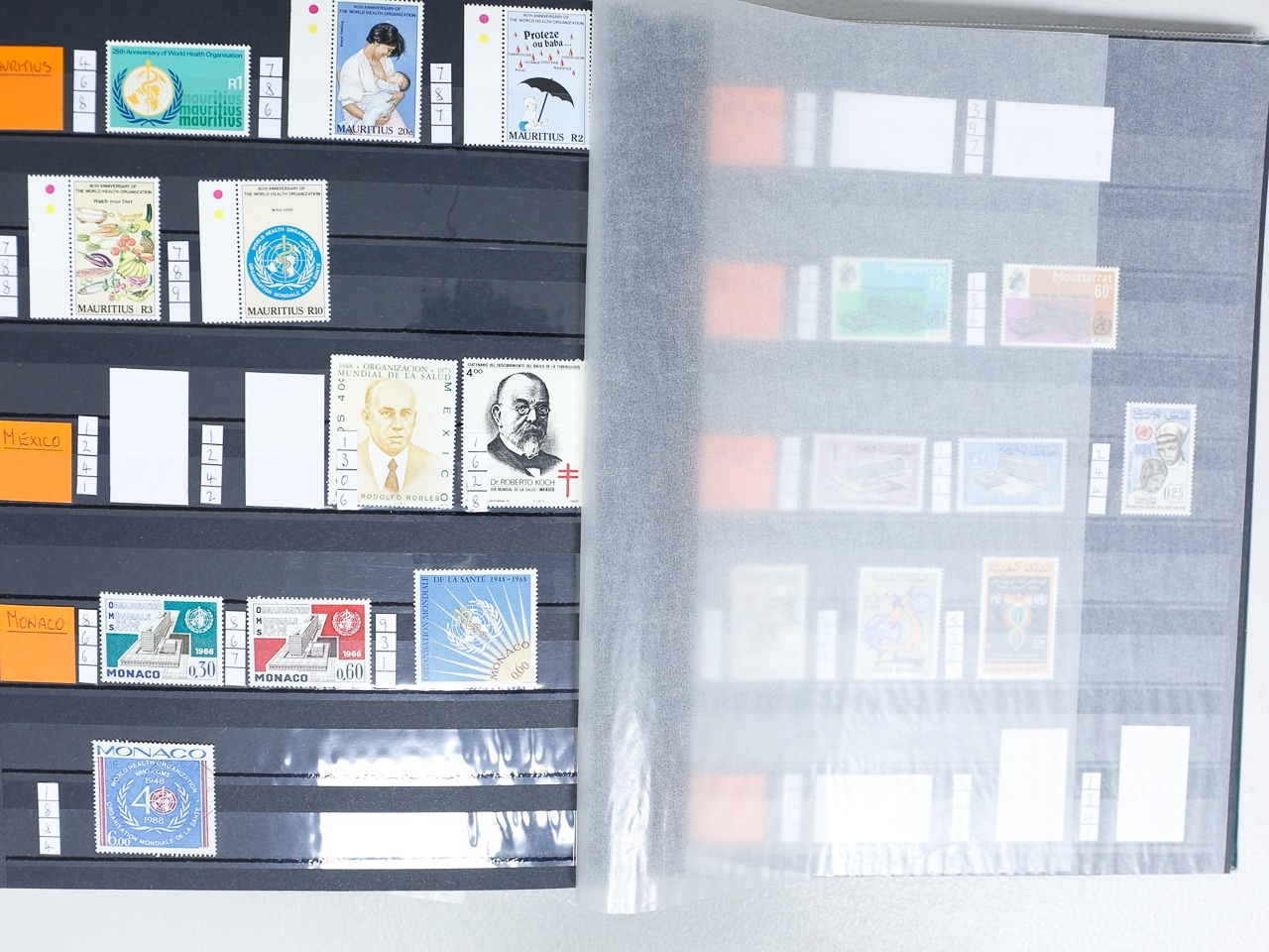 Misc. Lots & Collections OMNIBUS W.H.O. 1966/2004 mint / mint unmtd. collection of sets, singles & MS neatly laid out in 64 page stockbook from huge range of countries incl Albania, Bahrain, Bulgaria, Congo, Dominica, Dubai, Ethiopia, Gabon, Iraq, Jordan, Kuwait, Liberia, etc, etc, plus a few used, the collector has left spaces for the missing items, most are very fine, difficult lot to assemble, STC £995 (Ref: 00269/72)