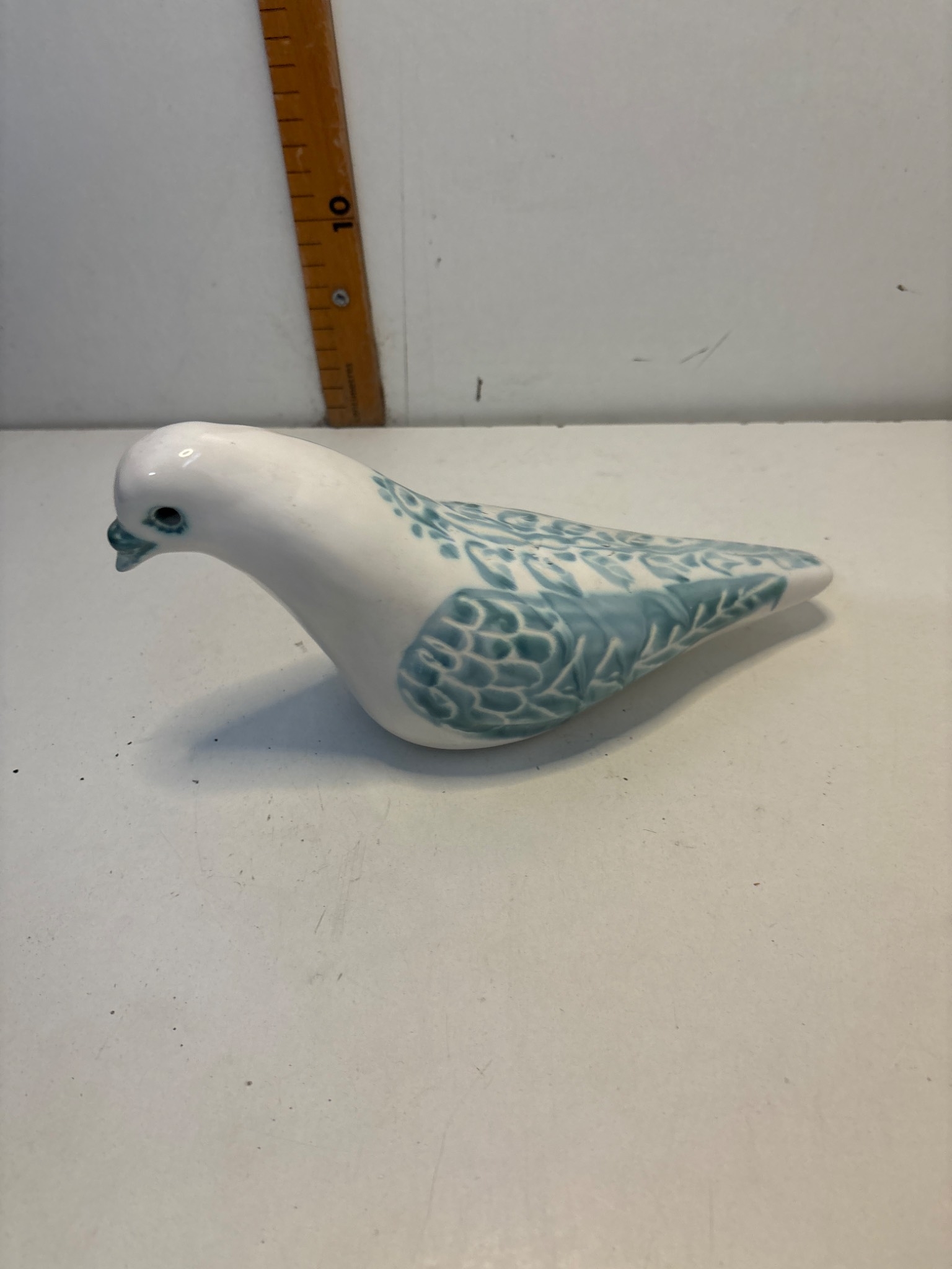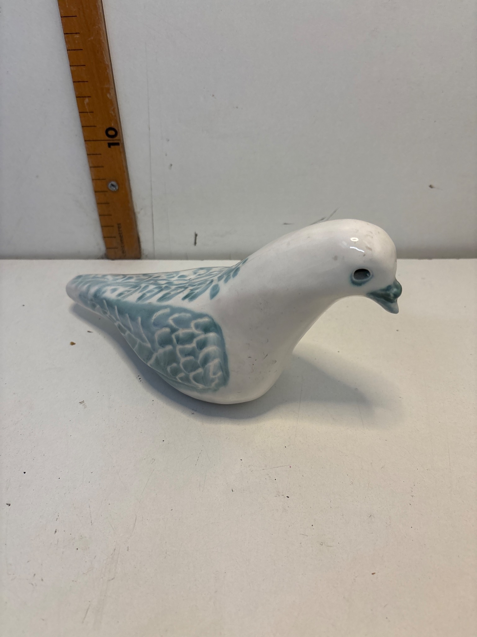 White porcelain dove with blue detailing, no visible damage.