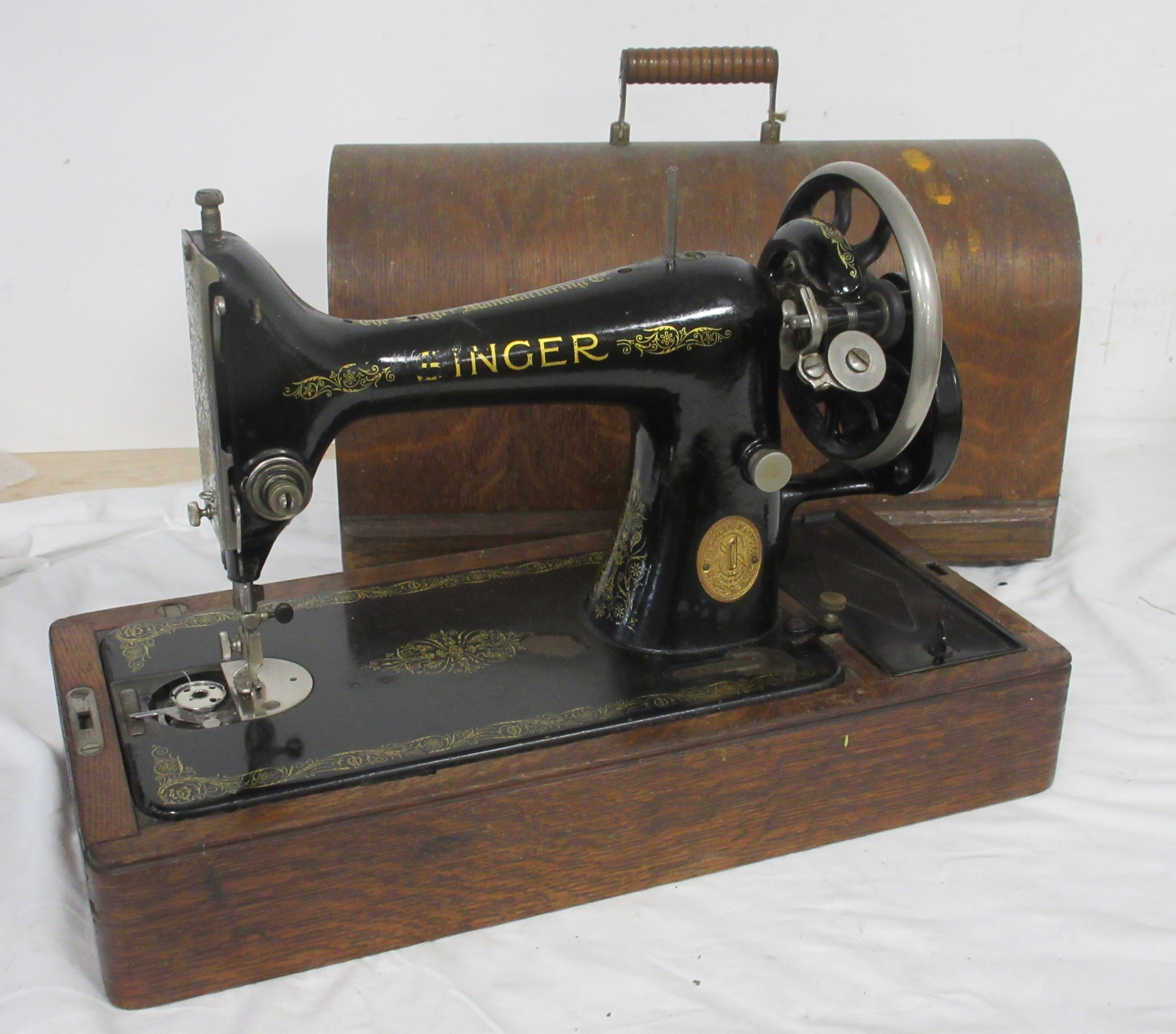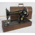 A Singer manual sewing machine Y5127485, in wooden case