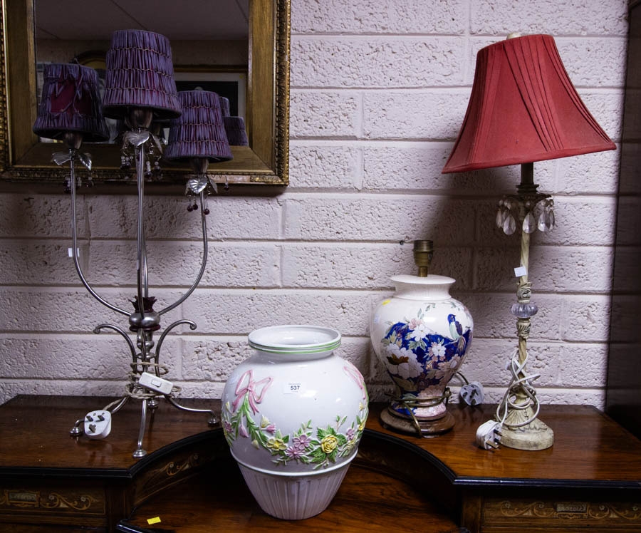 3 INTERESTING LAMPS & VASE - PROCEEDS TO HOSPICE