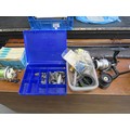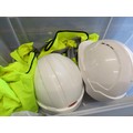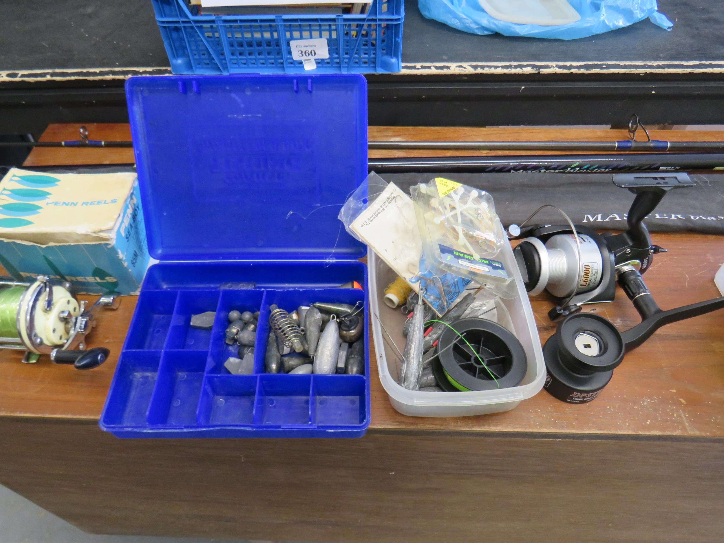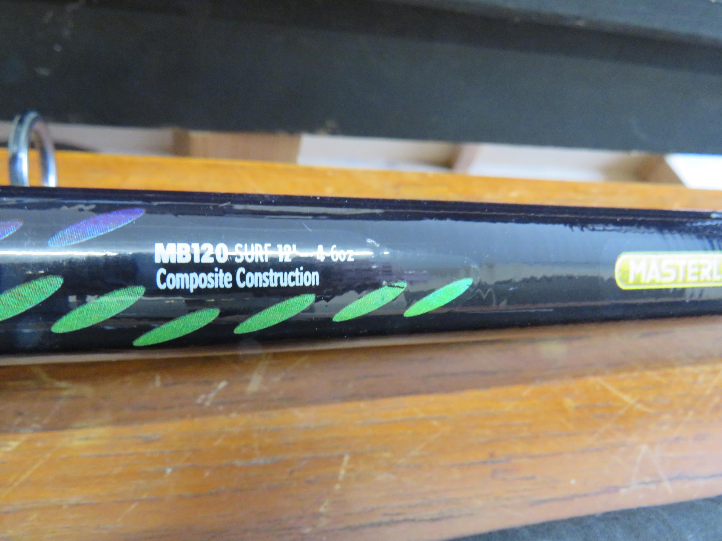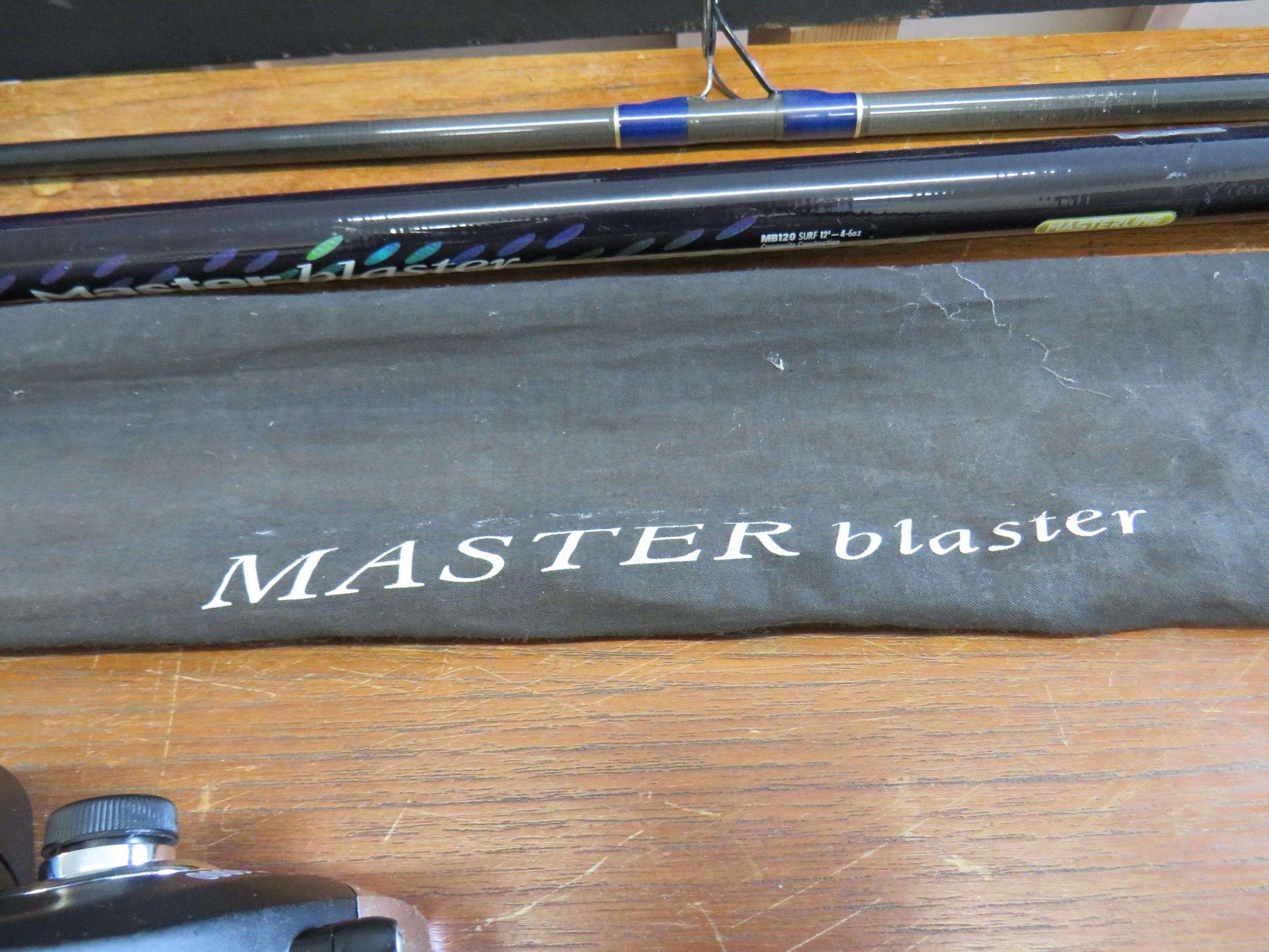 beach caster rod (new) with reel (new) znc multiplier reel in box and weighs builders helmes and safety vests