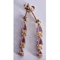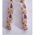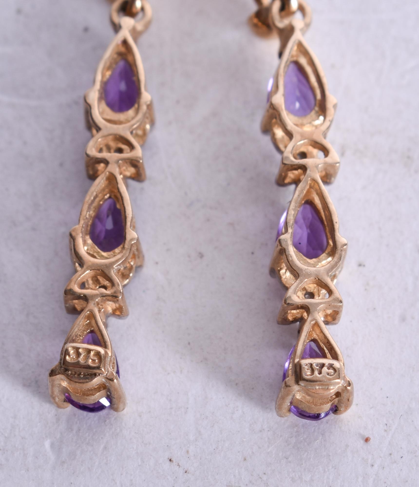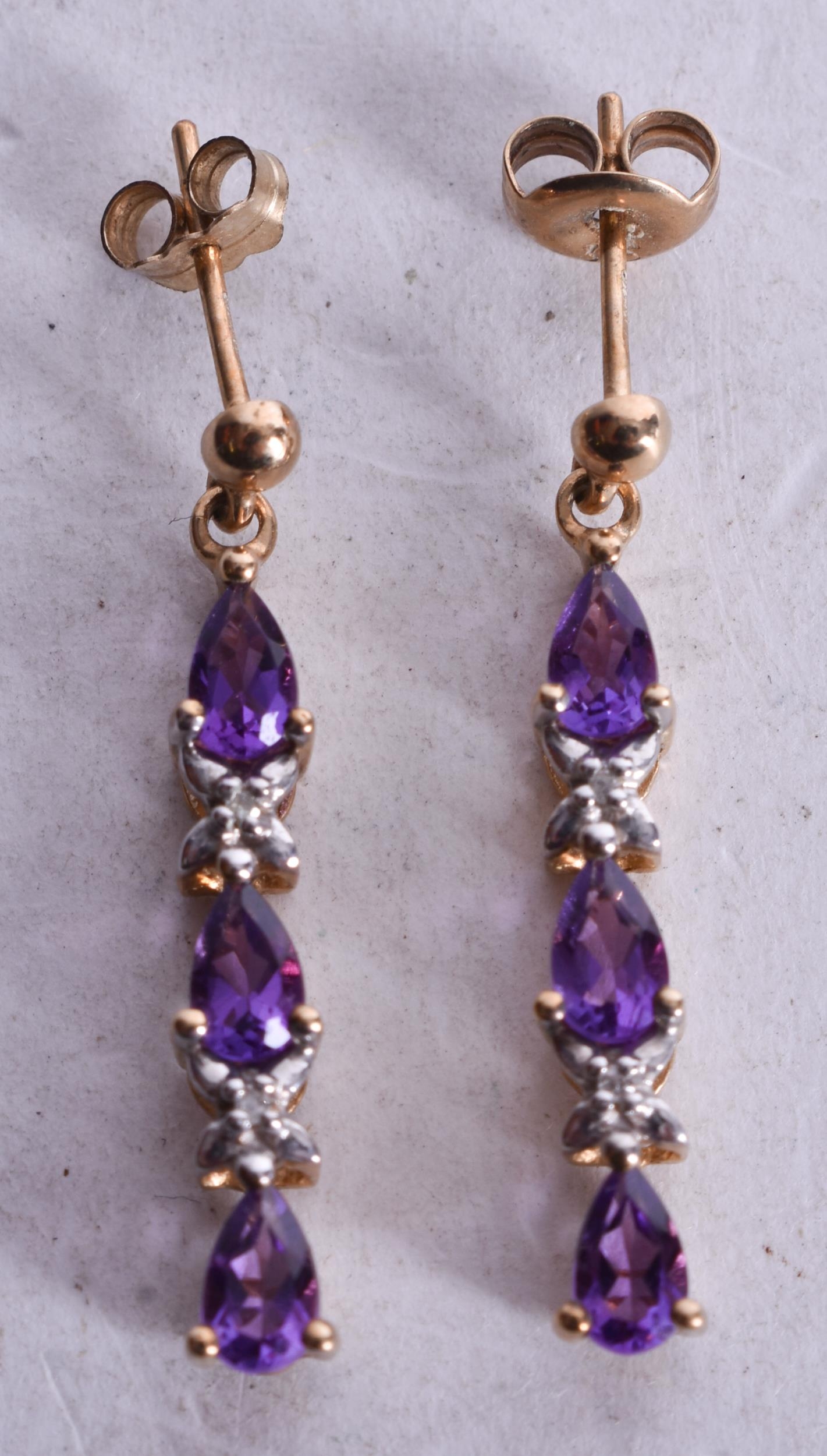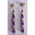 9ct gold amethyst diamond drop earrings (2g). 2.75 cm x 0.5 cm.