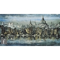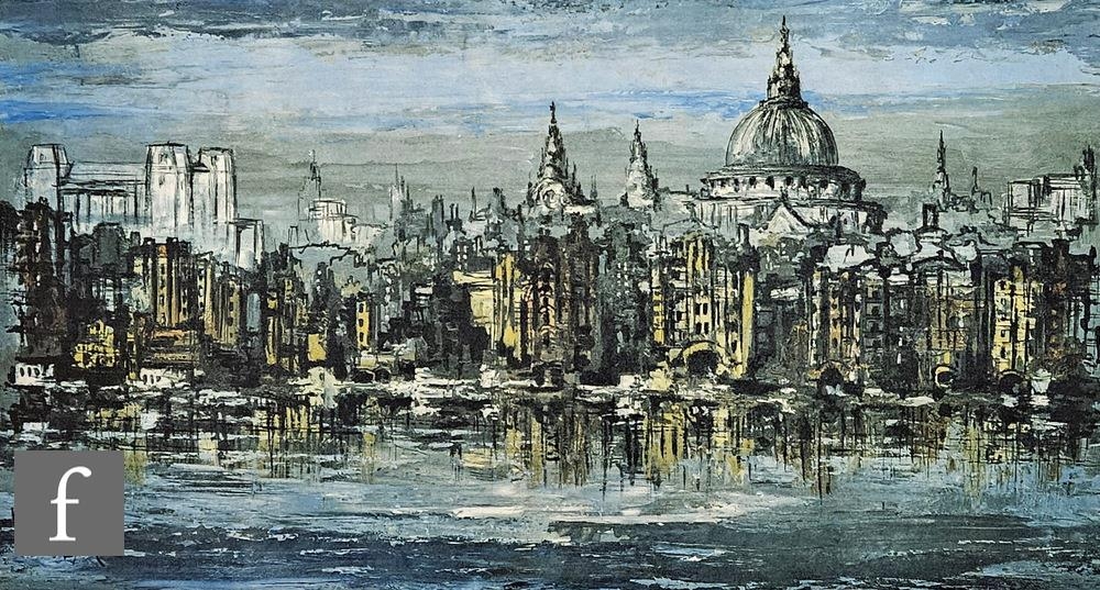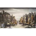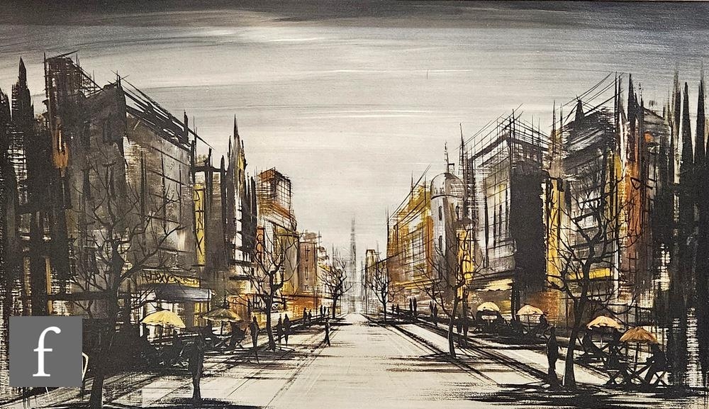 After Ron Folland (1932-1999) - 'Paris street scene', print on board, 58cm x 97cm, and after Ben Maile (1922-2017) 'London Rover Scene', print on board, framed.