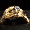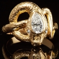 DIAMOND SNAKE RING, in 18 ct. gold. Designed as a curled snake, set with a pear shaped diamond to the head. Size L. 7.2 grams.