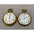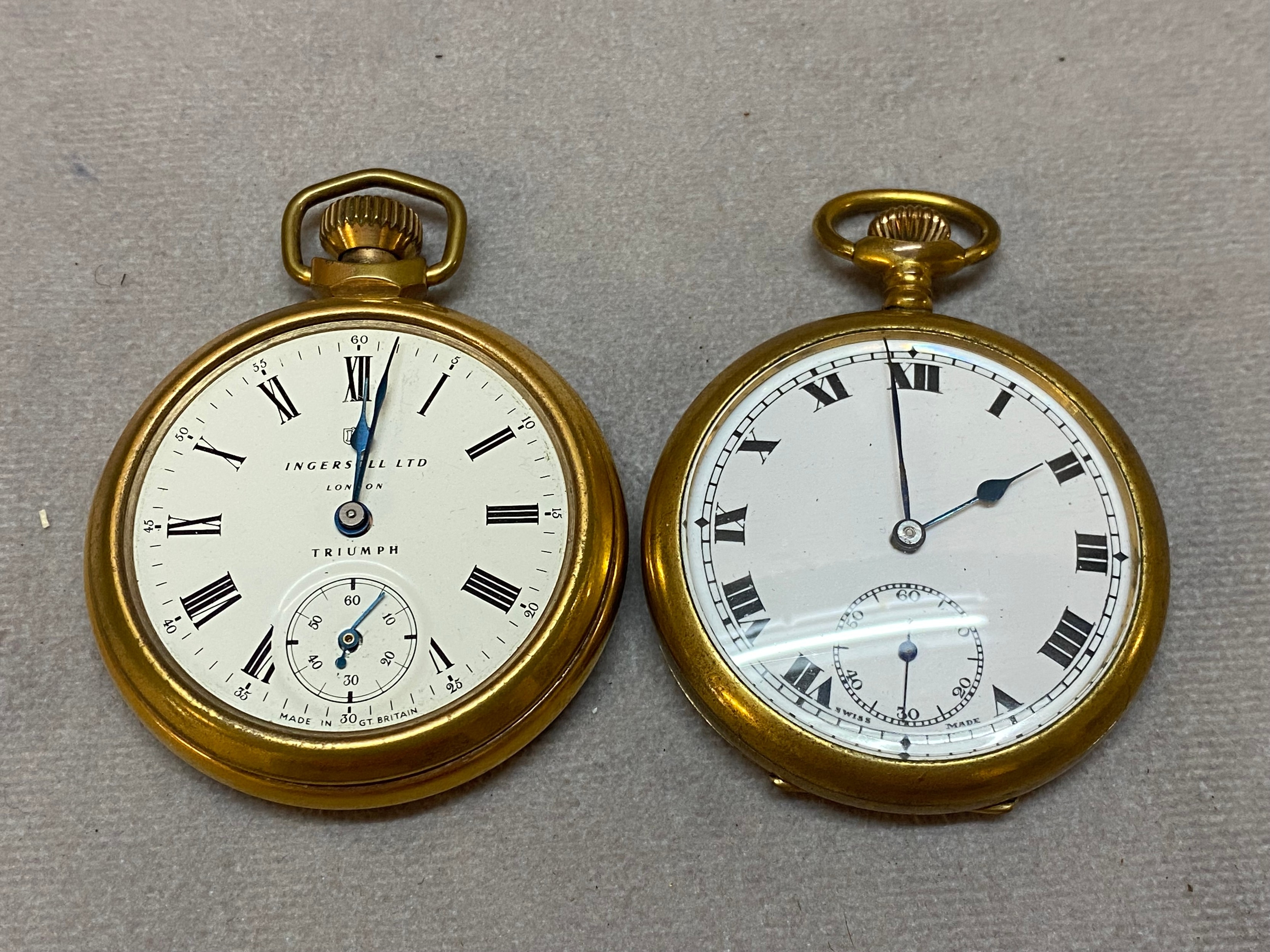 A gentleman's Ingersoll Triumph pocket watch in a gold plated case and one other gentleman's pocket watch, white enamel dial, seconds dial, in a gold plated case