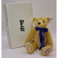 Steiff collectors mohair teddy bear blond 26cm. Boxed no certificate.