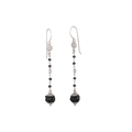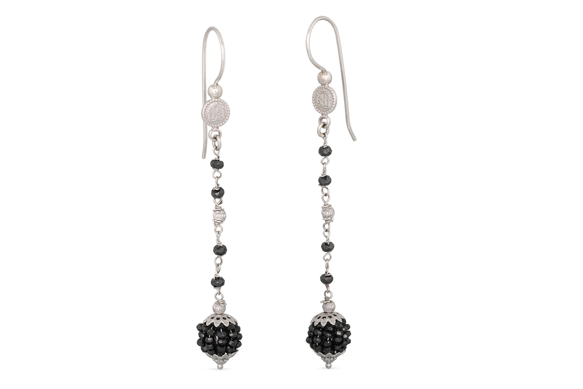 A PAIR OF ONYX DROP EARRINGS, mounted in white gold, 3" drop