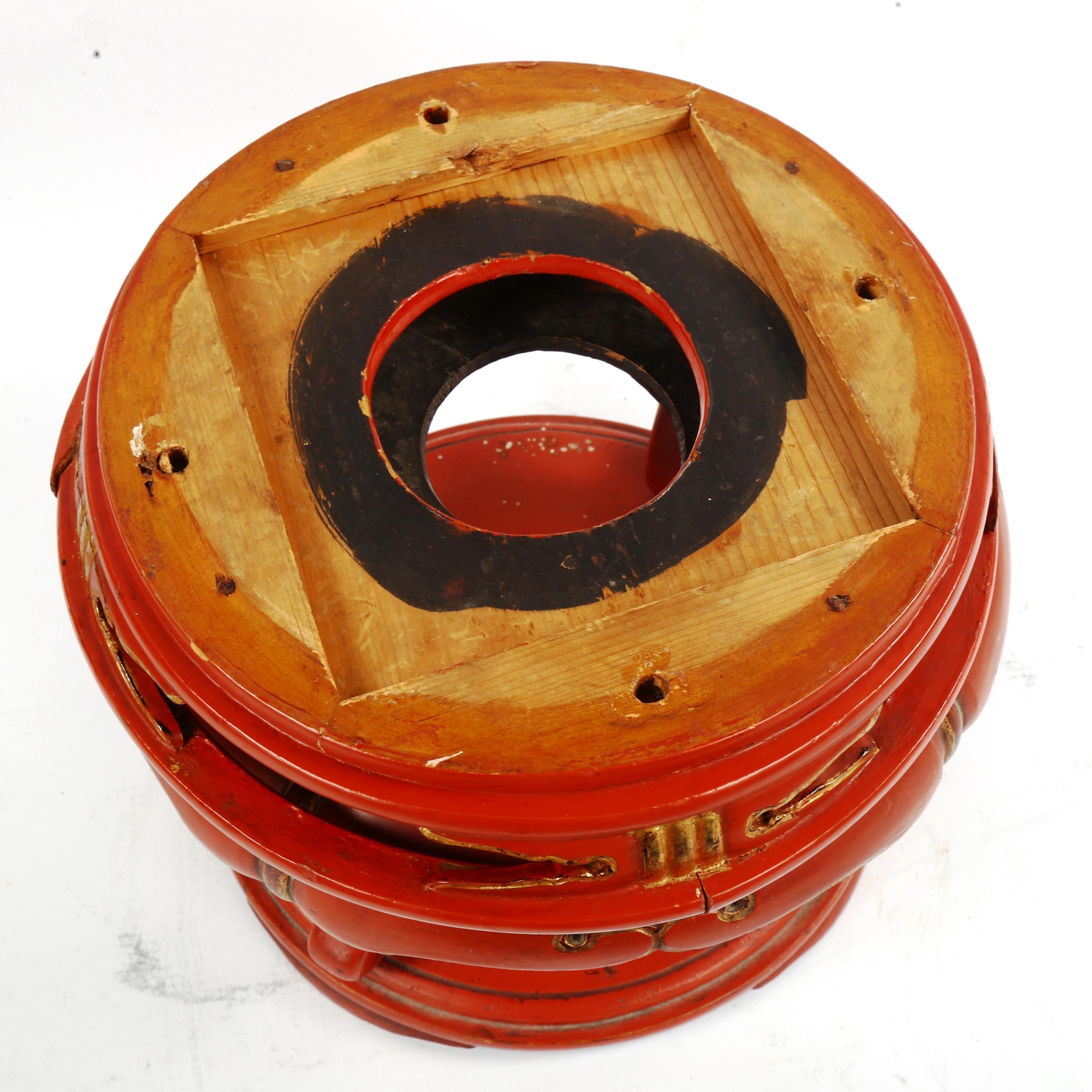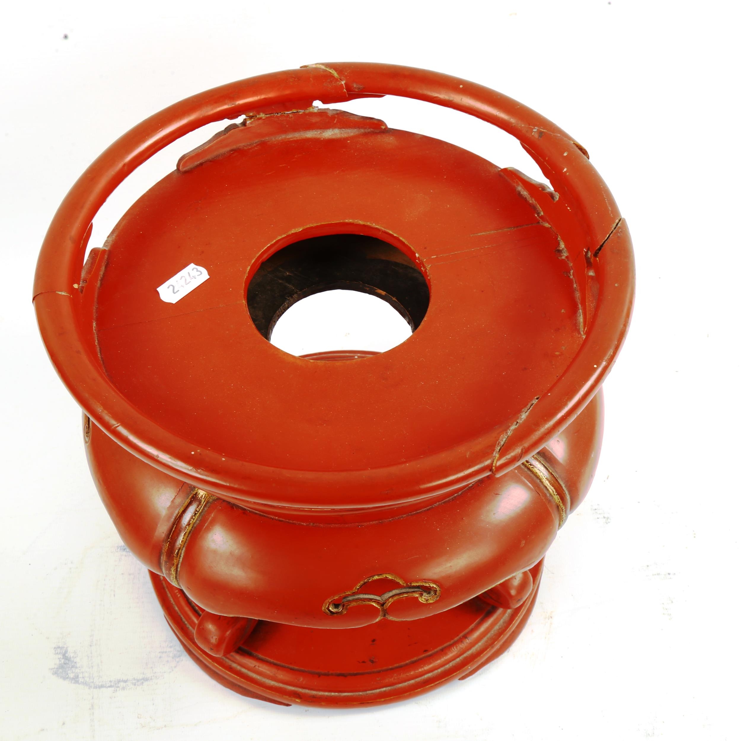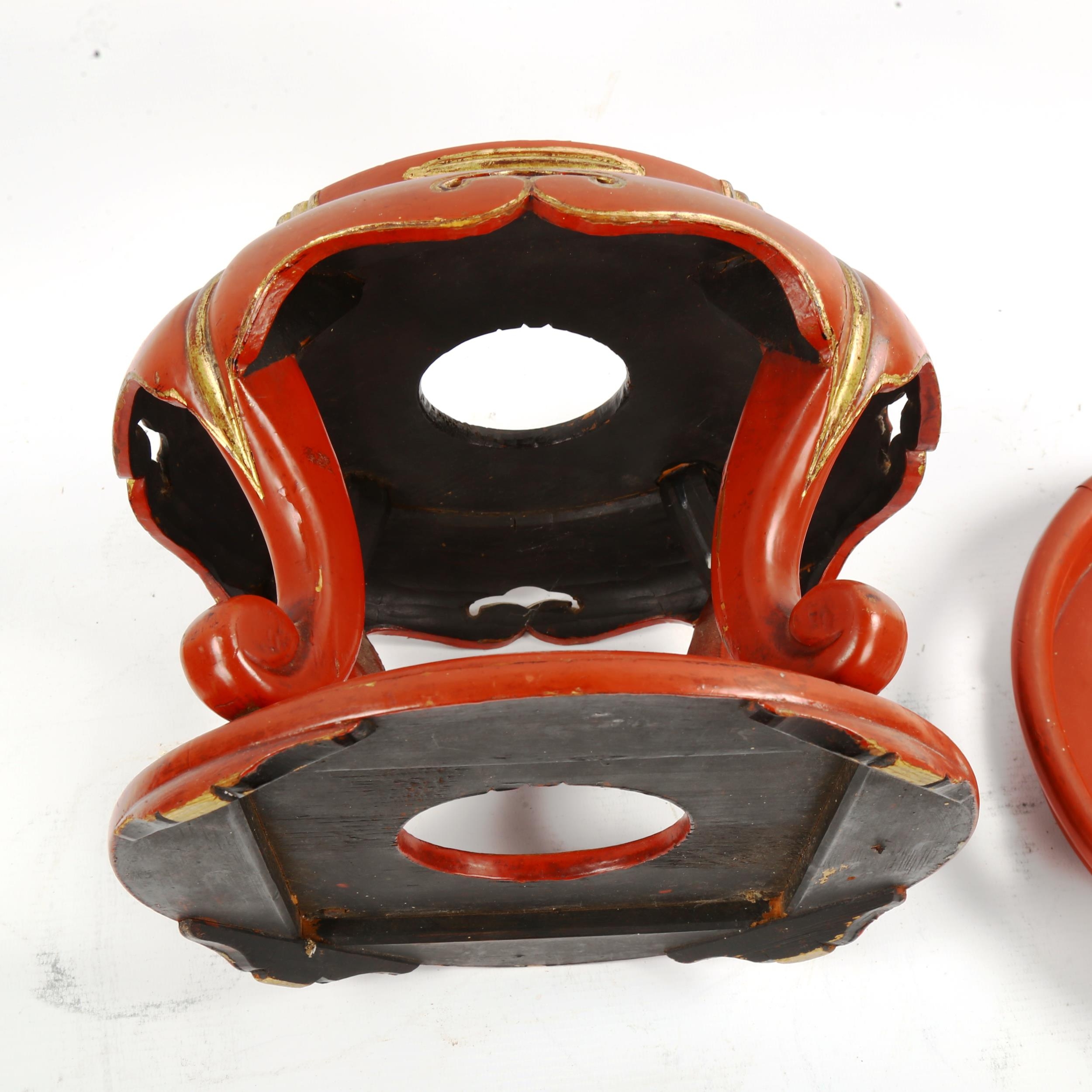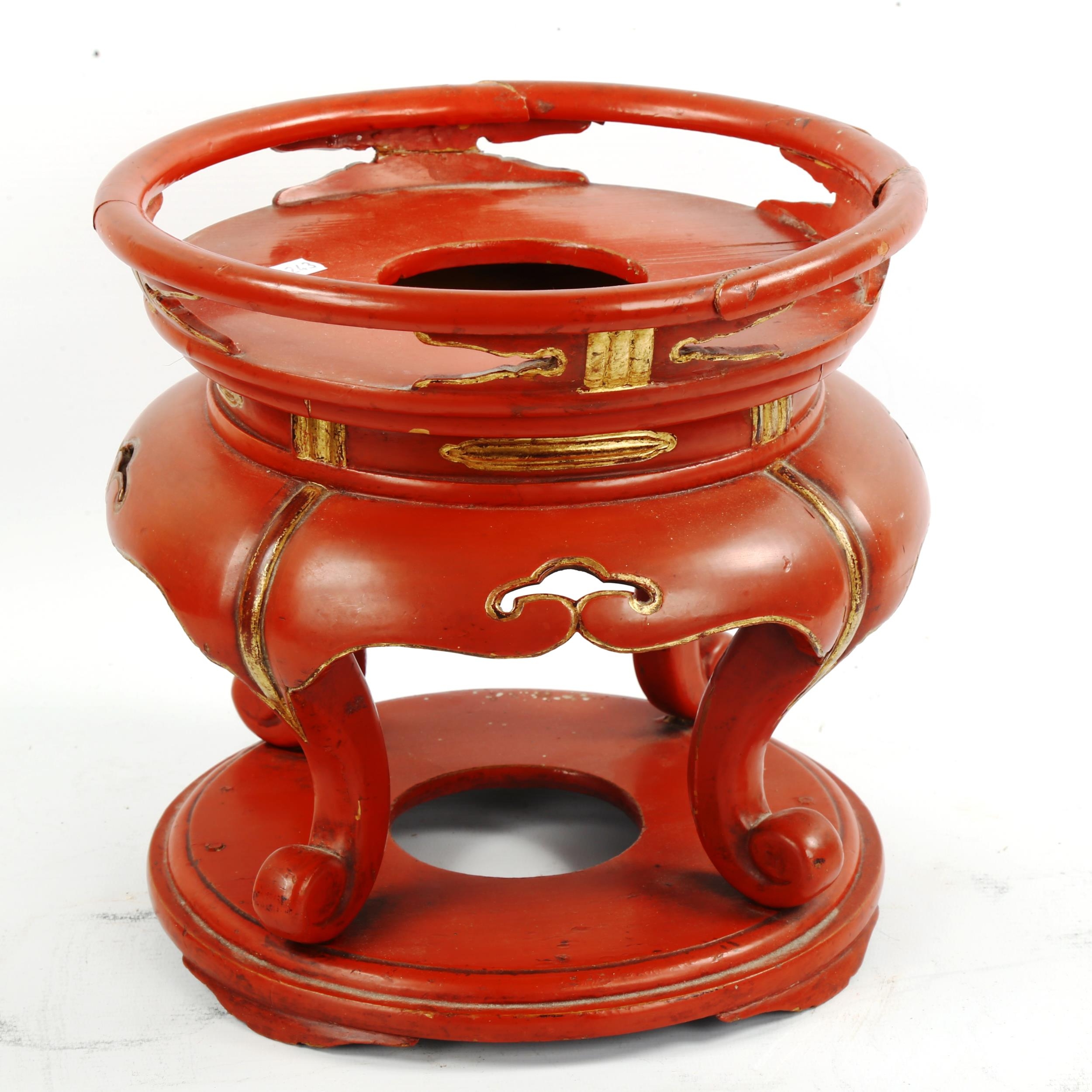 A Chinese gilded red lacquer jardiniere stand, diameter 26cm...