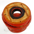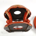 A Chinese gilded red lacquer jardiniere stand, diameter 26cm, height 25cm