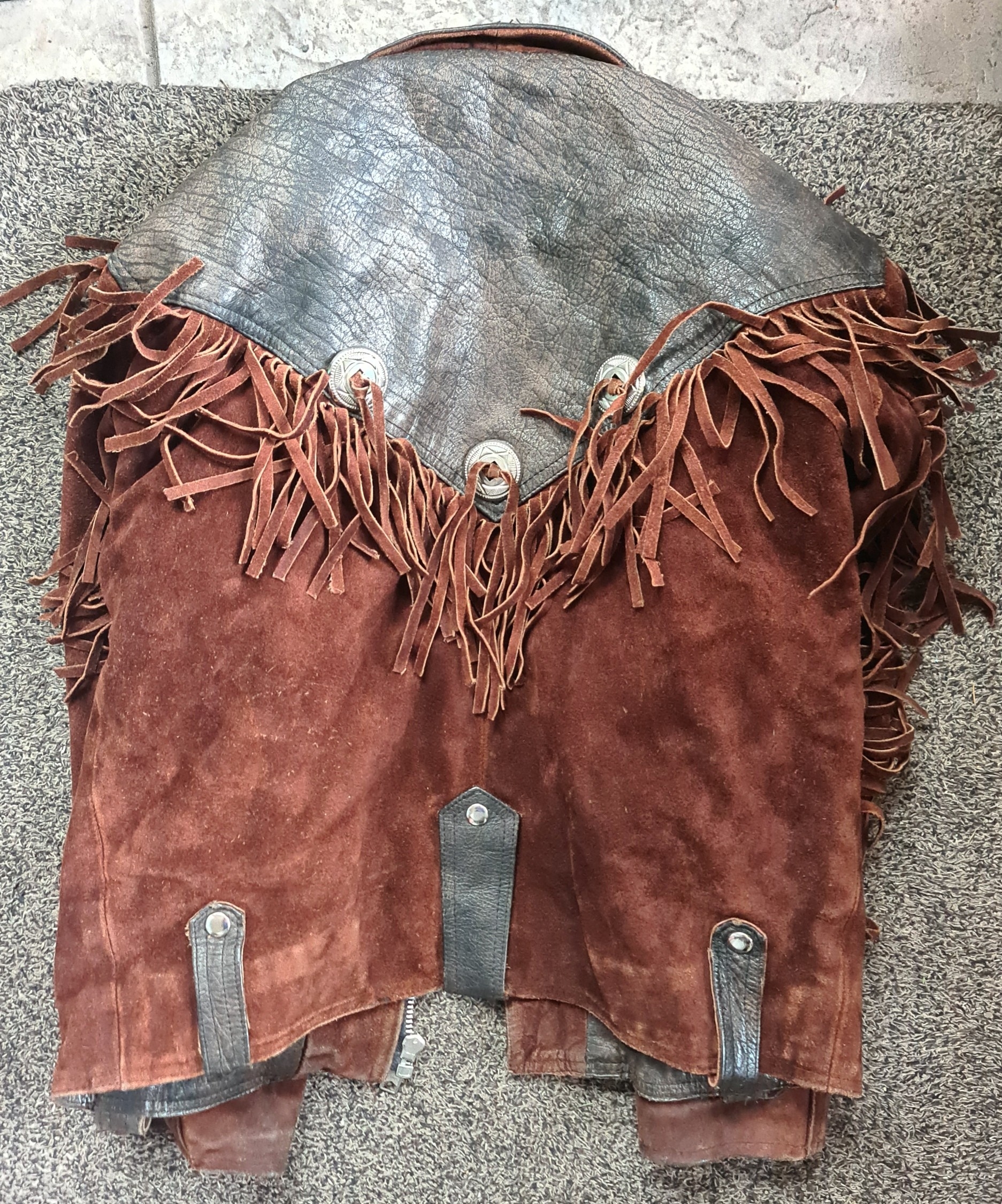 Vintage Brown Suede Leather Bikers Jacket With Tassels Size Medium. Shipping is available. Please ask for a quote before bidding. Where possible we combine shipping costs. Remember, if you are the highest bidder above reserve on this Lot you have bought the item and are legally responsible for the item. Viewing is recommended in either person or via video link. Contact us to arrange.