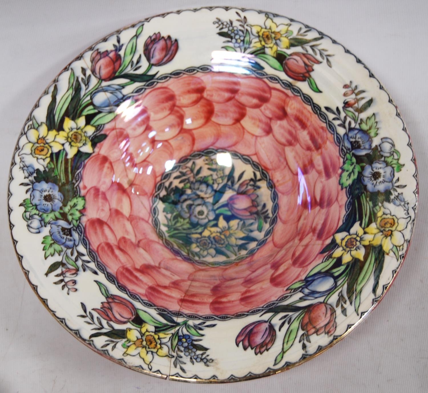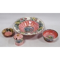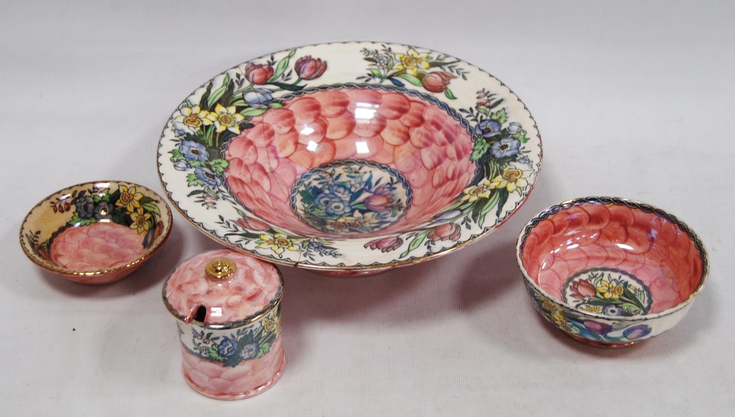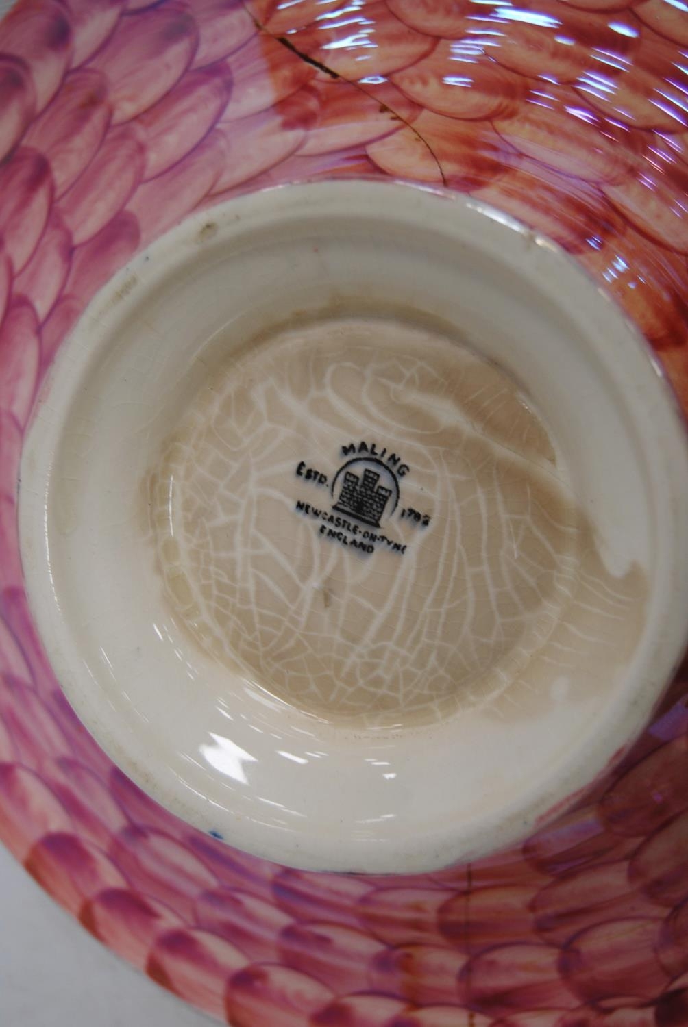 Four pieces of Maling to include a preserve pot, two bowls and a larger bowl (a/f).