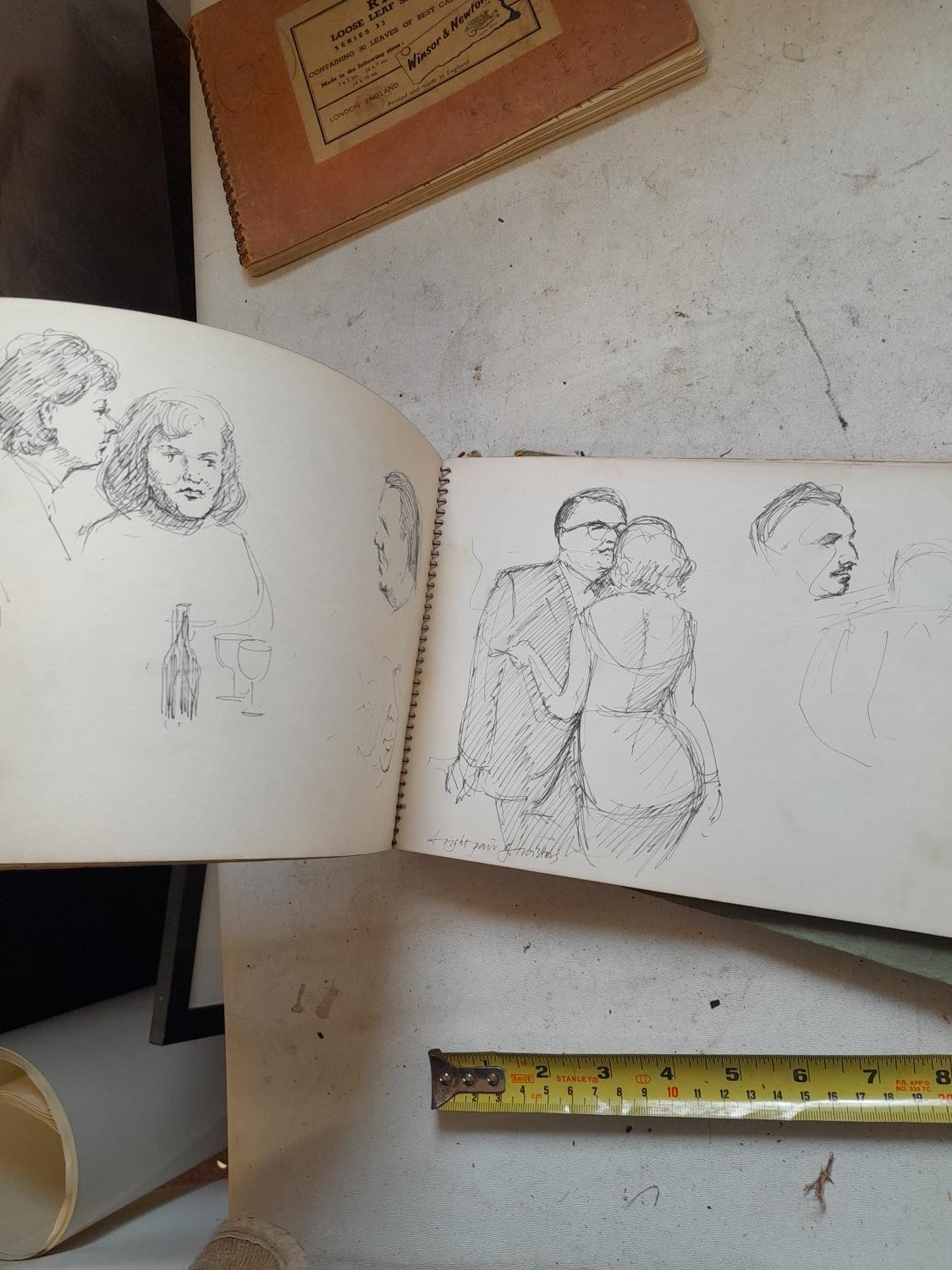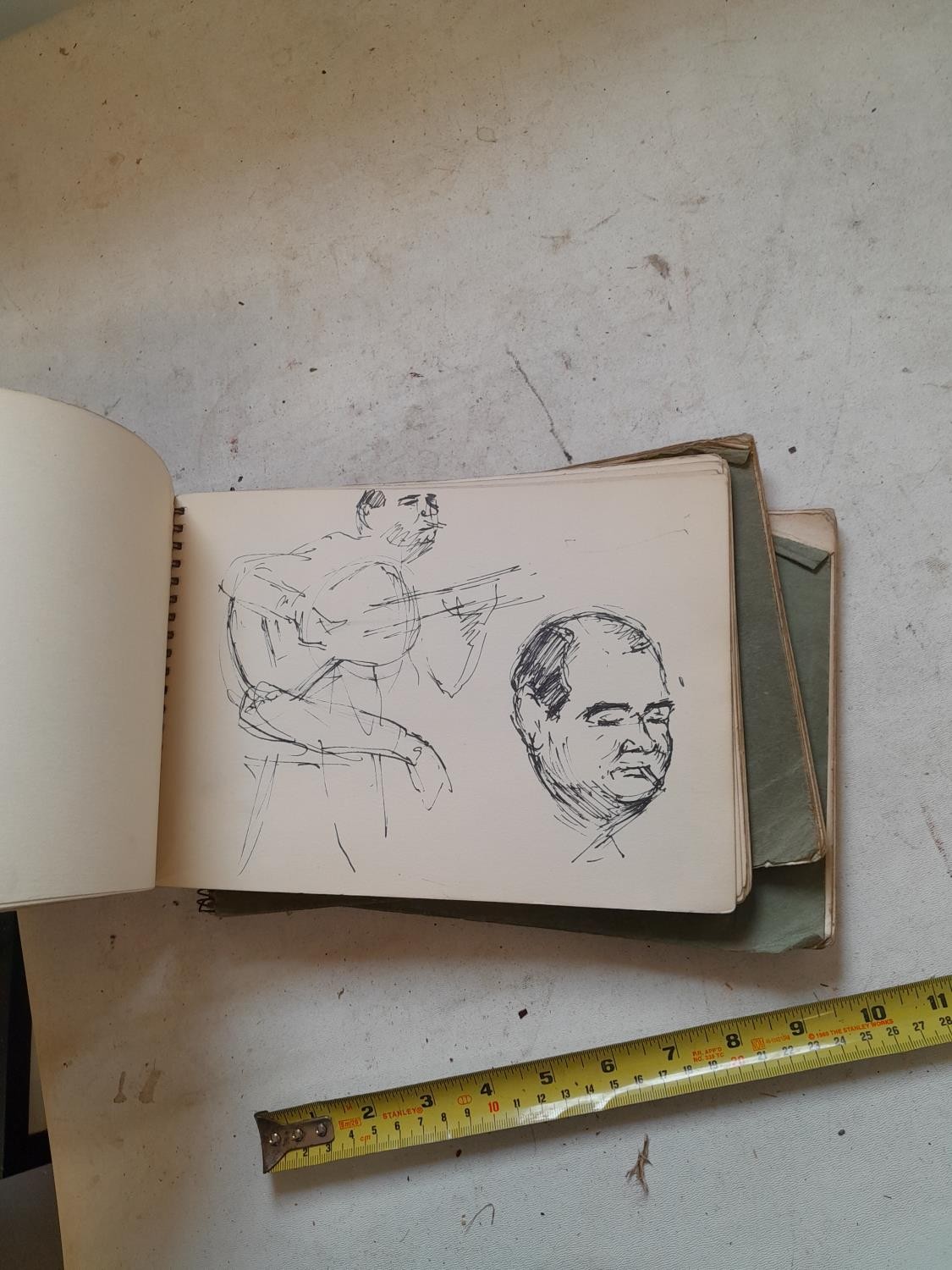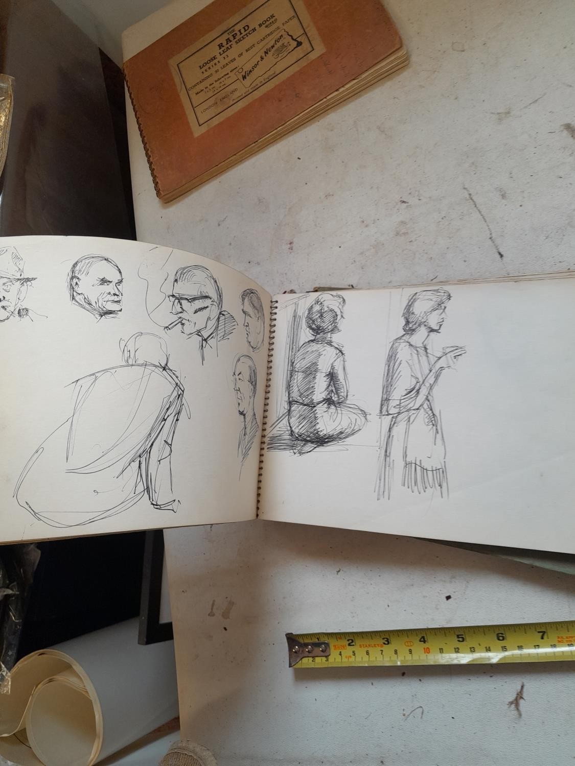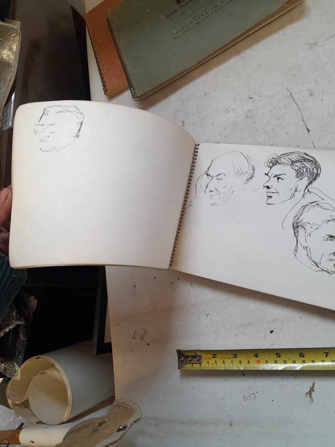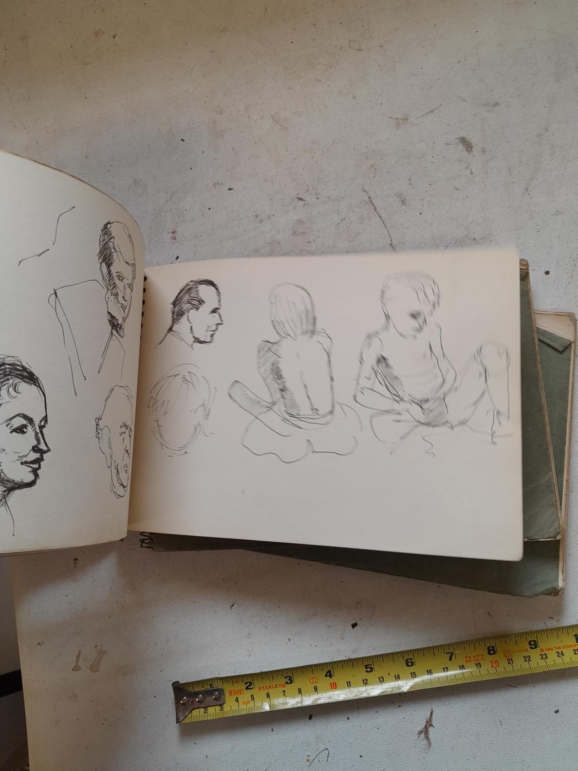 Sketchbooks and pads and loose pen and ink and pastels by Gerald Moneypenny dating from 1950s to early 1970s, assorted themes throughout some portraits etc.