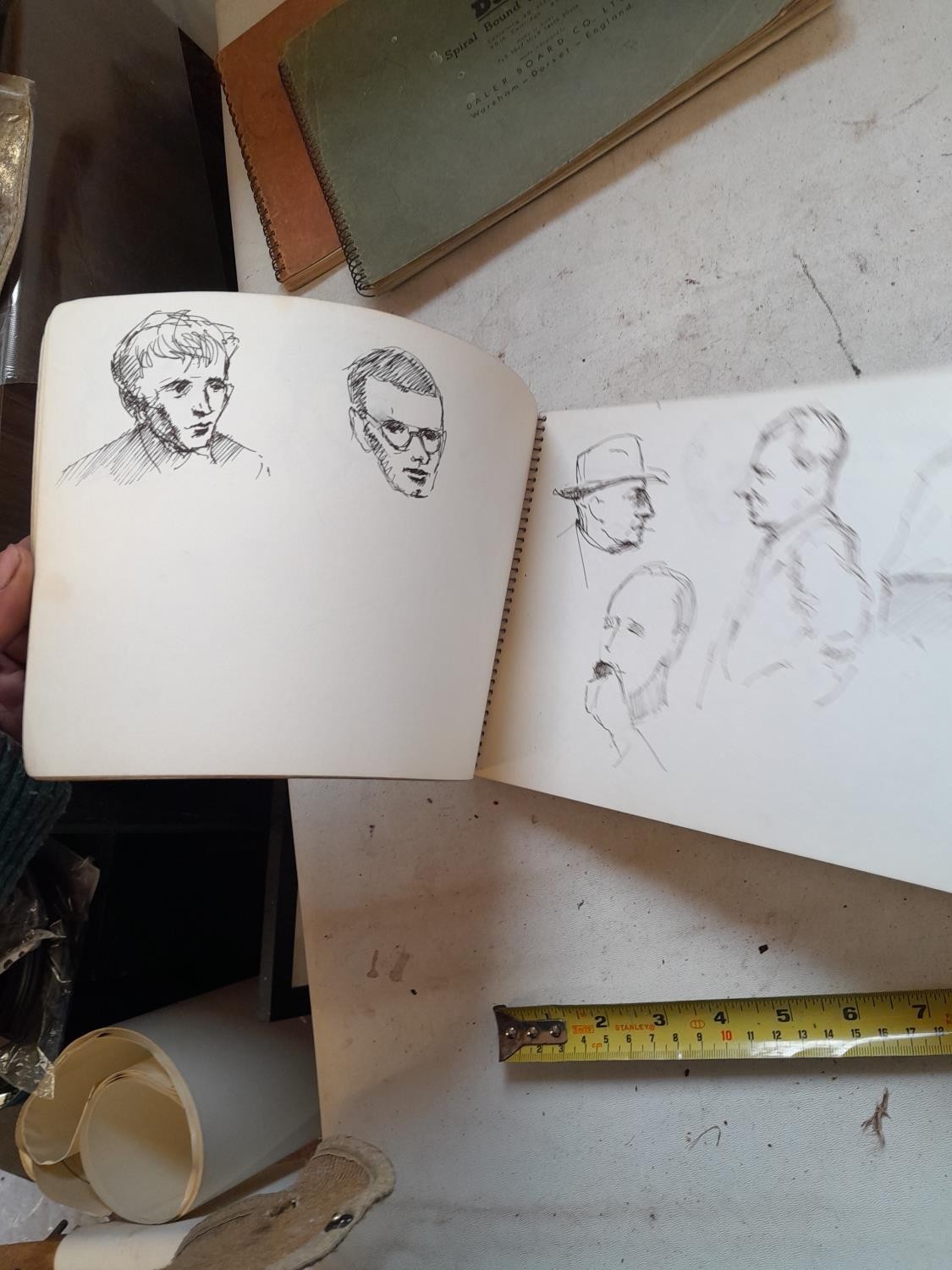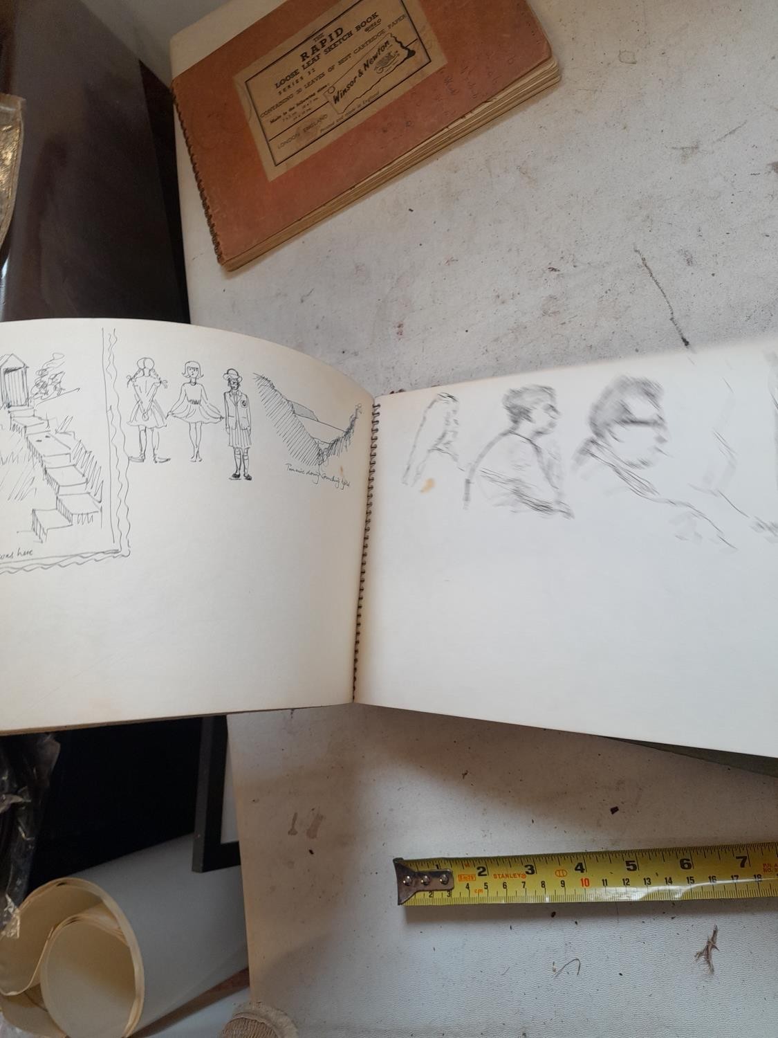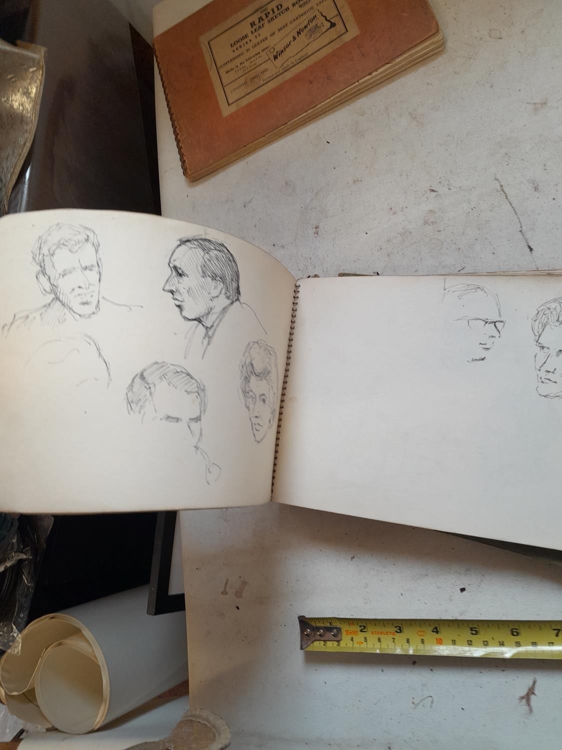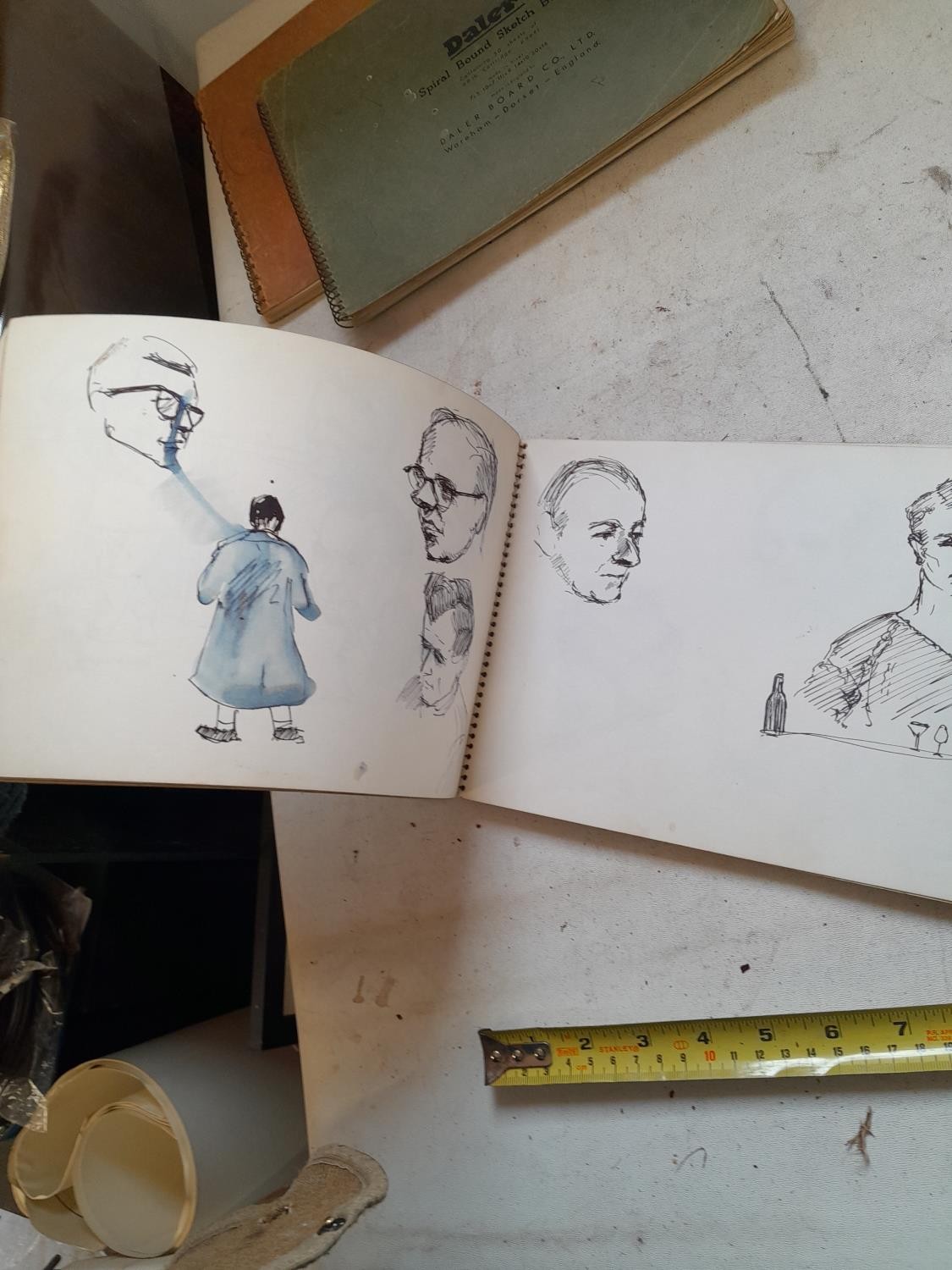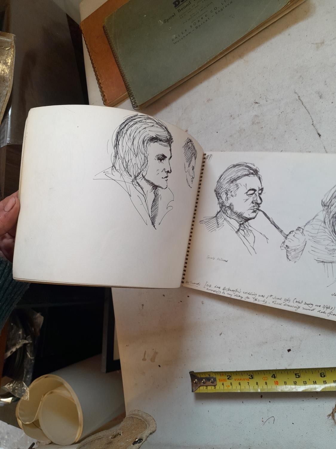 Sketchbooks and pads and loose pen and ink and pastels by Gerald Moneypenny dating from 1950s to early 1970s, assorted themes throughout some portraits etc.