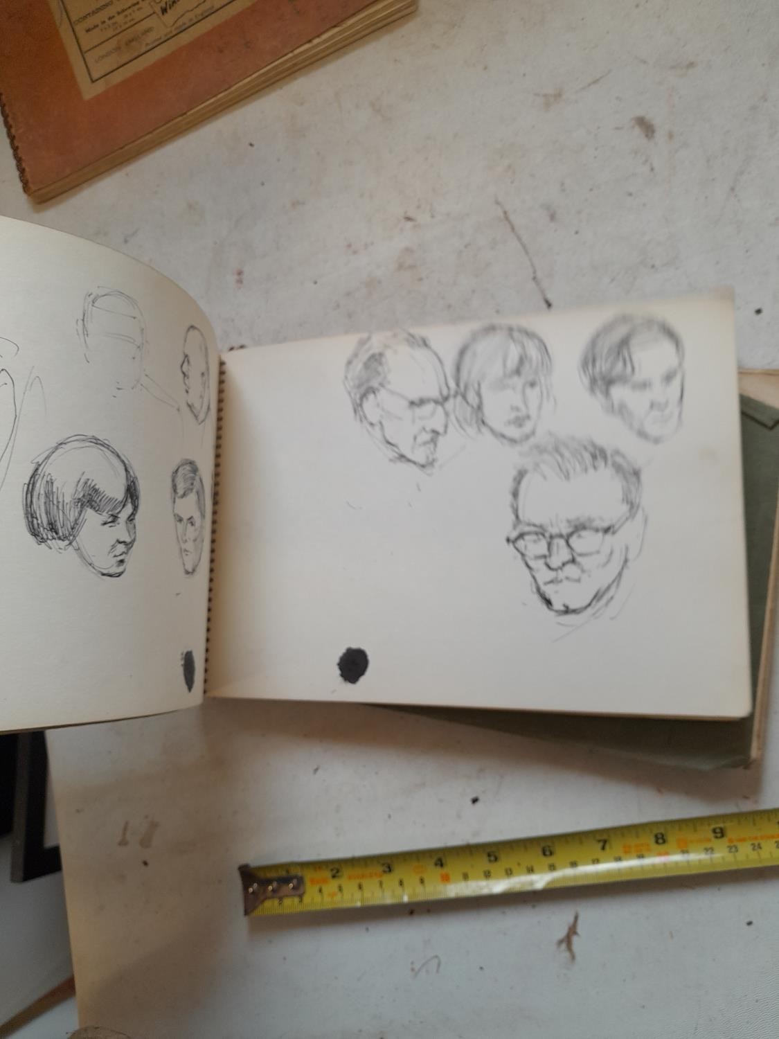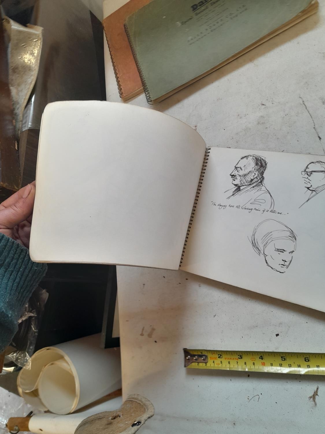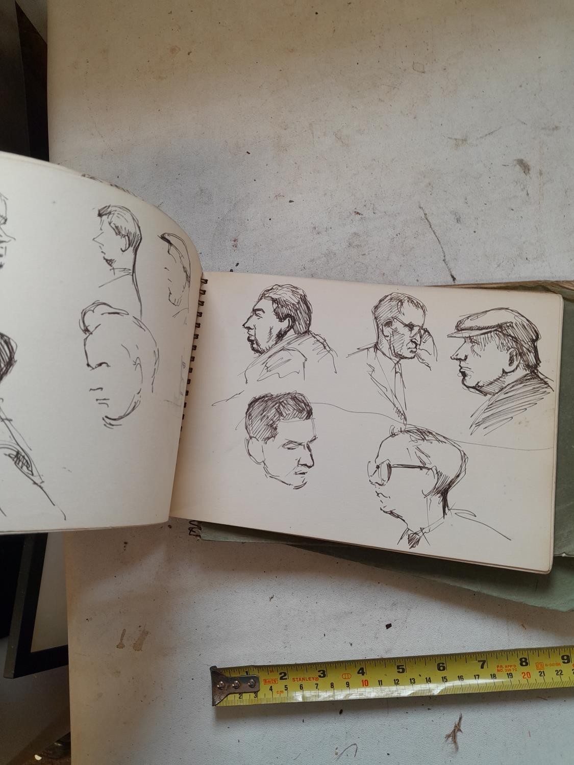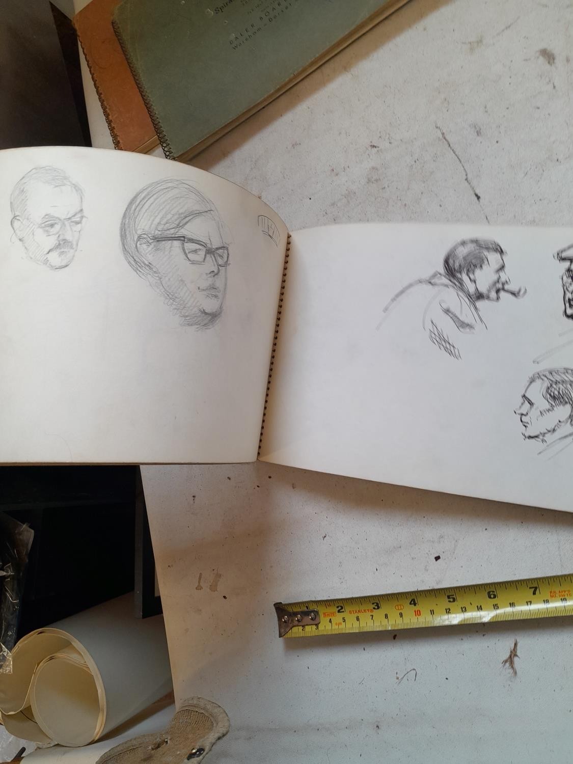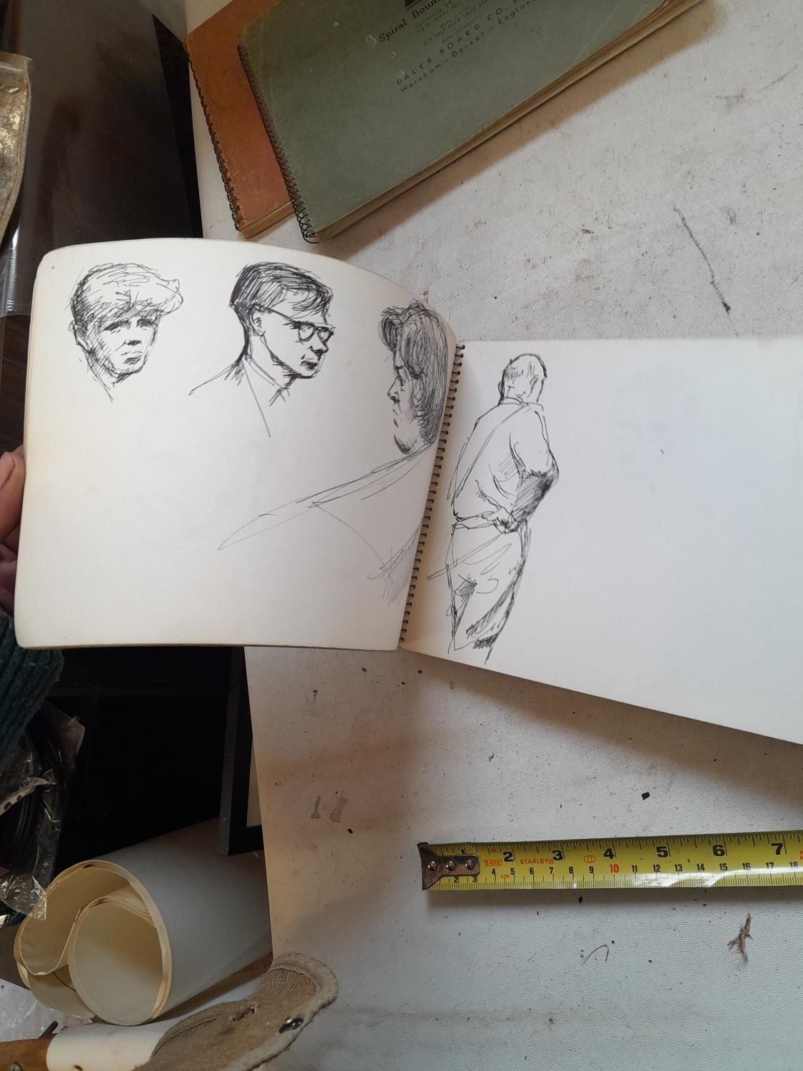 Sketchbooks and pads and loose pen and ink and pastels by Gerald Moneypenny dating from 1950s to early 1970s, assorted themes throughout some portraits etc.