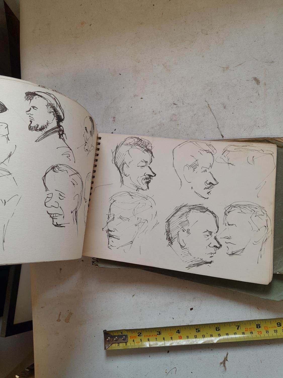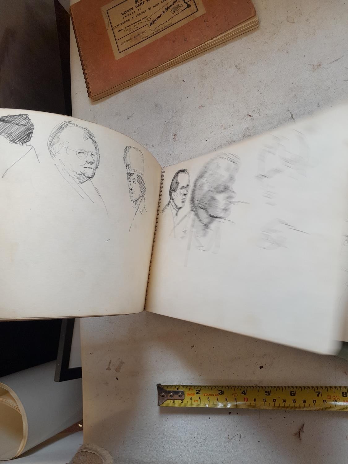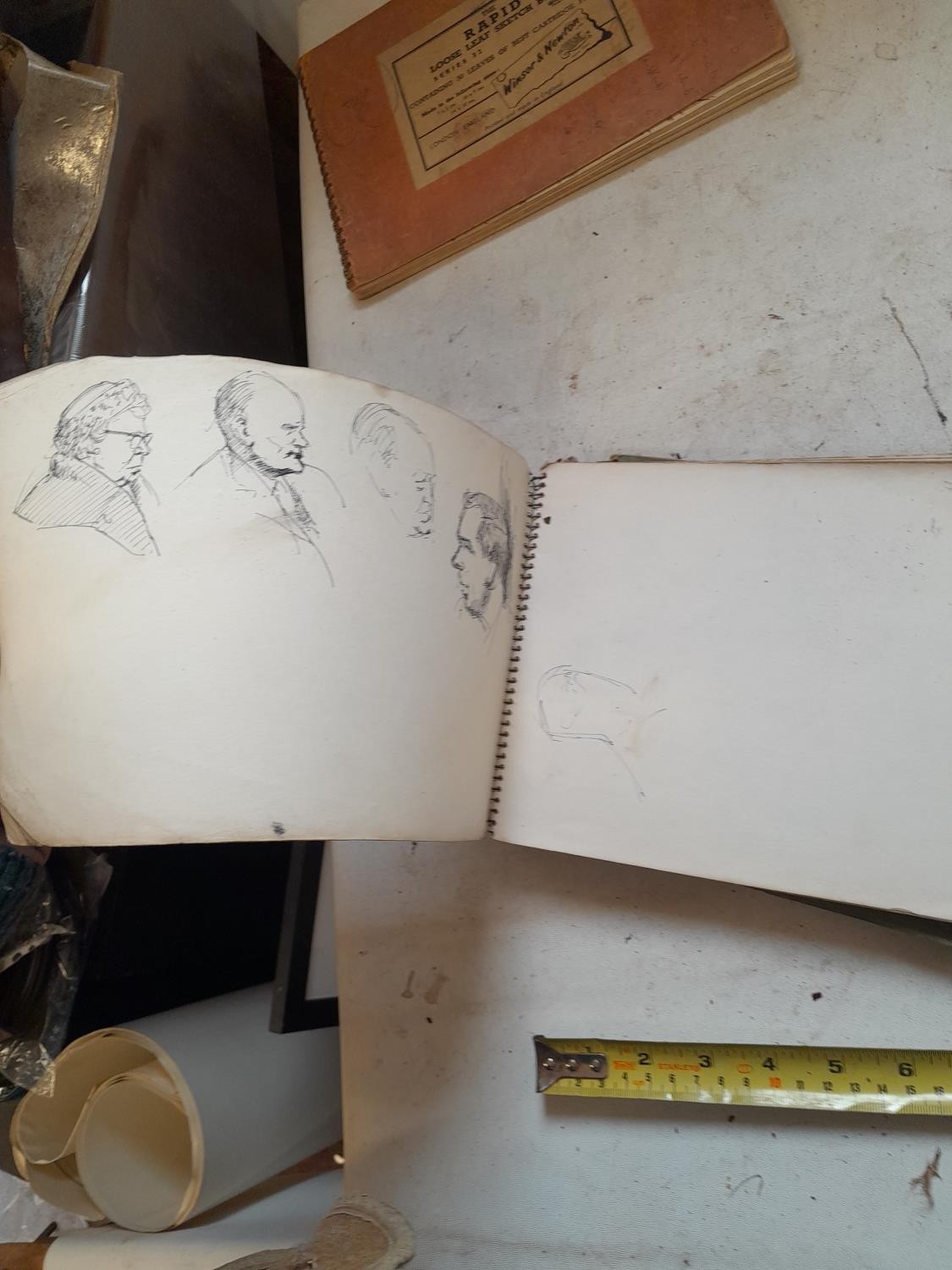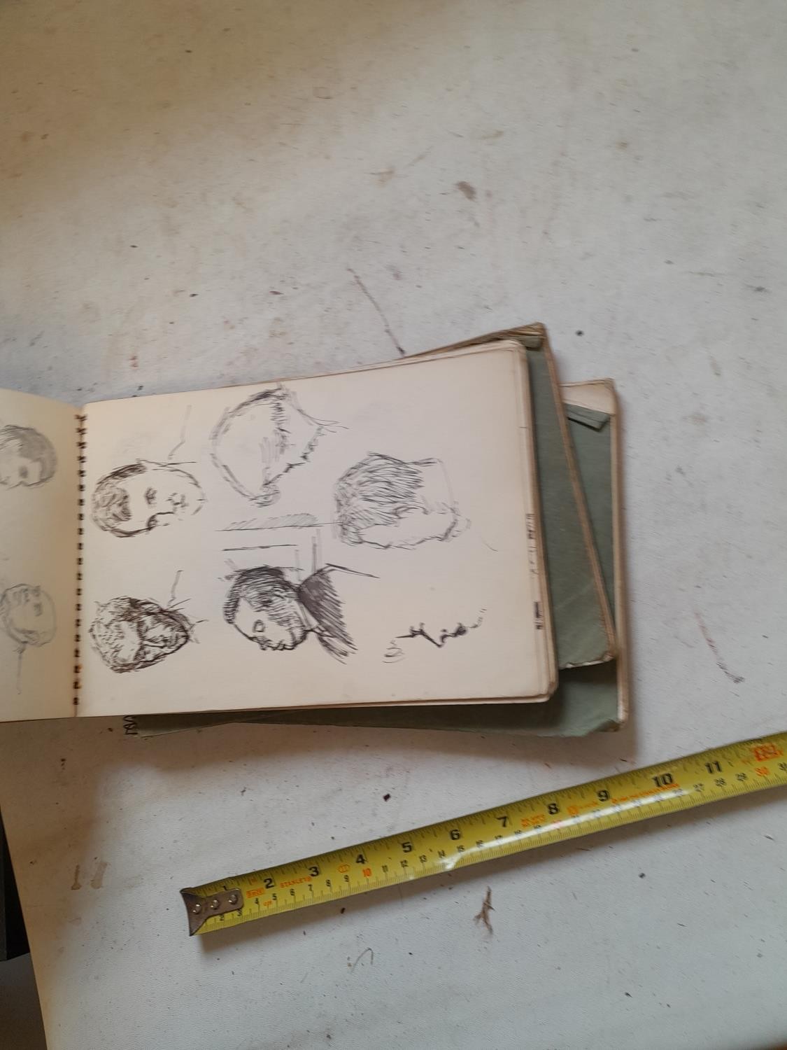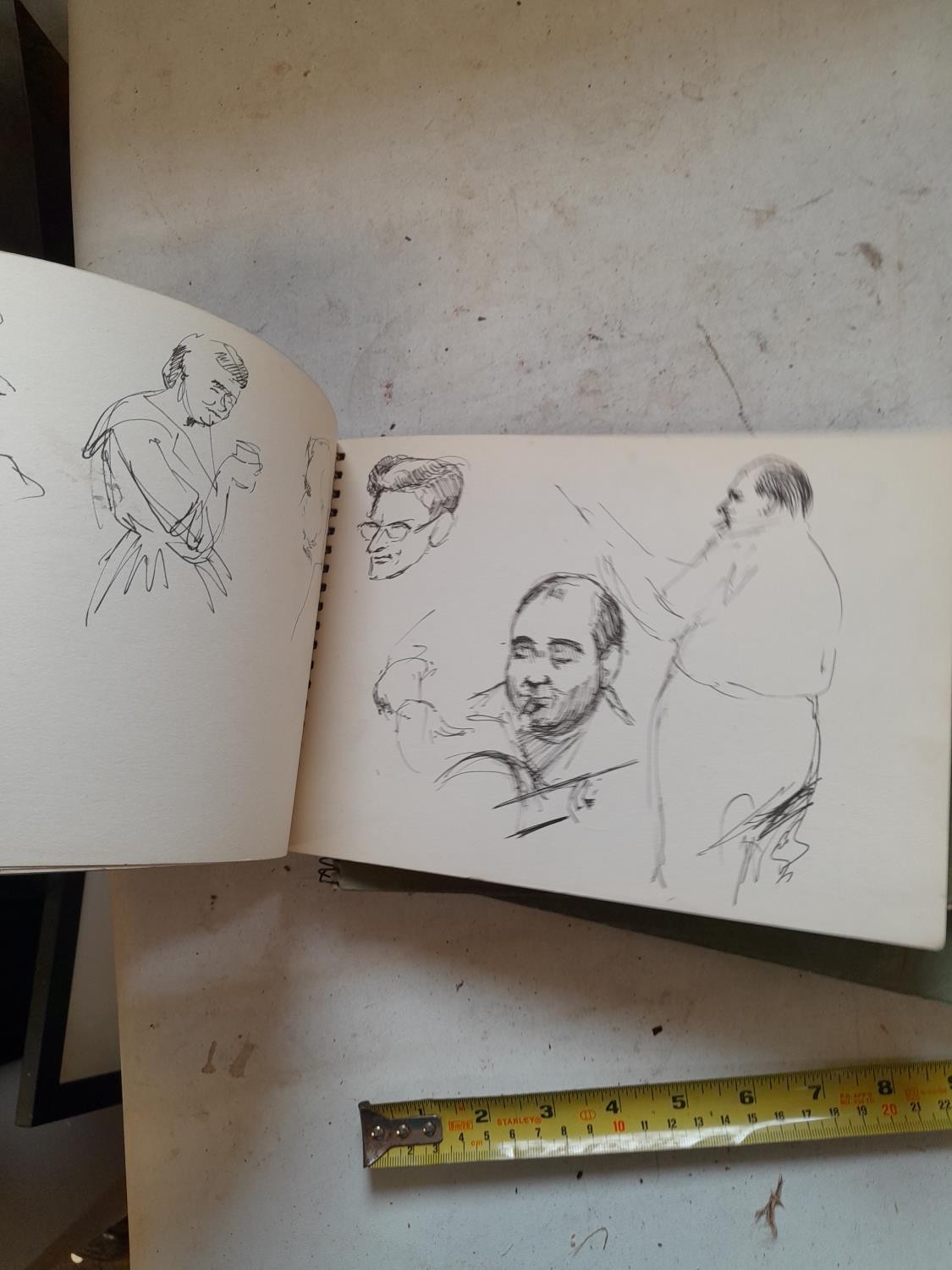 Sketchbooks and pads and loose pen and ink and pastels by Gerald Moneypenny dating from 1950s to early 1970s, assorted themes throughout some portraits etc.