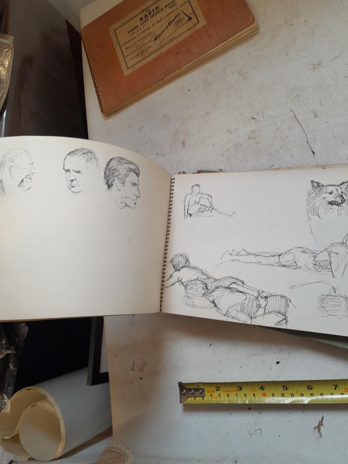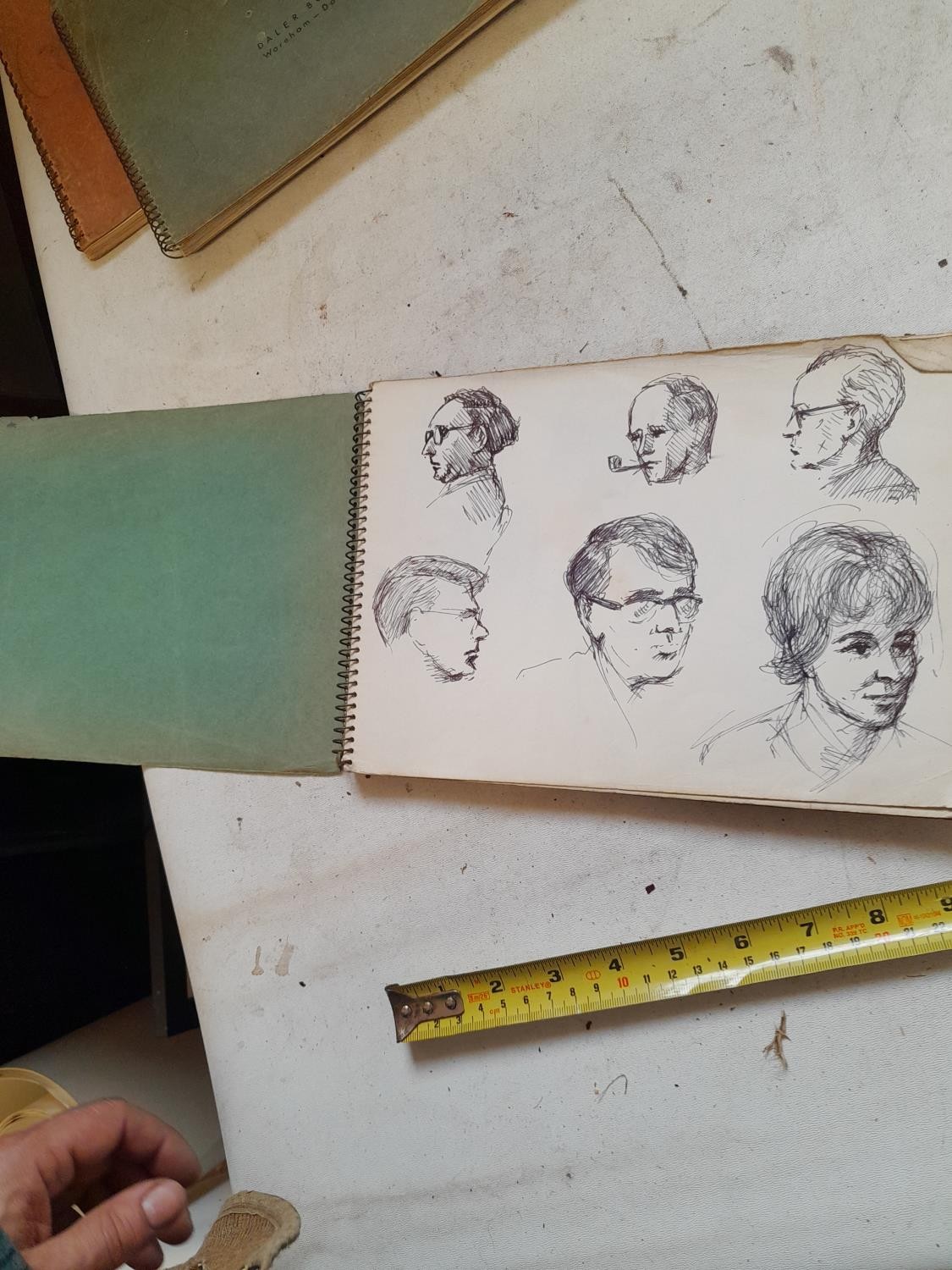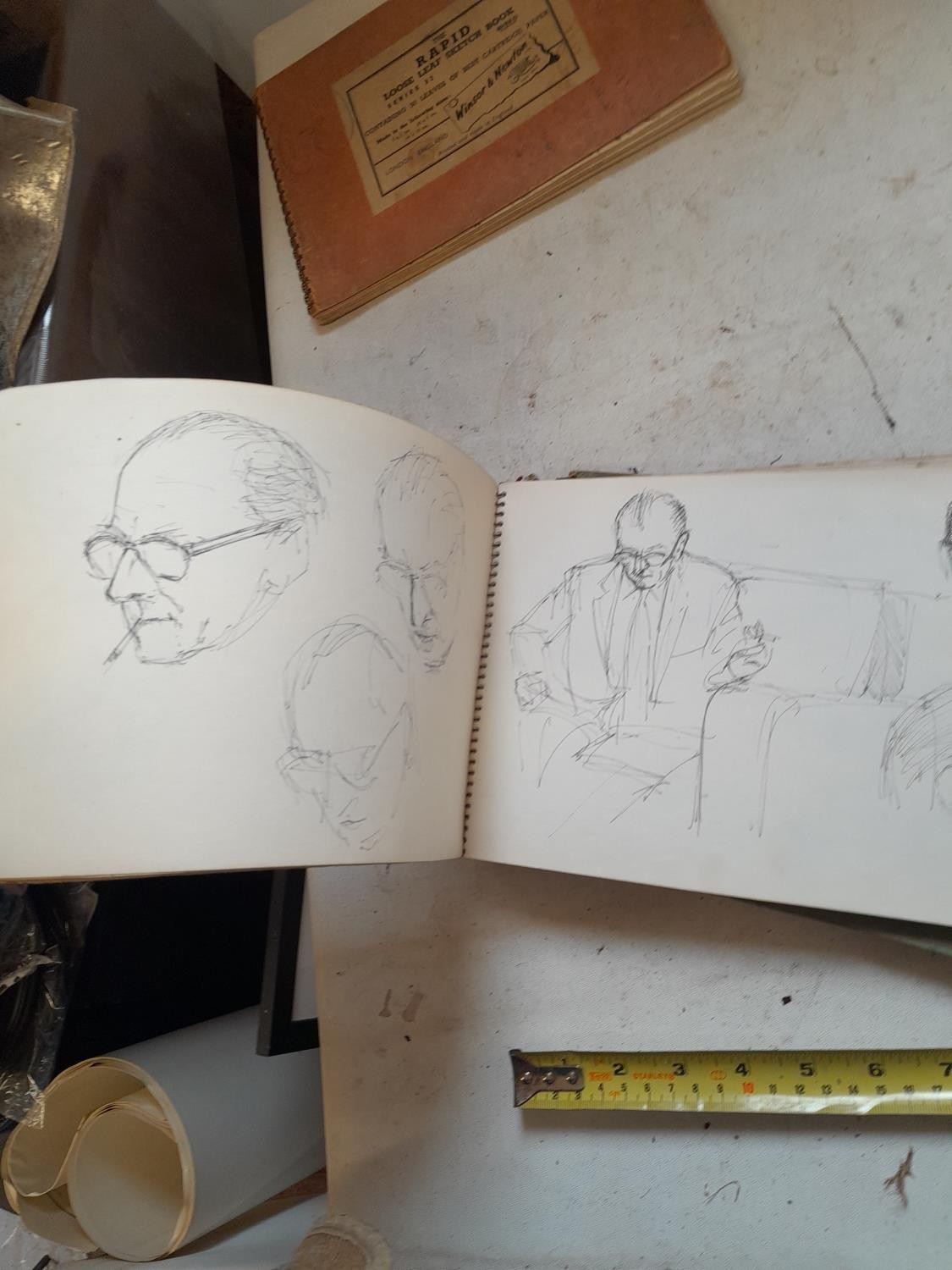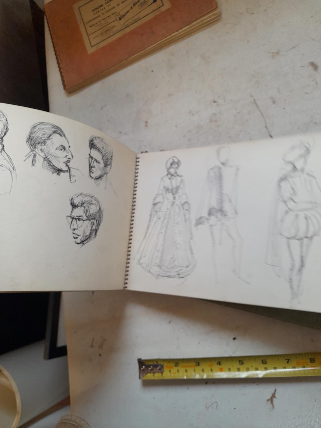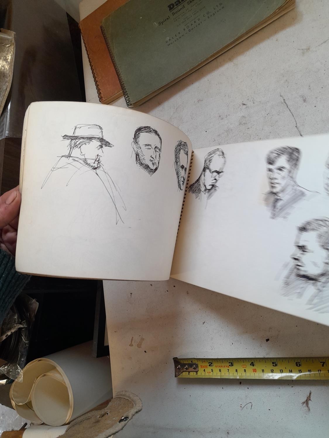 Sketchbooks and pads and loose pen and ink and pastels by Gerald Moneypenny dating from 1950s to early 1970s, assorted themes throughout some portraits etc.