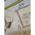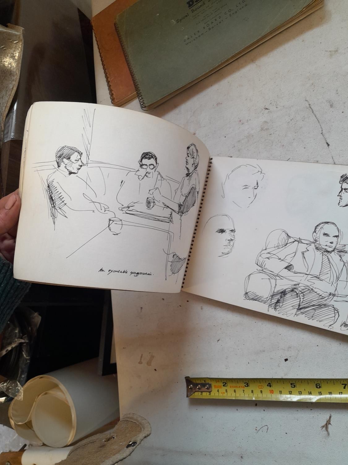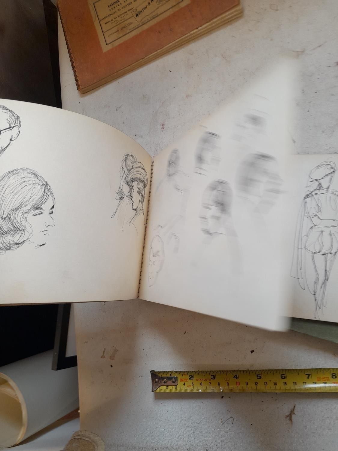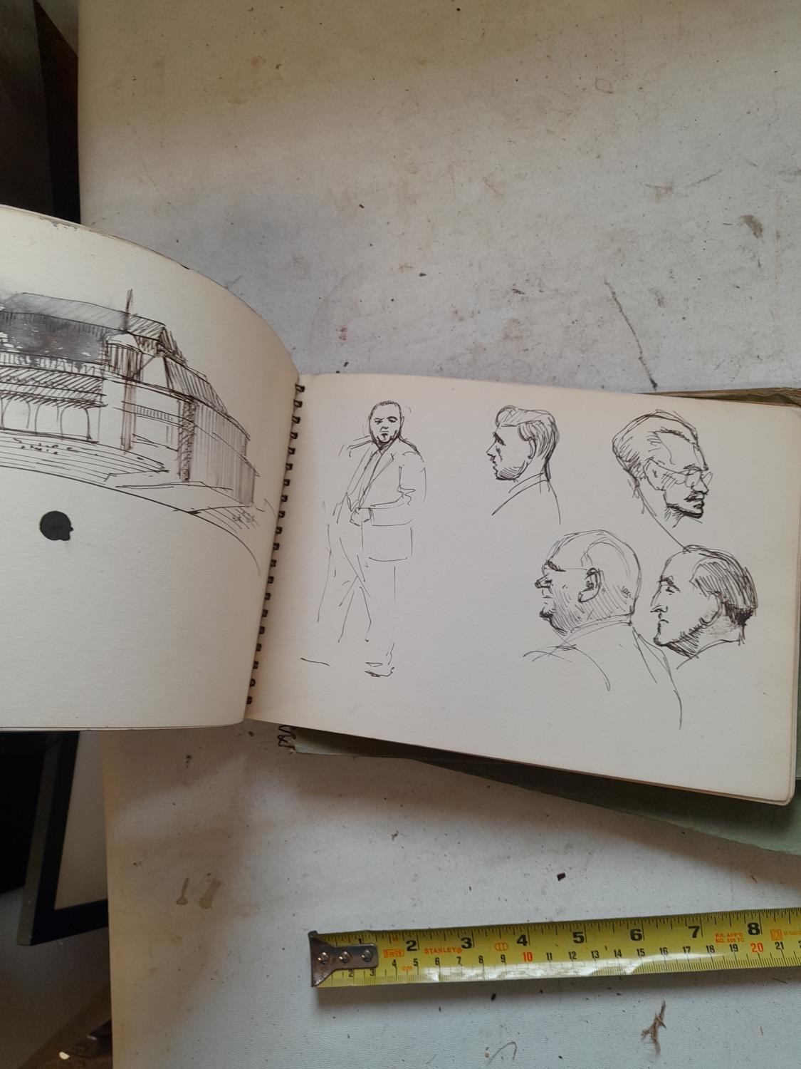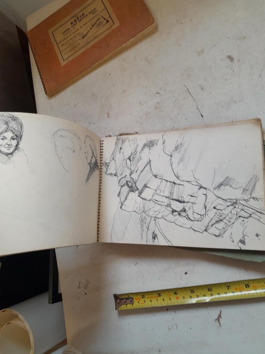 Sketchbooks and pads and loose pen and ink and pastels by Gerald Moneypenny dating from 1950s to early 1970s, assorted themes throughout some portraits etc.