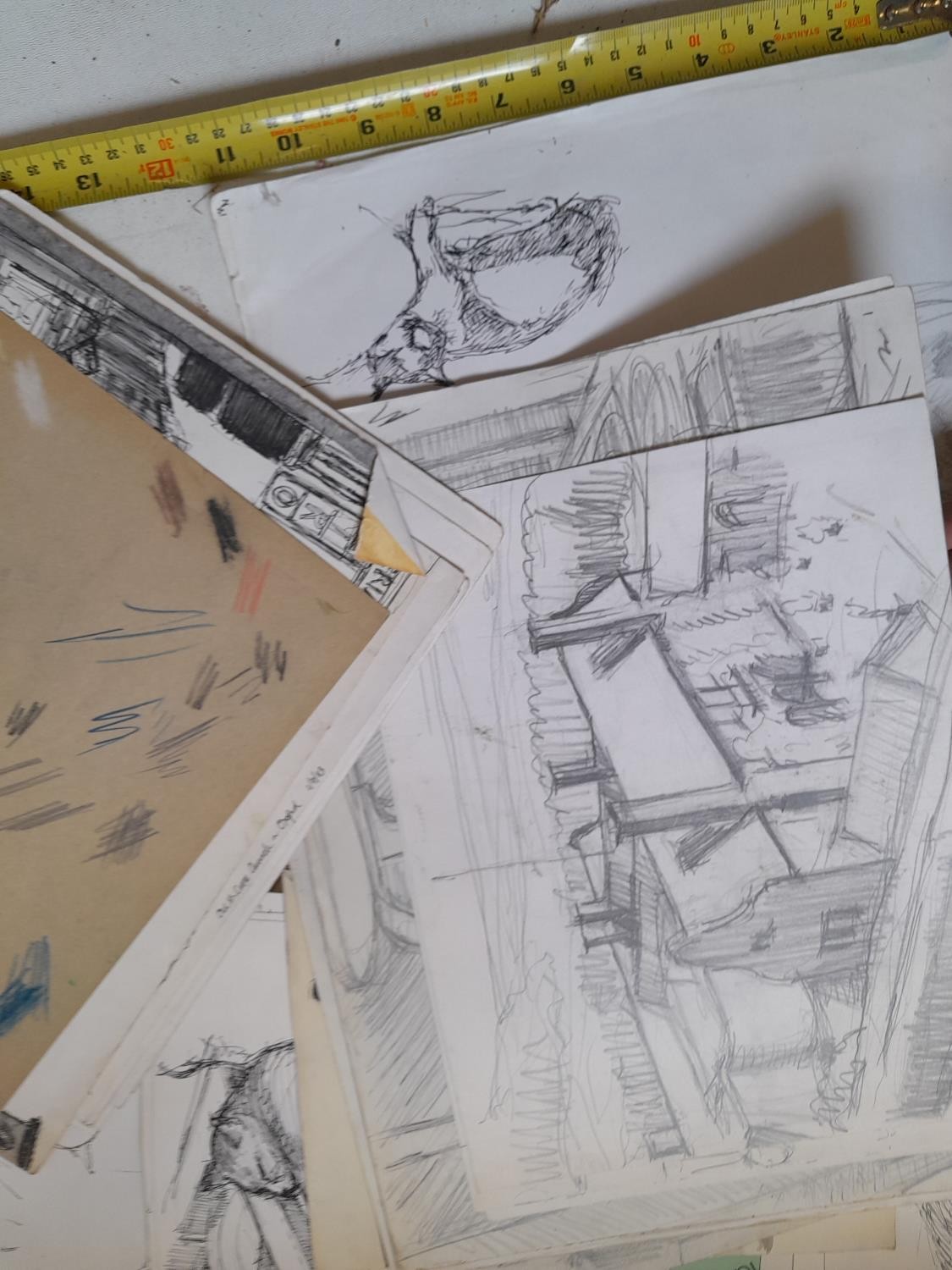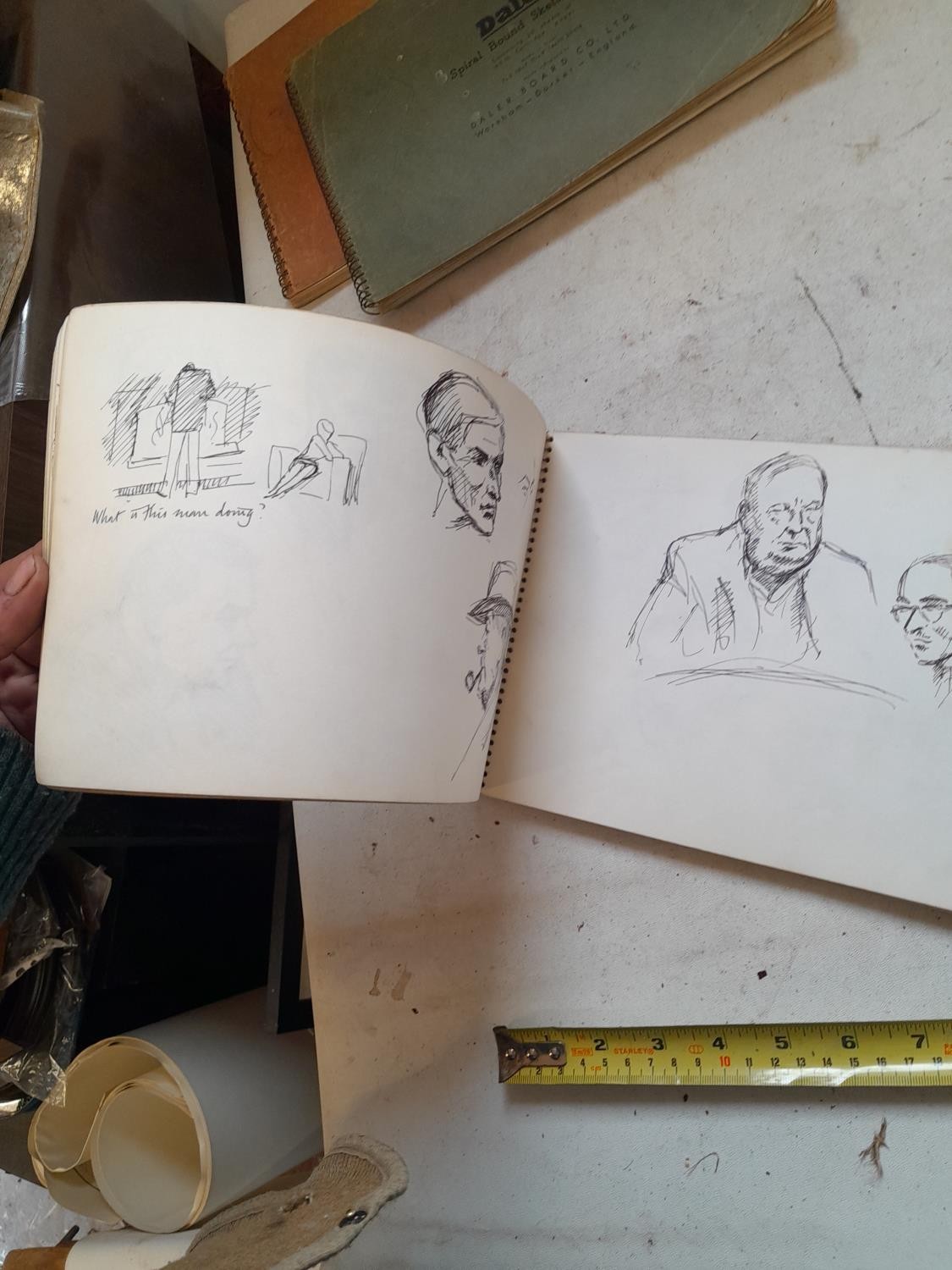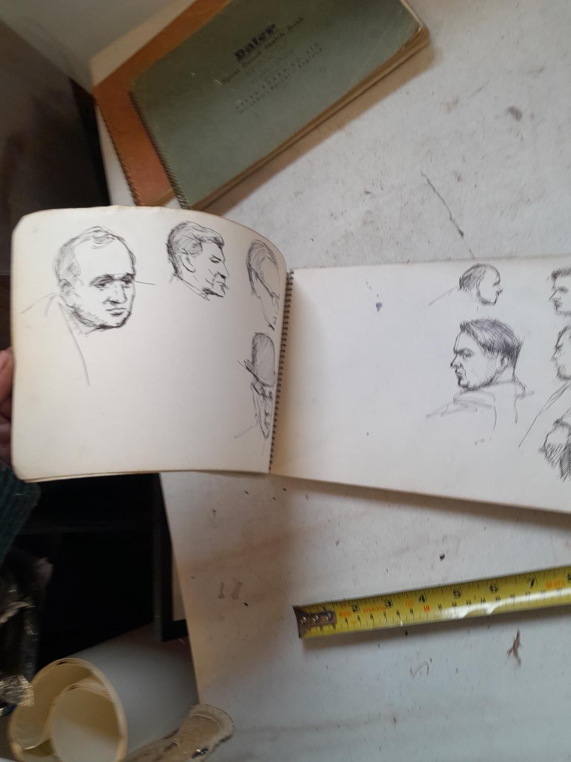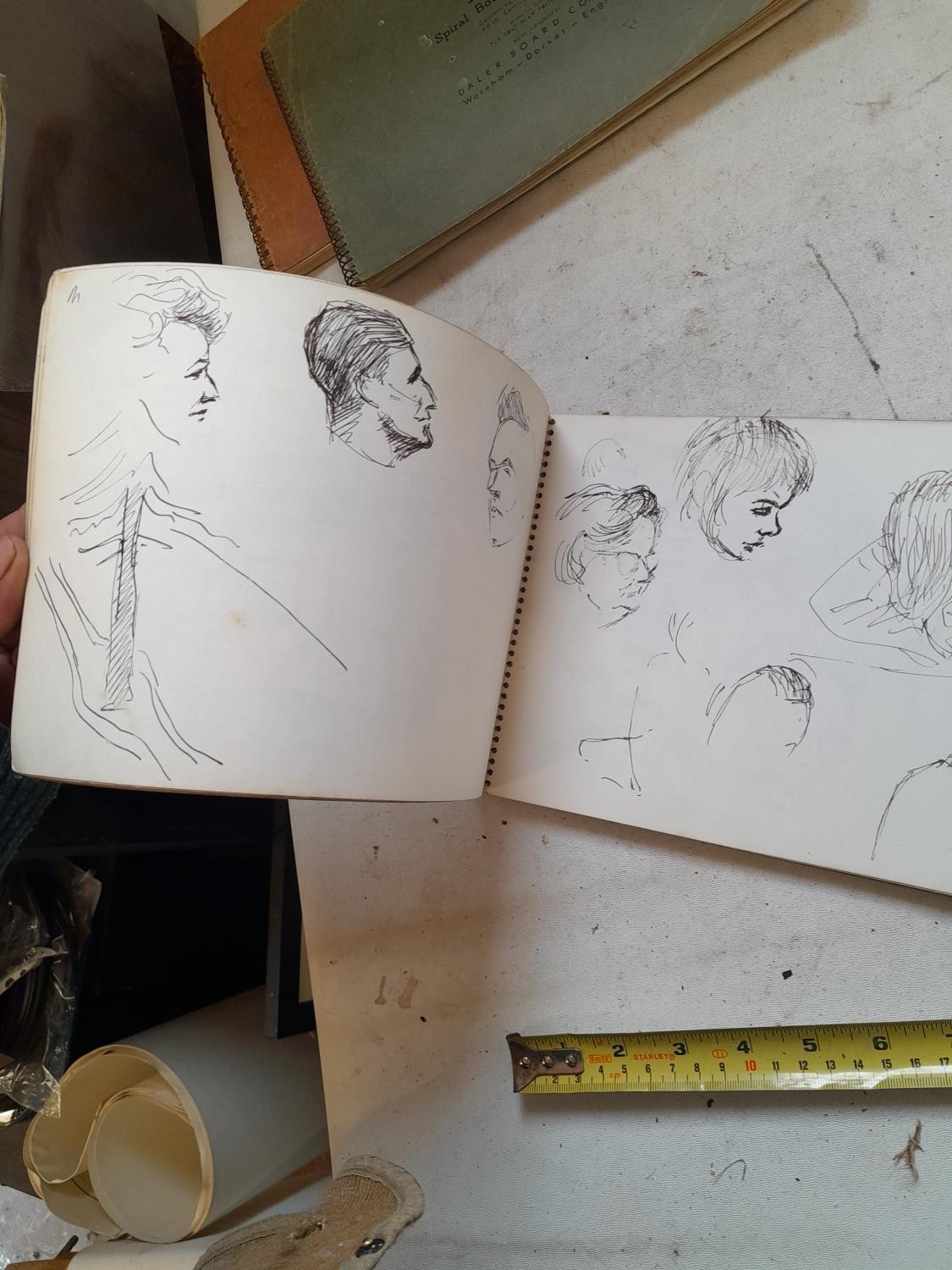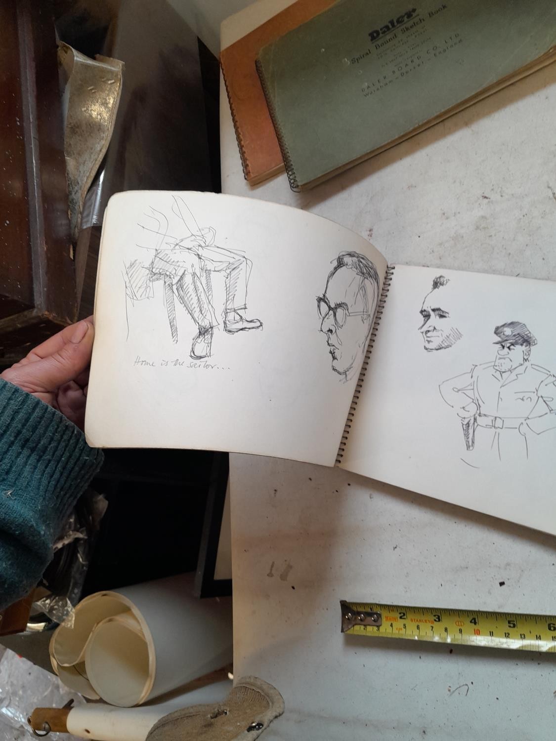 Sketchbooks and pads and loose pen and ink and pastels by Gerald Moneypenny dating from 1950s to early 1970s, assorted themes throughout some portraits etc.