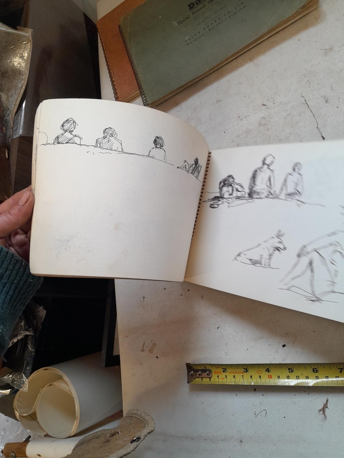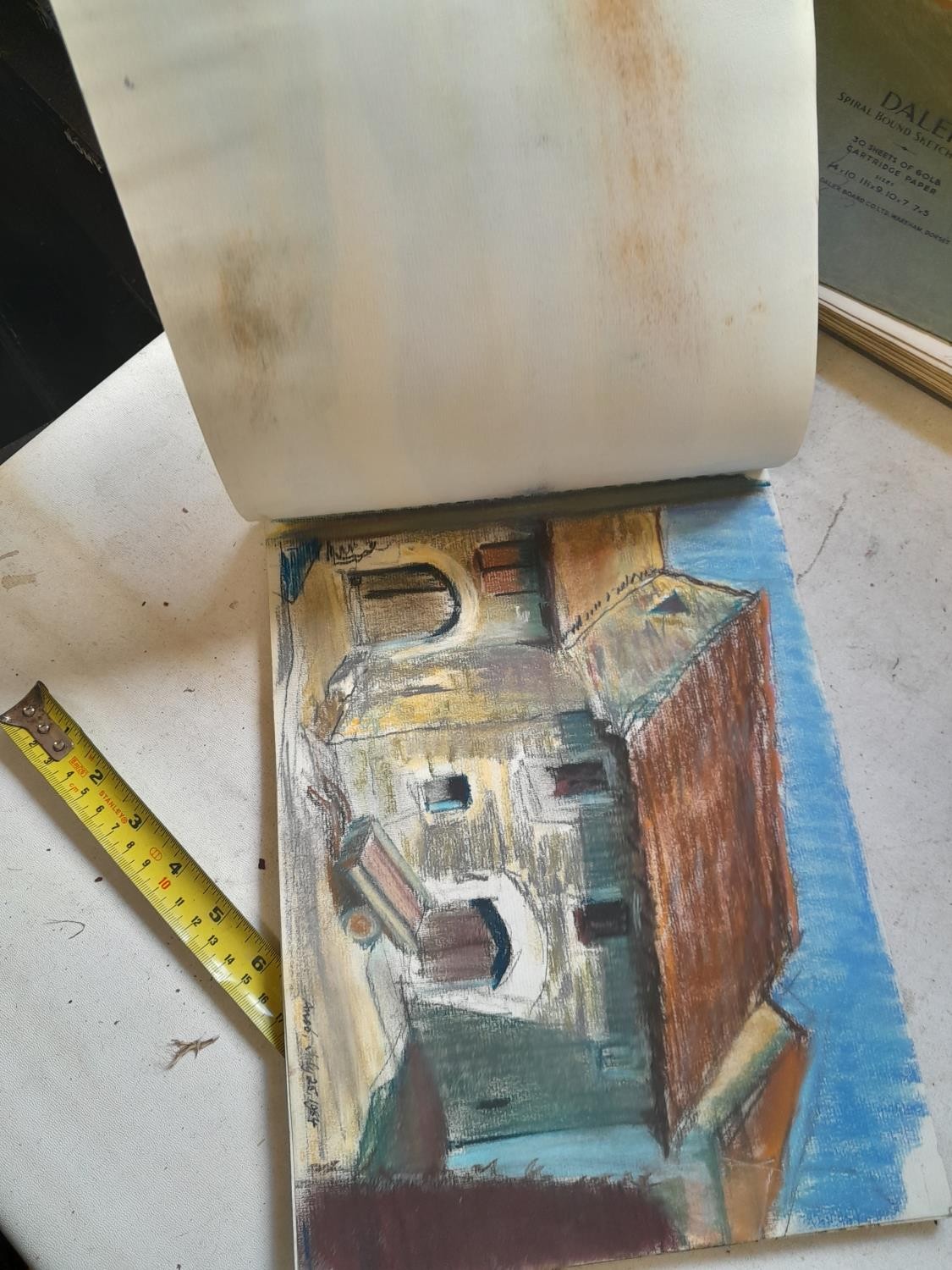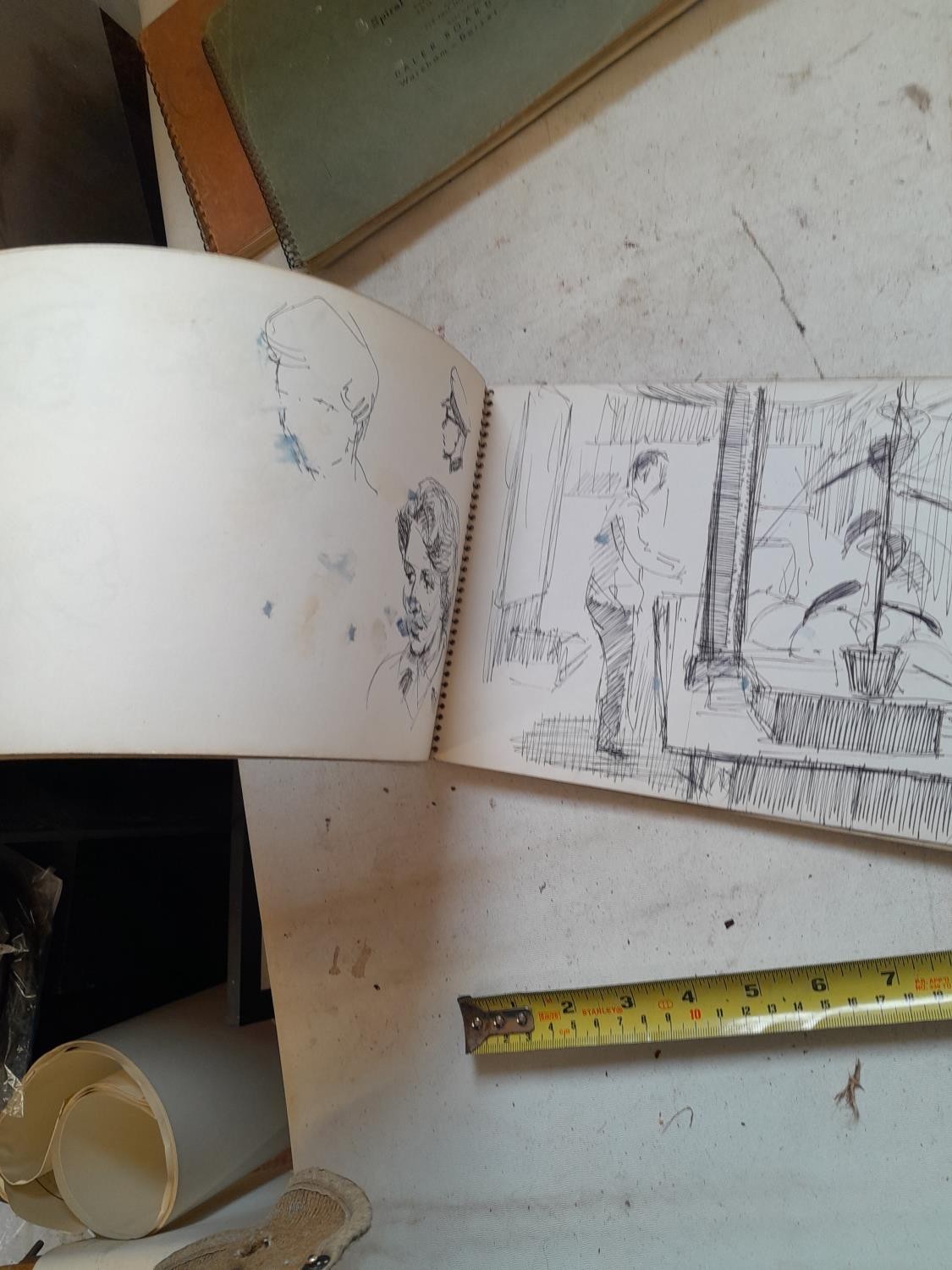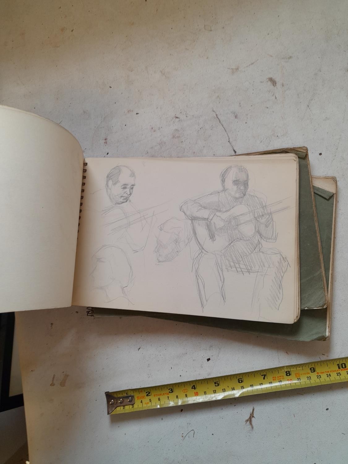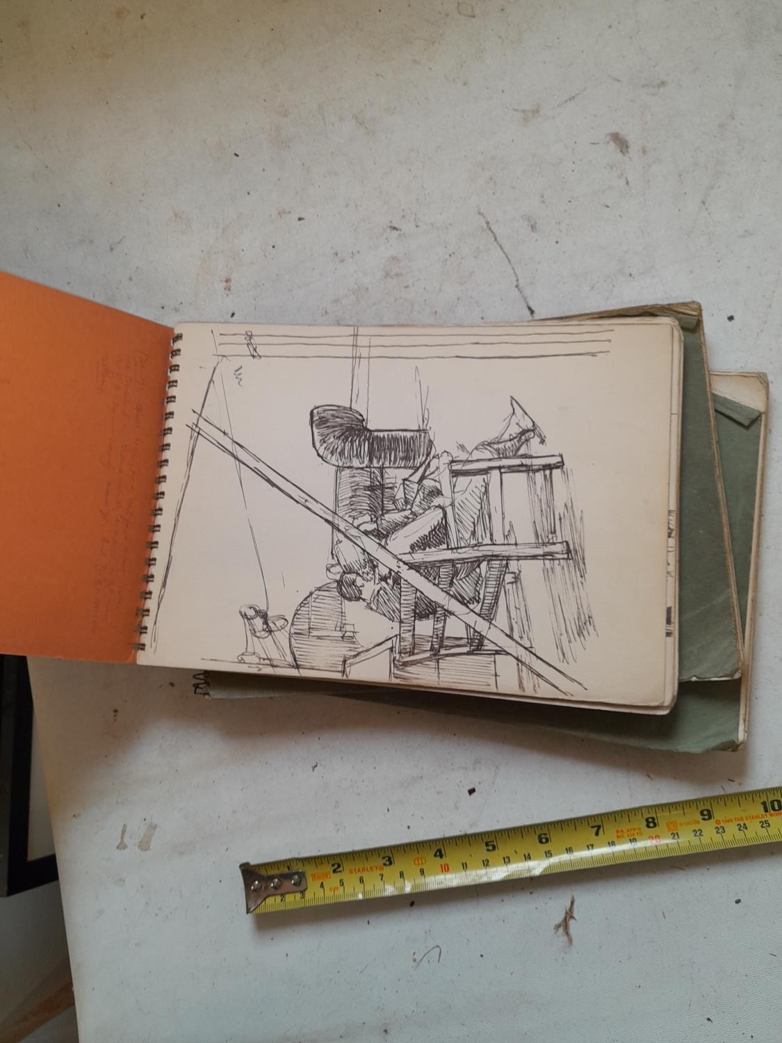 Sketchbooks and pads and loose pen and ink and pastels by Gerald Moneypenny dating from 1950s to early 1970s, assorted themes throughout some portraits etc.
