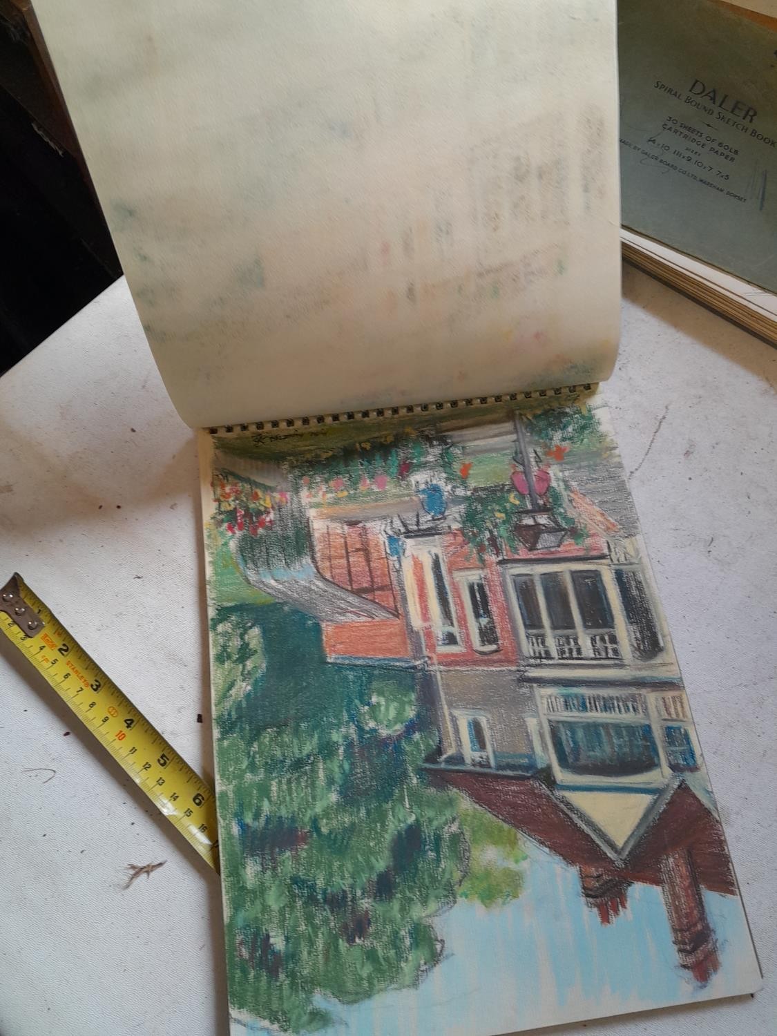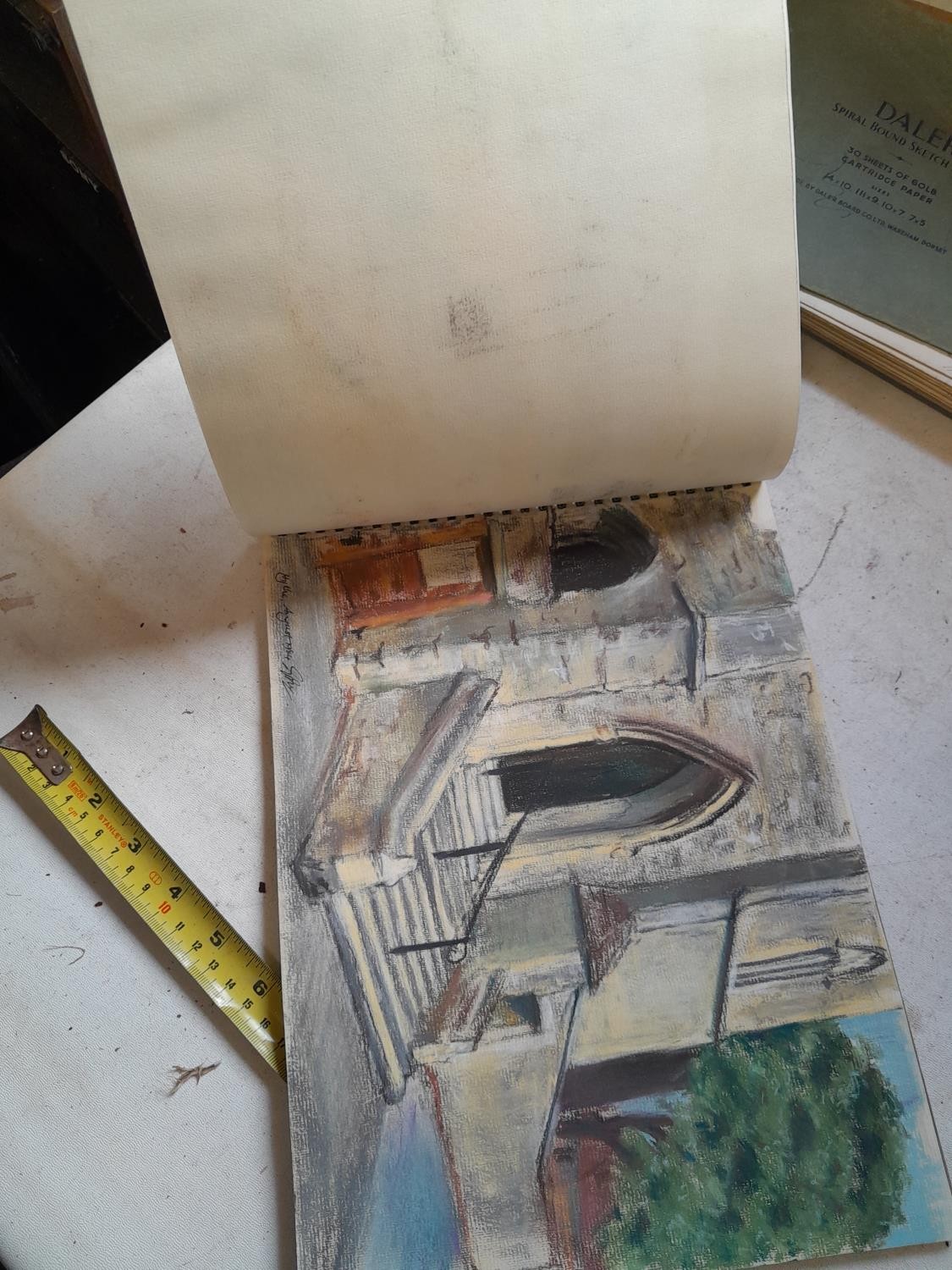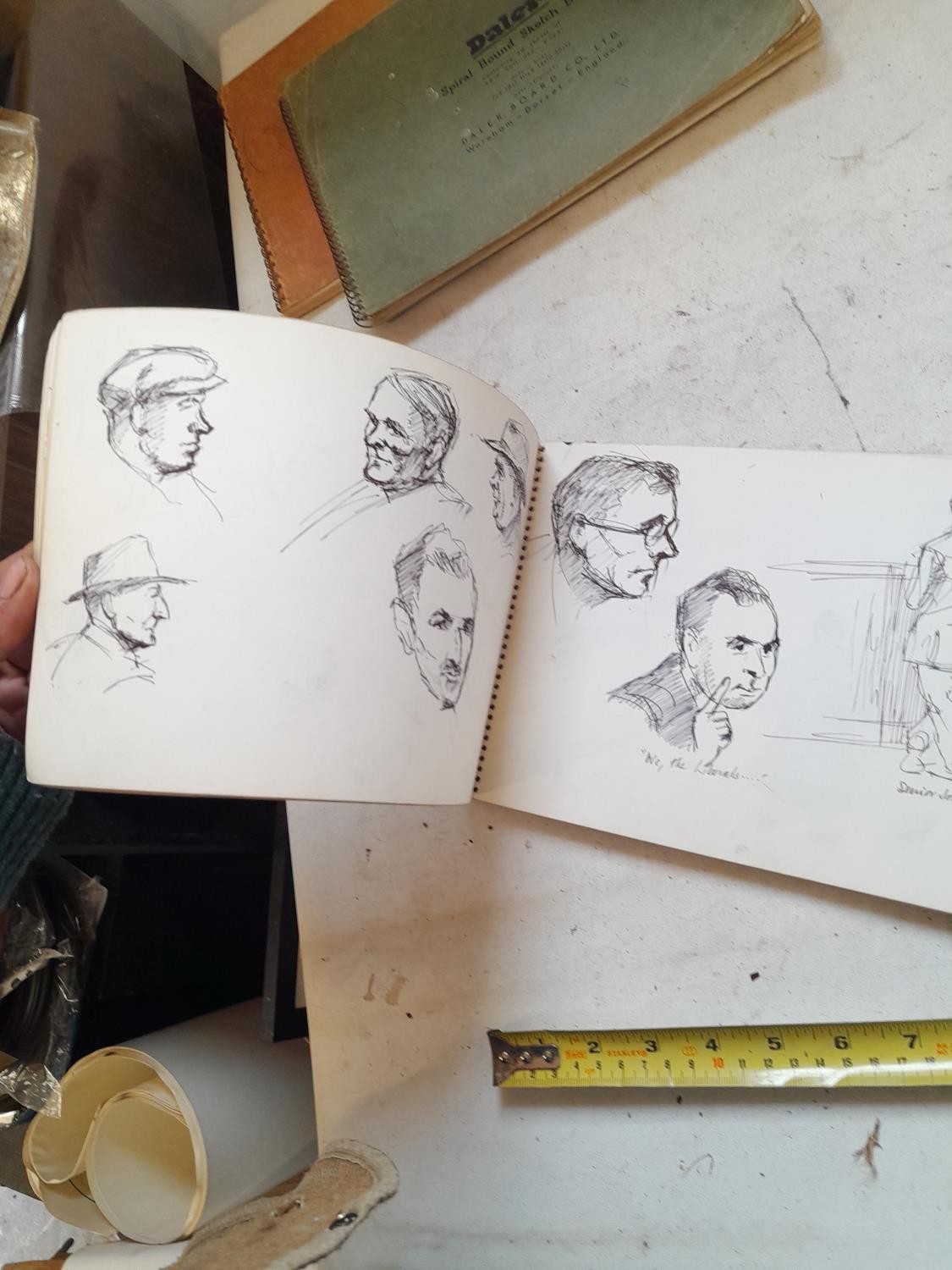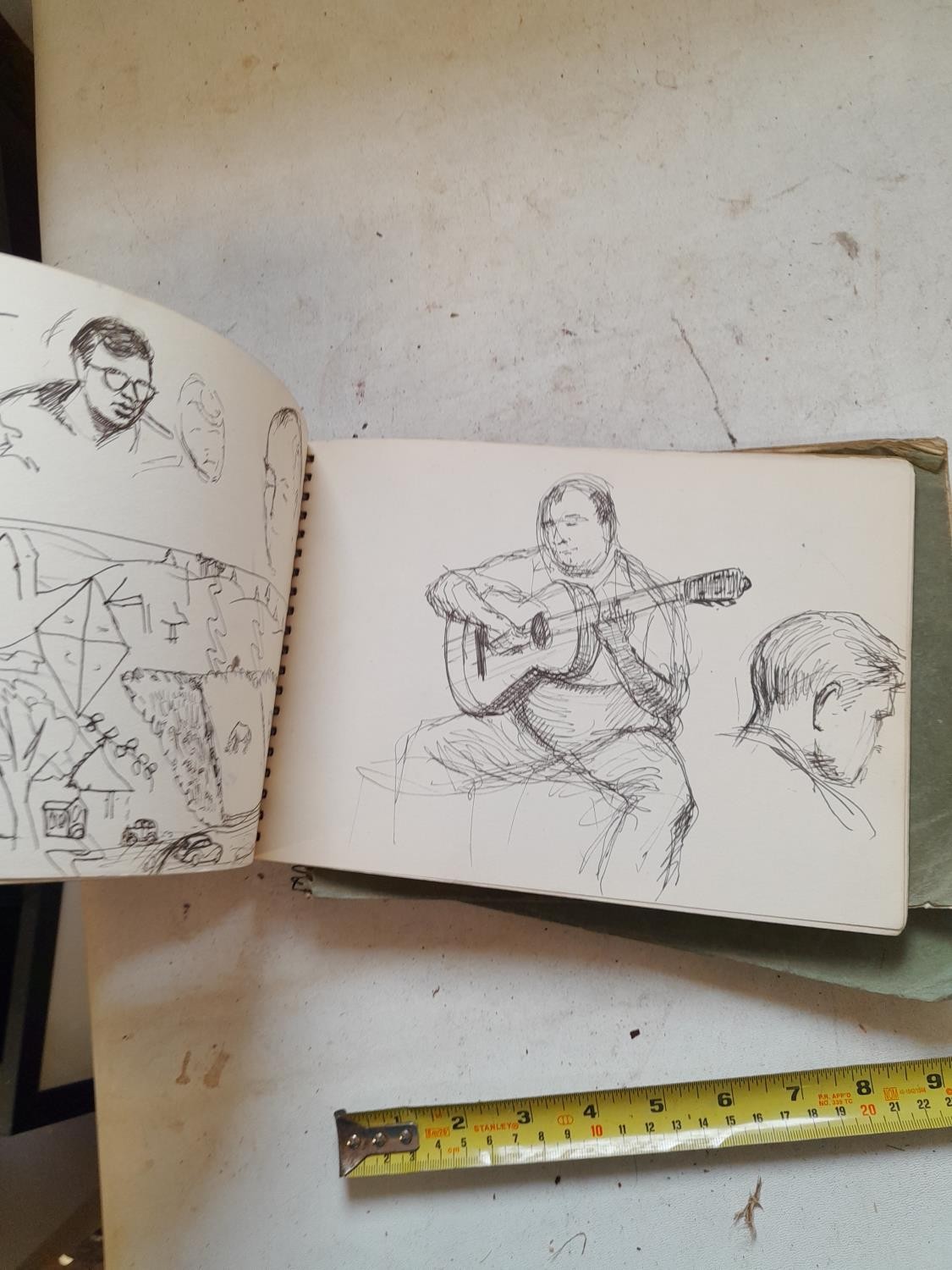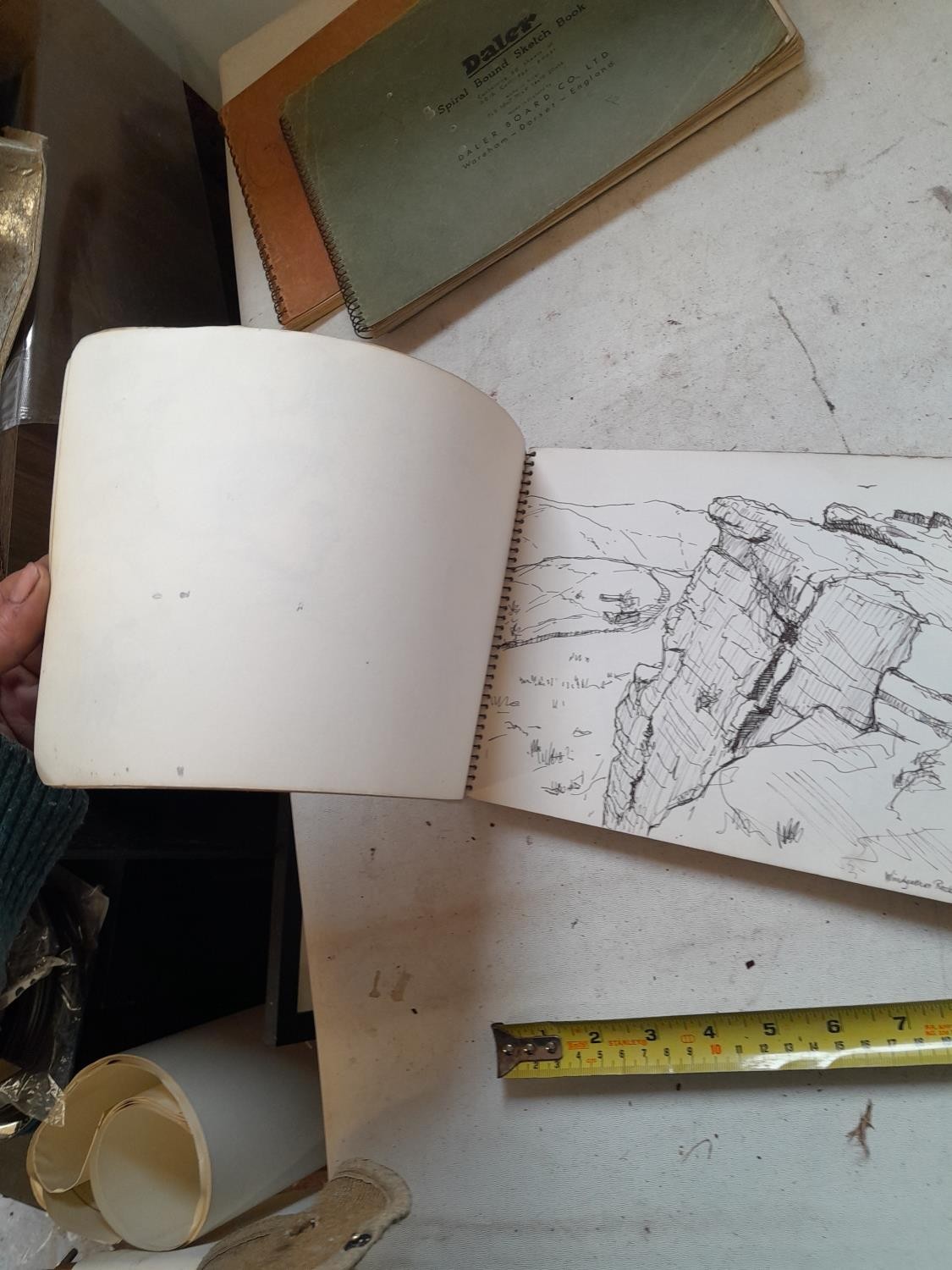 Sketchbooks and pads and loose pen and ink and pastels by Gerald Moneypenny dating from 1950s to early 1970s, assorted themes throughout some portraits etc.