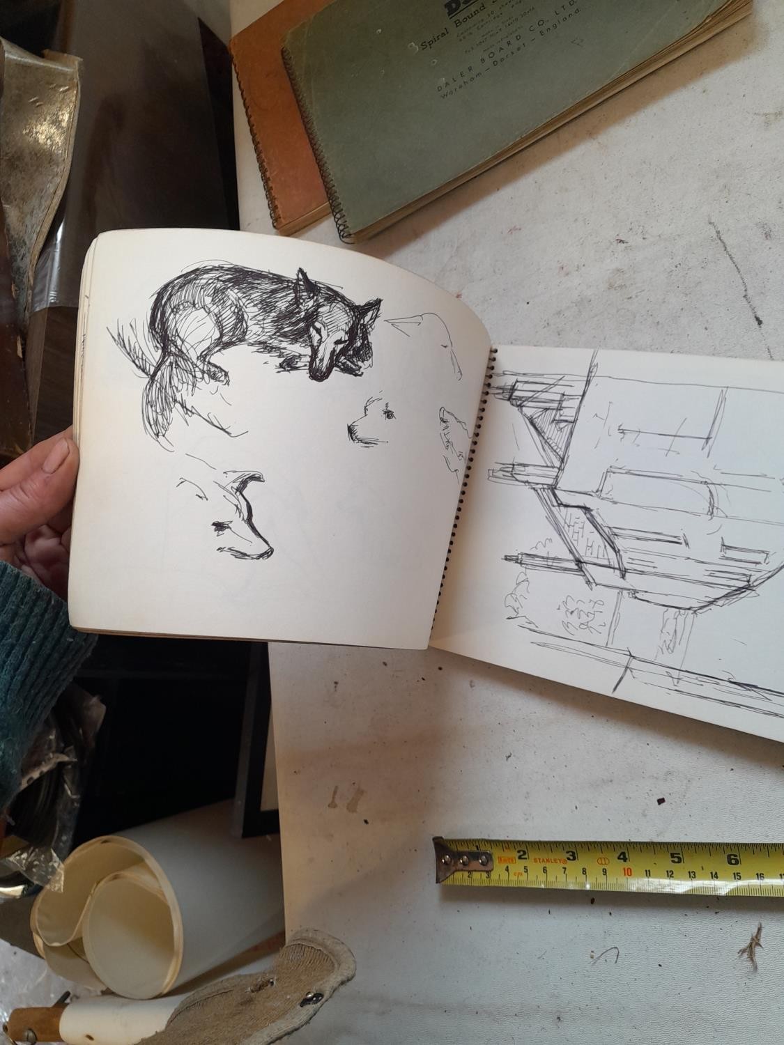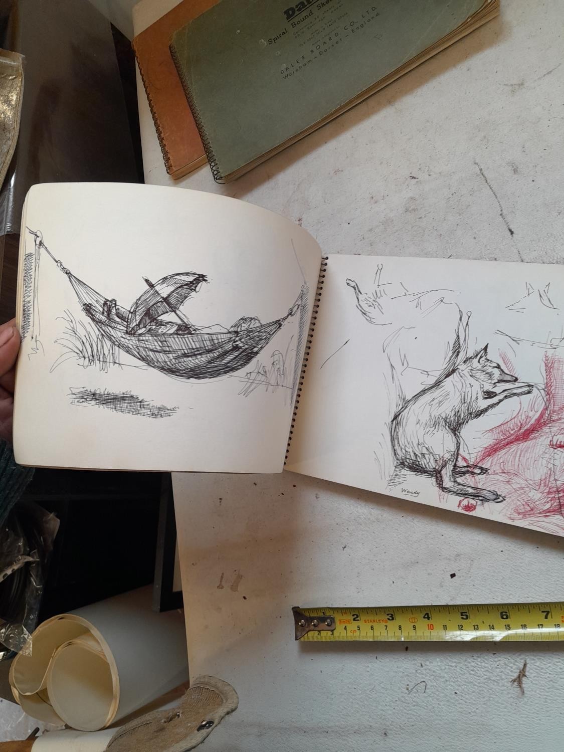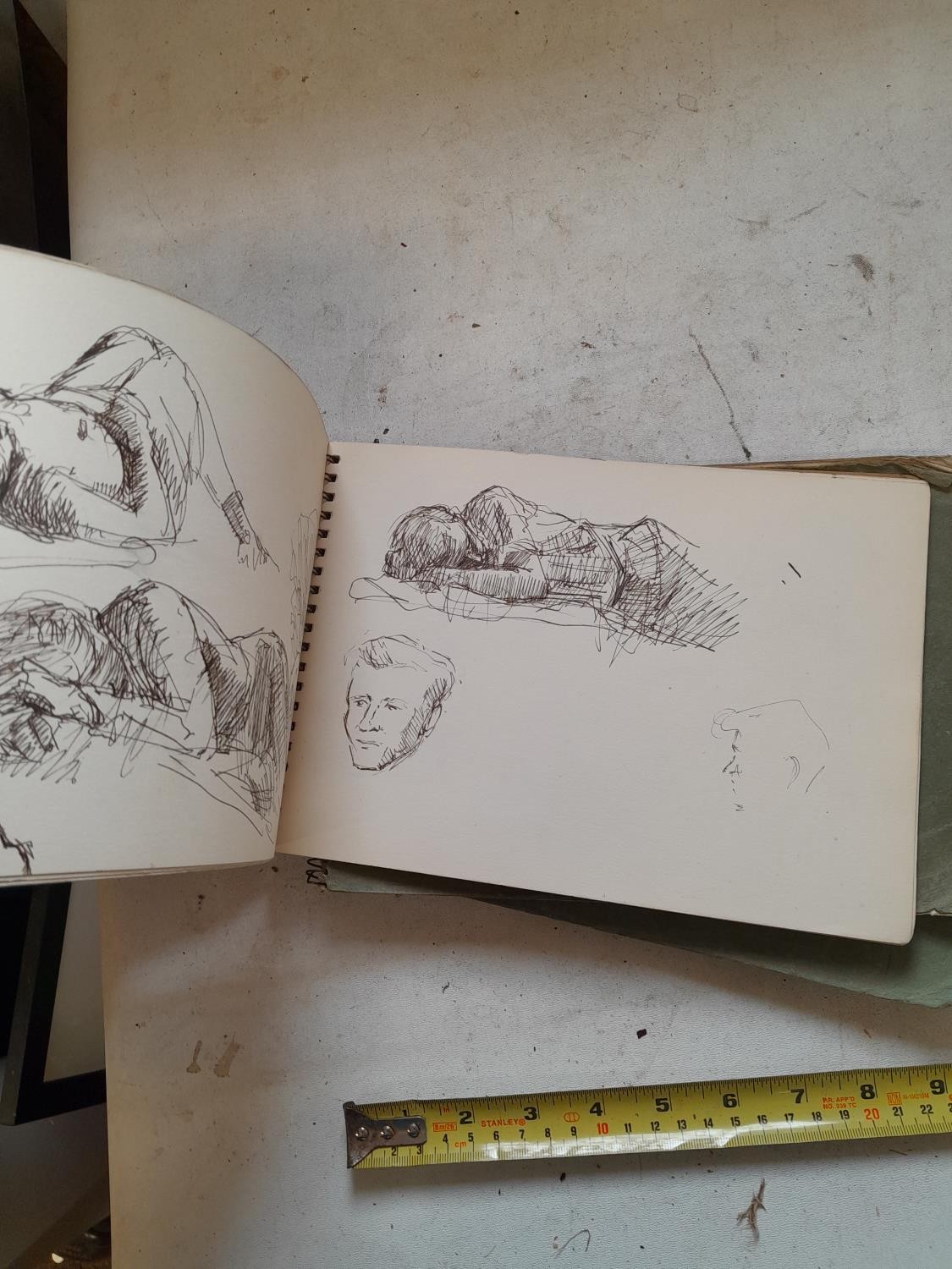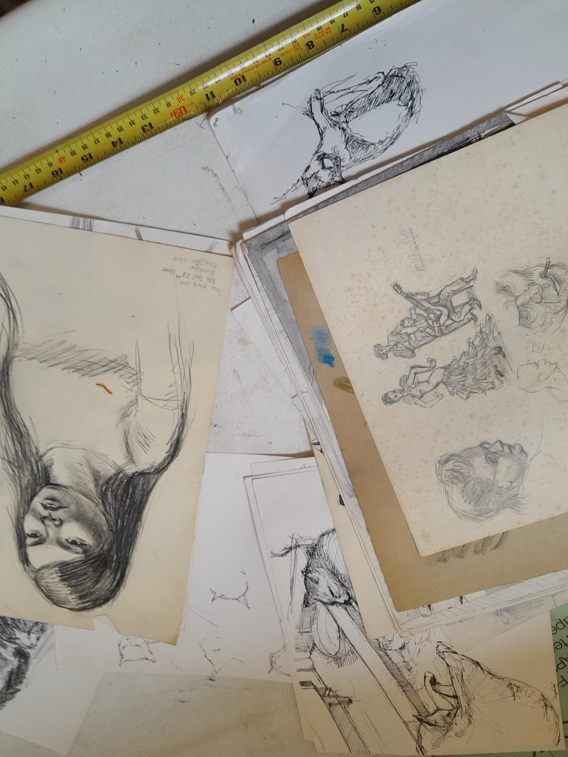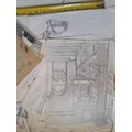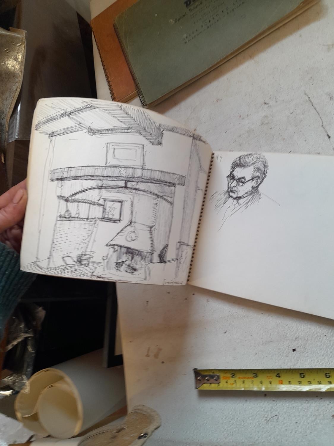Sketchbooks and pads and loose pen and ink and pastels by Gerald Moneypenny dating from 1950s to early 1970s, assorted themes throughout some portraits etc.
