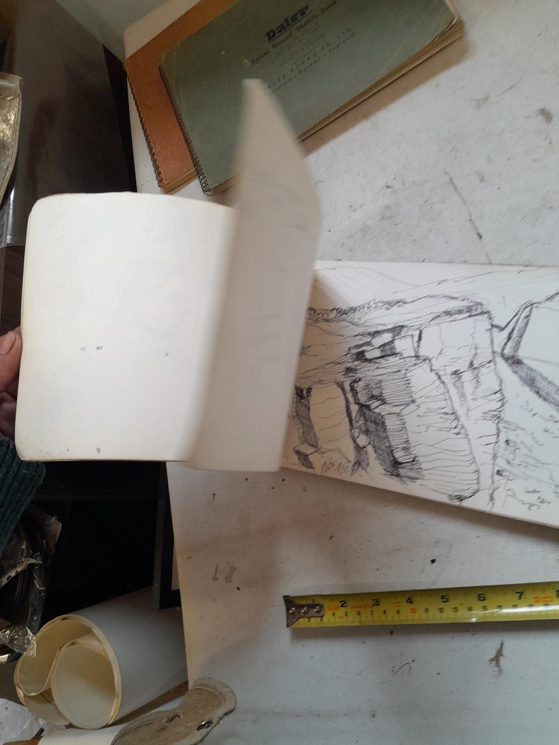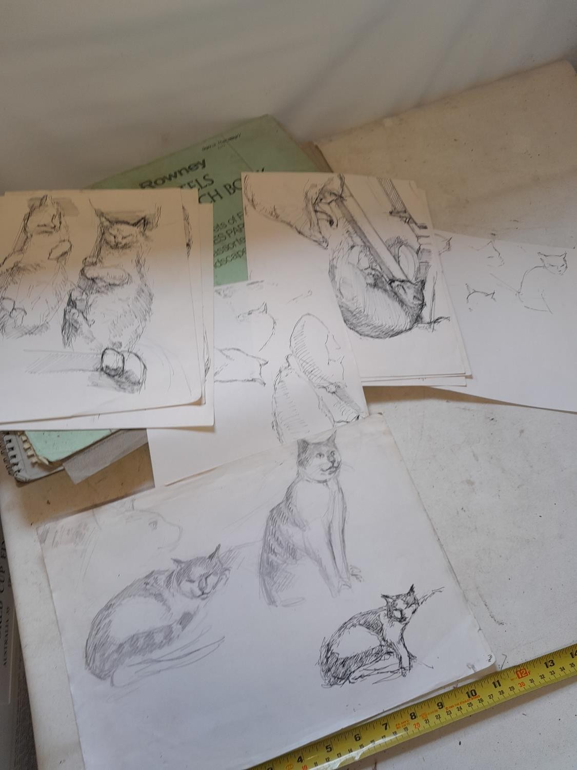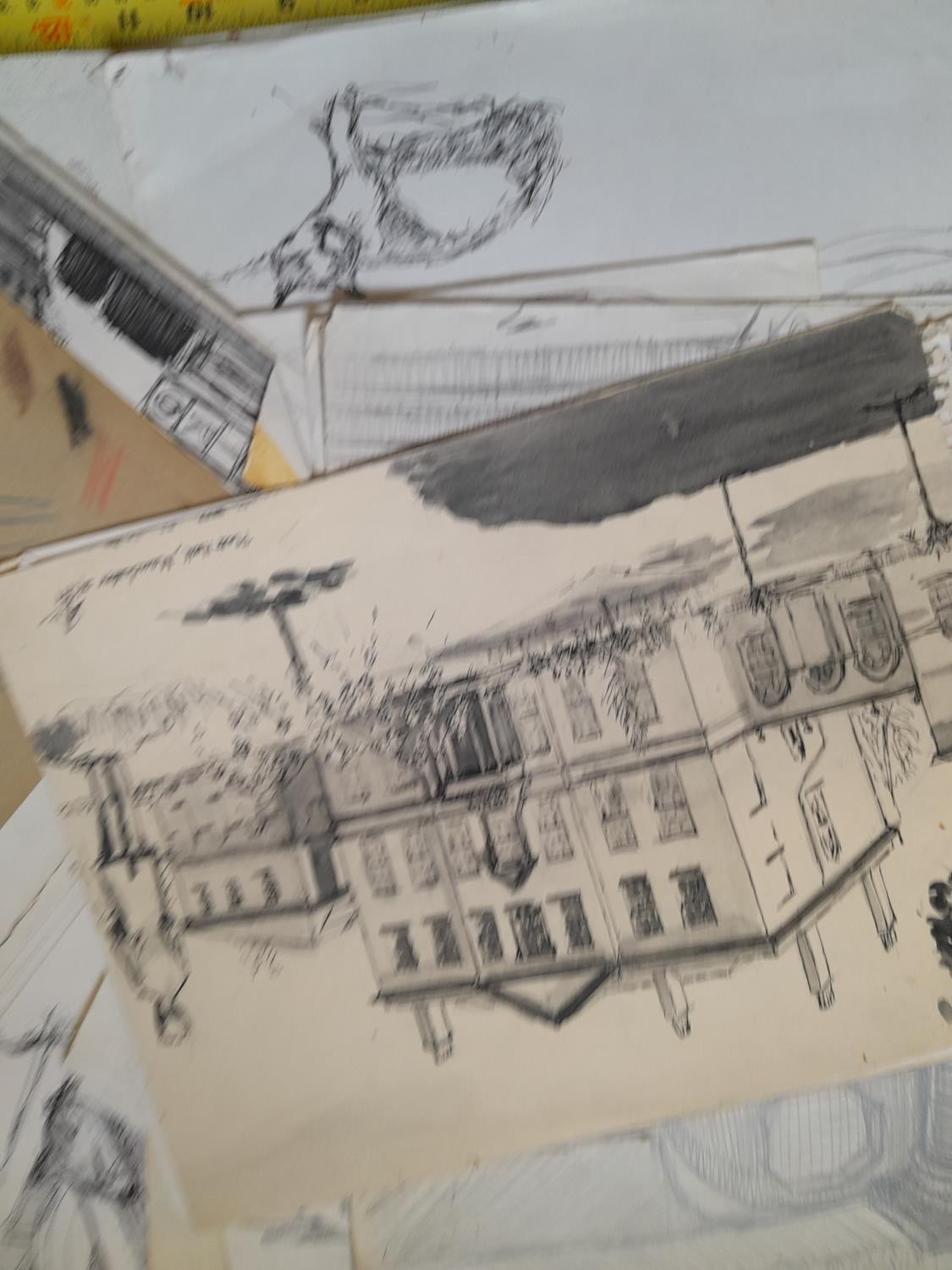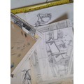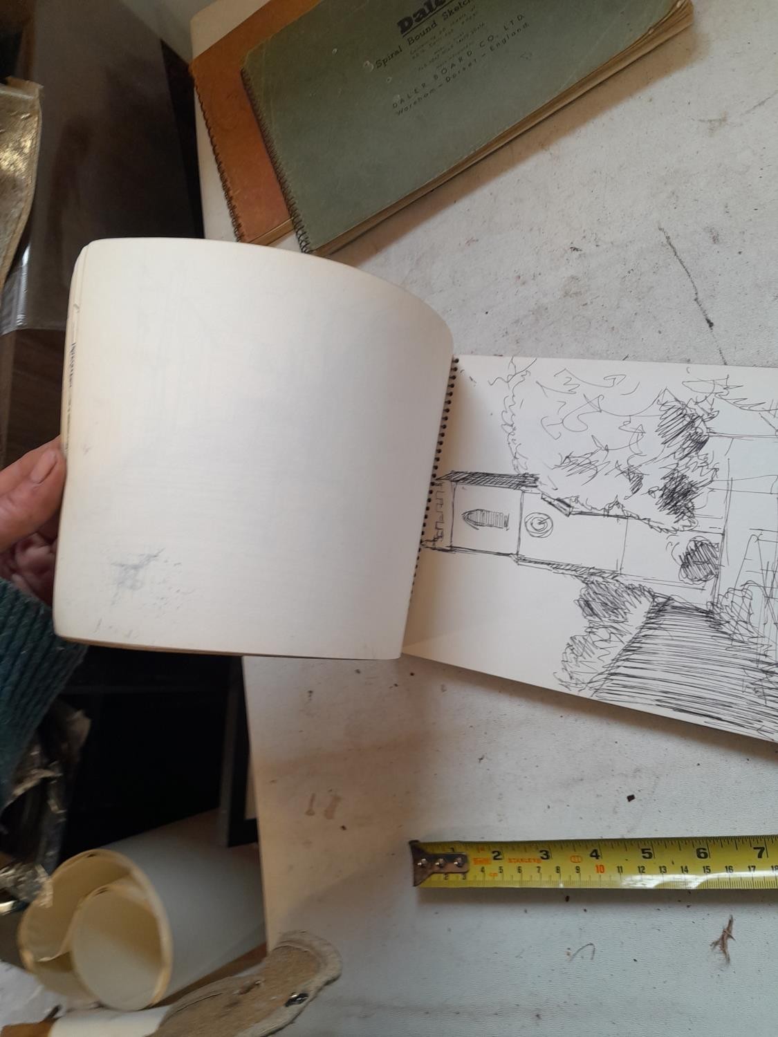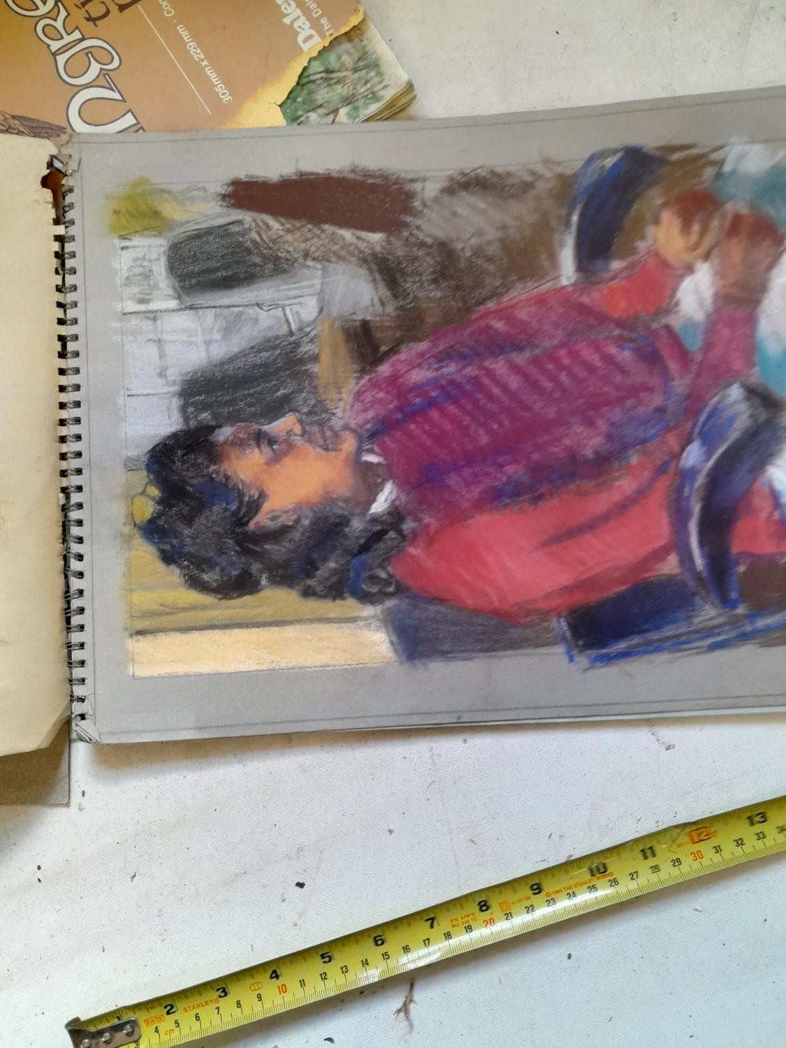 Sketchbooks and pads and loose pen and ink and pastels by Gerald Moneypenny dating from 1950s to early 1970s, assorted themes throughout some portraits etc.