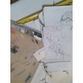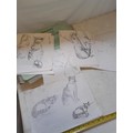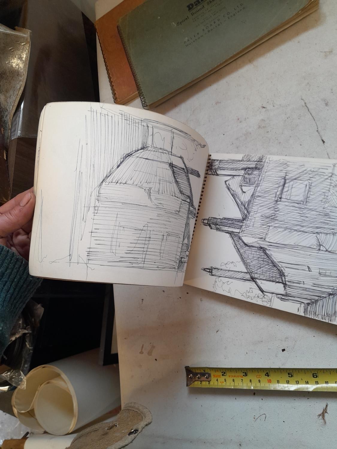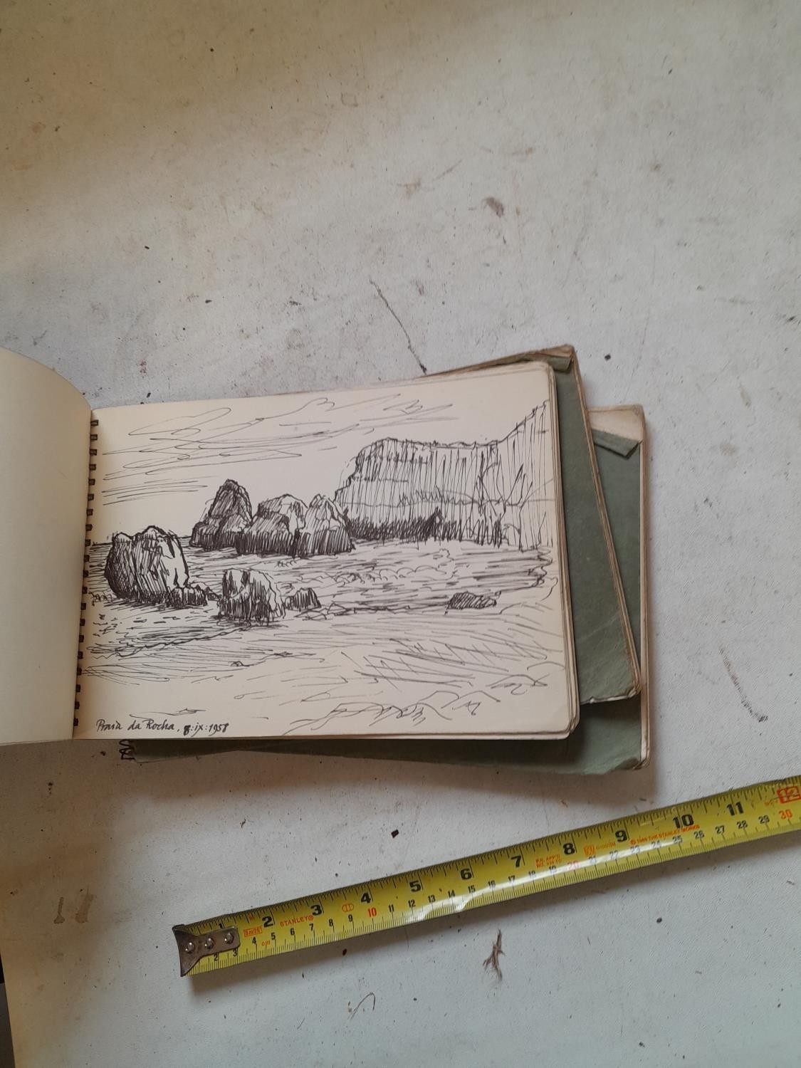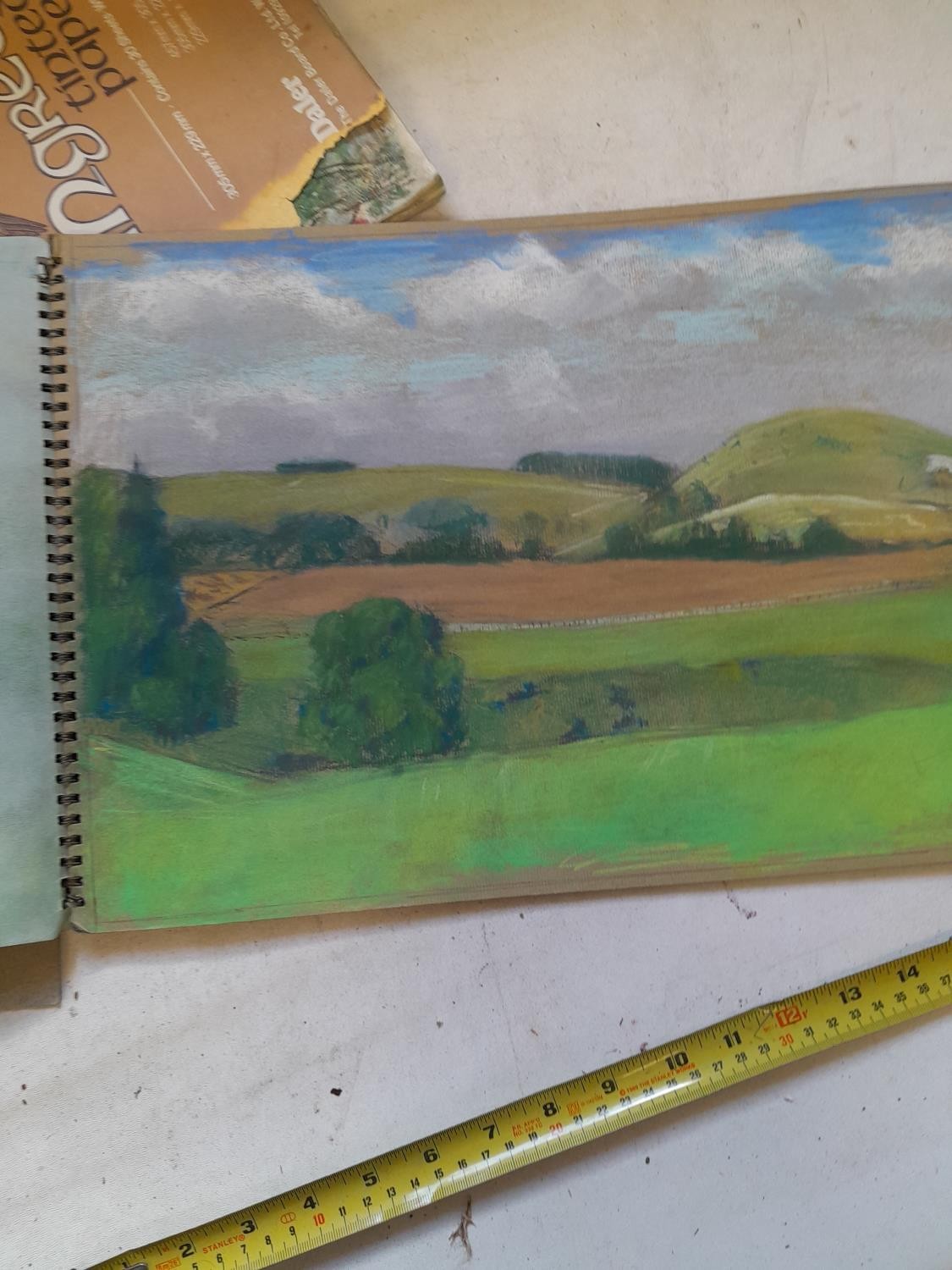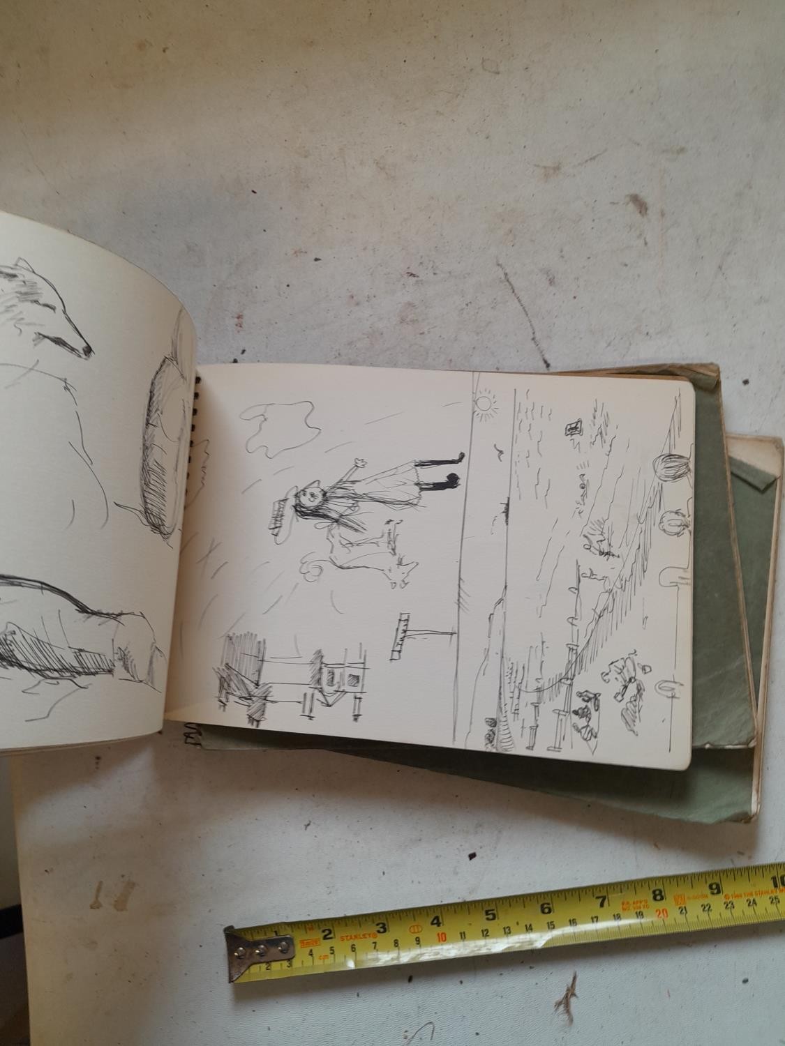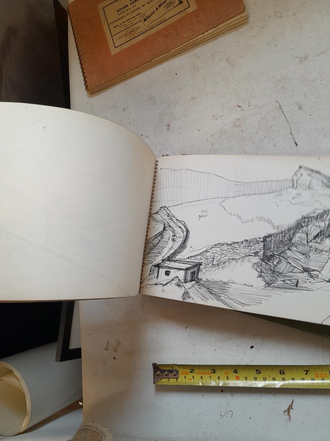 Sketchbooks and pads and loose pen and ink and pastels by Gerald Moneypenny dating from 1950s to early 1970s, assorted themes throughout some portraits etc.