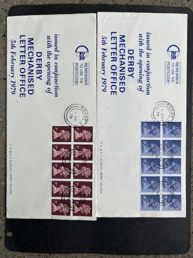 GB FDCs 70p & 90p Derby cds on pair of covers "Postcode" (S) (2)