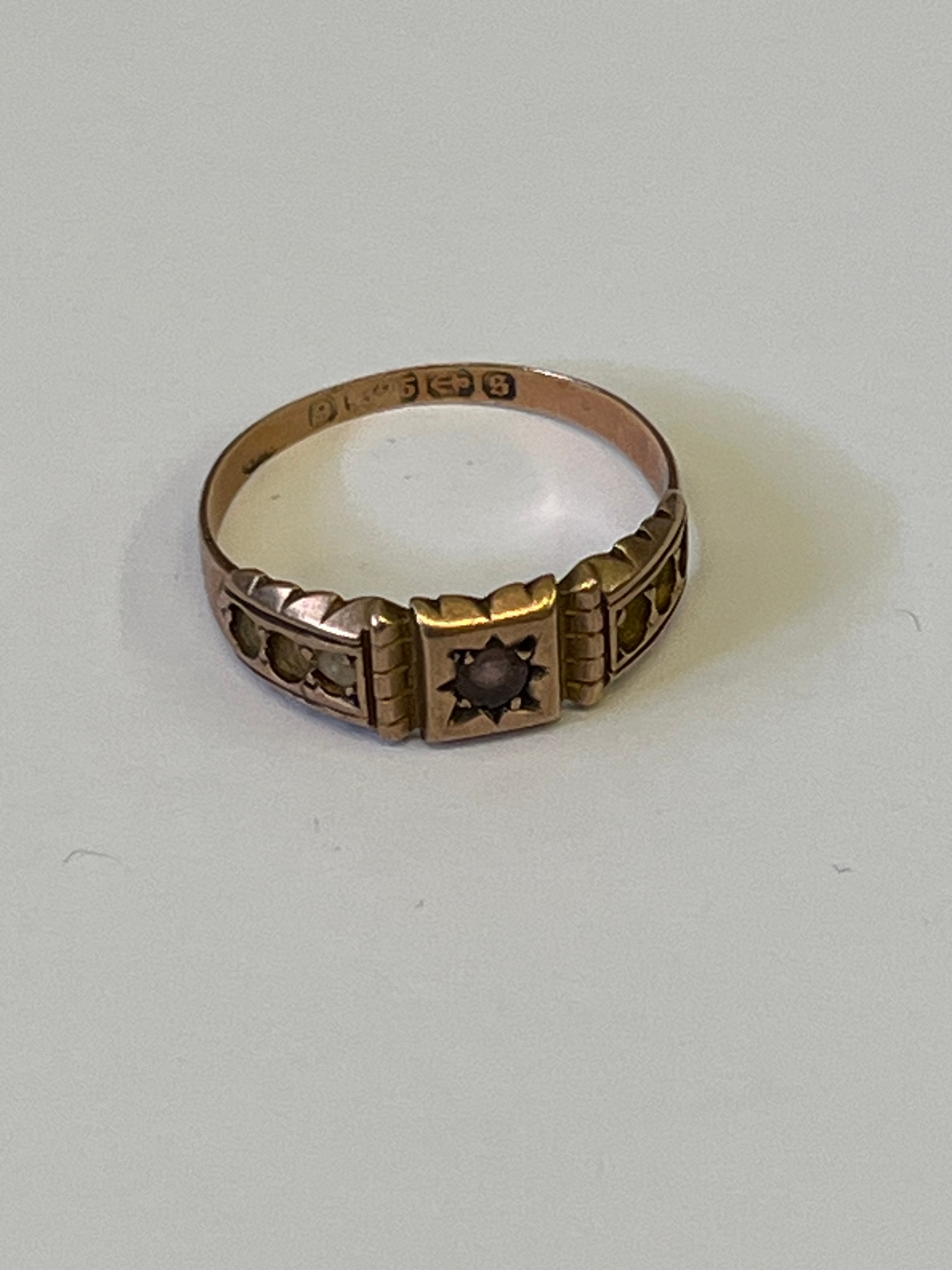 ANTIQUE 9CT ROSE GOLD RING WITH RED STONE 1892 SIZE Q WEIGHT 2.10GR