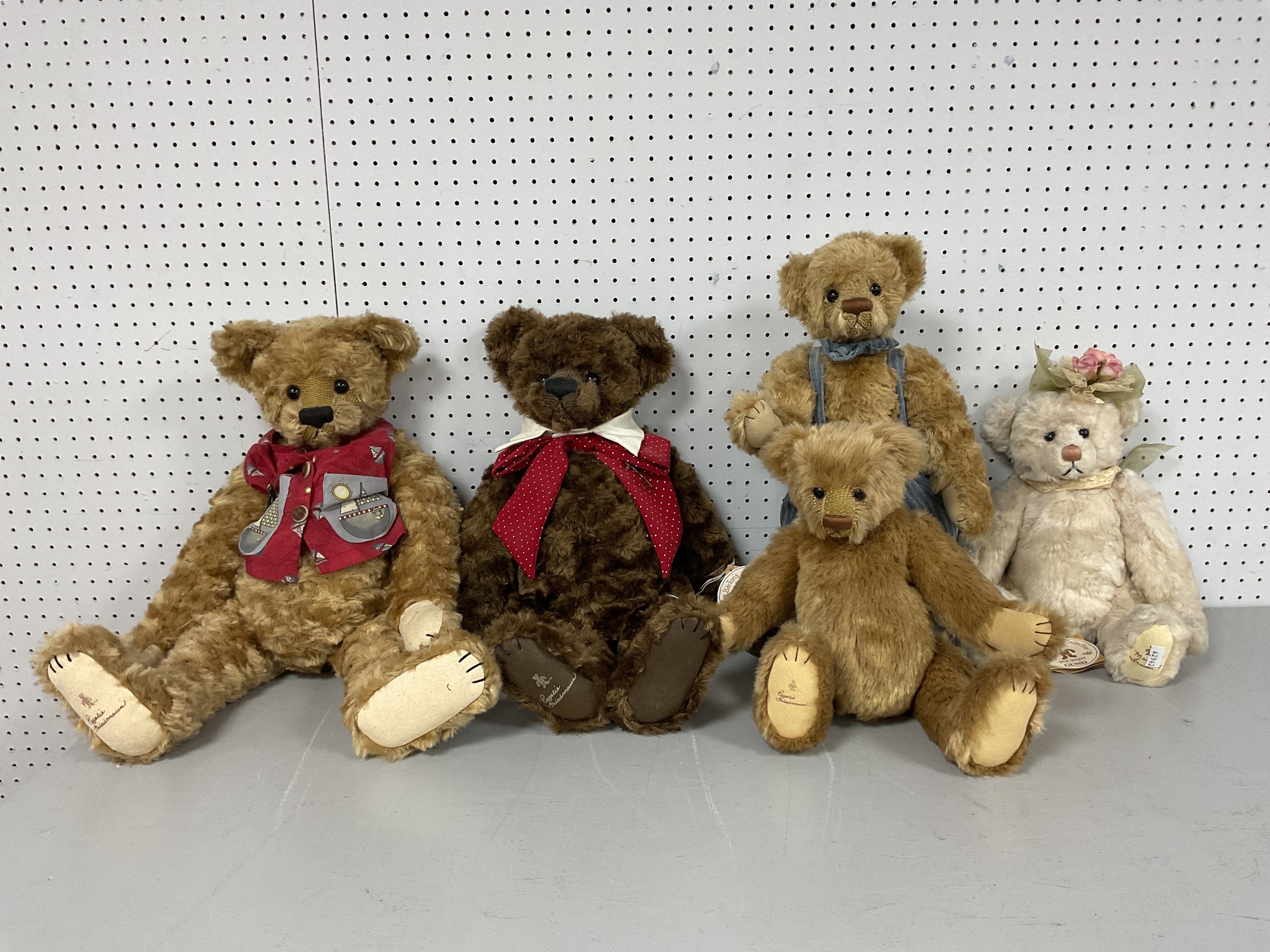 Five Gund Barton's Creek Collection Soft Bears. Four Rosalie Frischmann and One Marsha Friesen. To Include "Sammie", "John Thomas", "Emarald". Name Label To Two Bears Missing. Stand To One Bear Noted. Tallest Bear Measures Approximately 22" Tall.