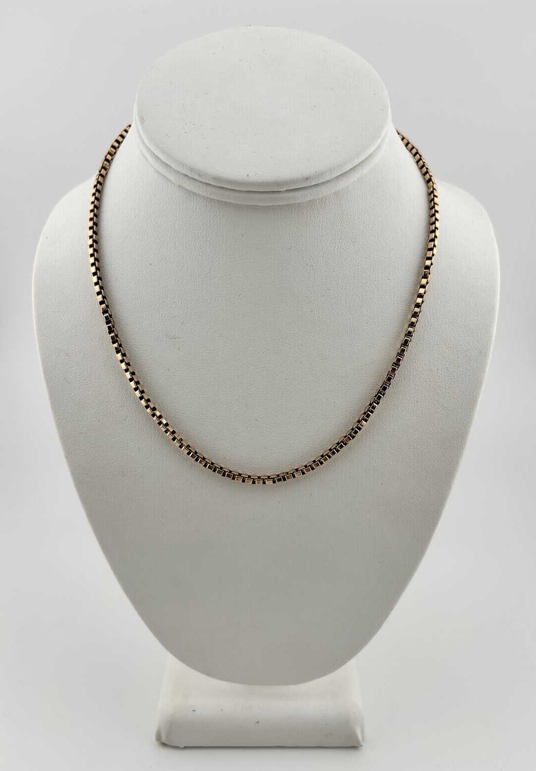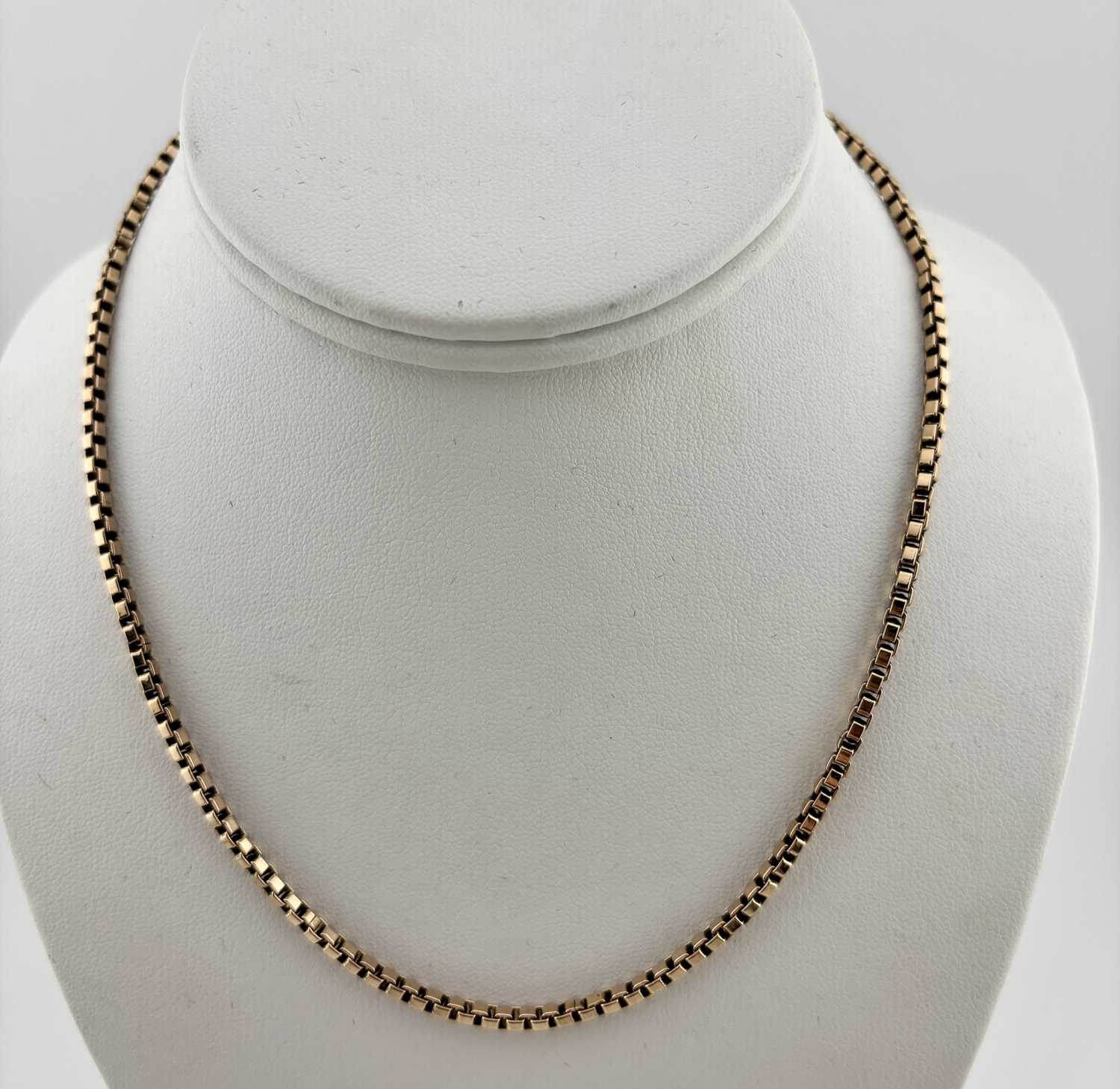 A 9ct gold box-link chain necklace, import marks for London 1979, length 42.5cm, 15.9g.