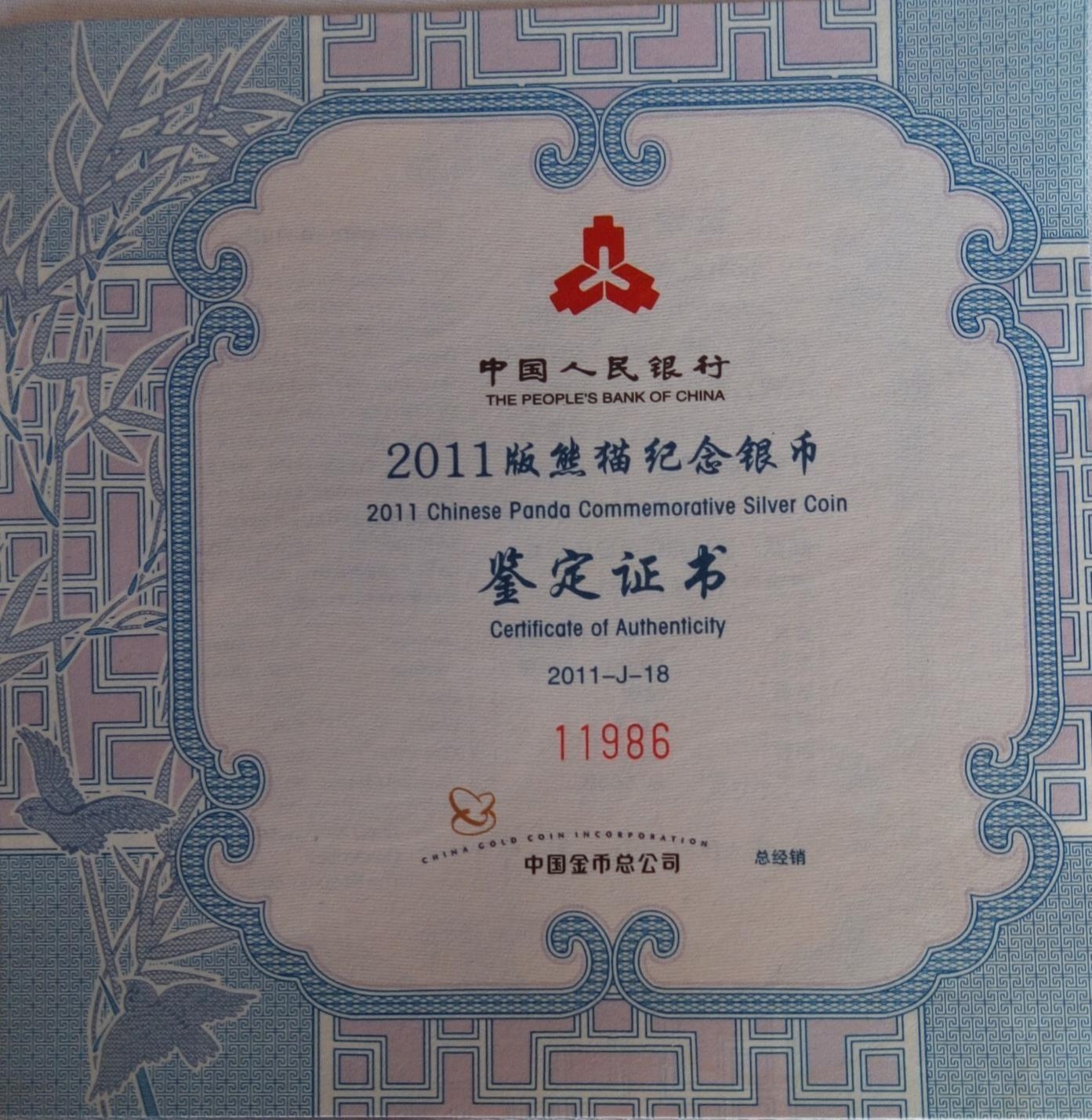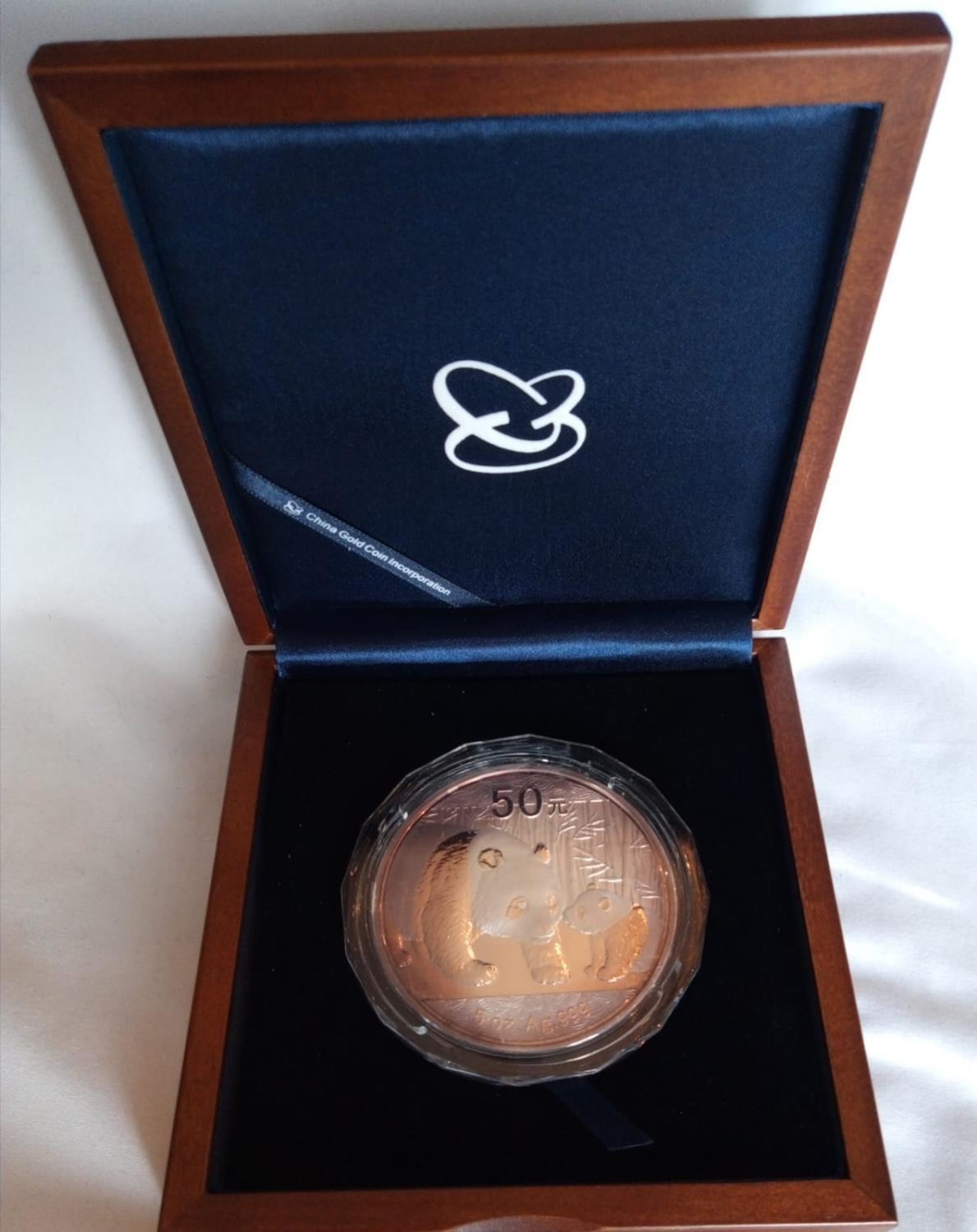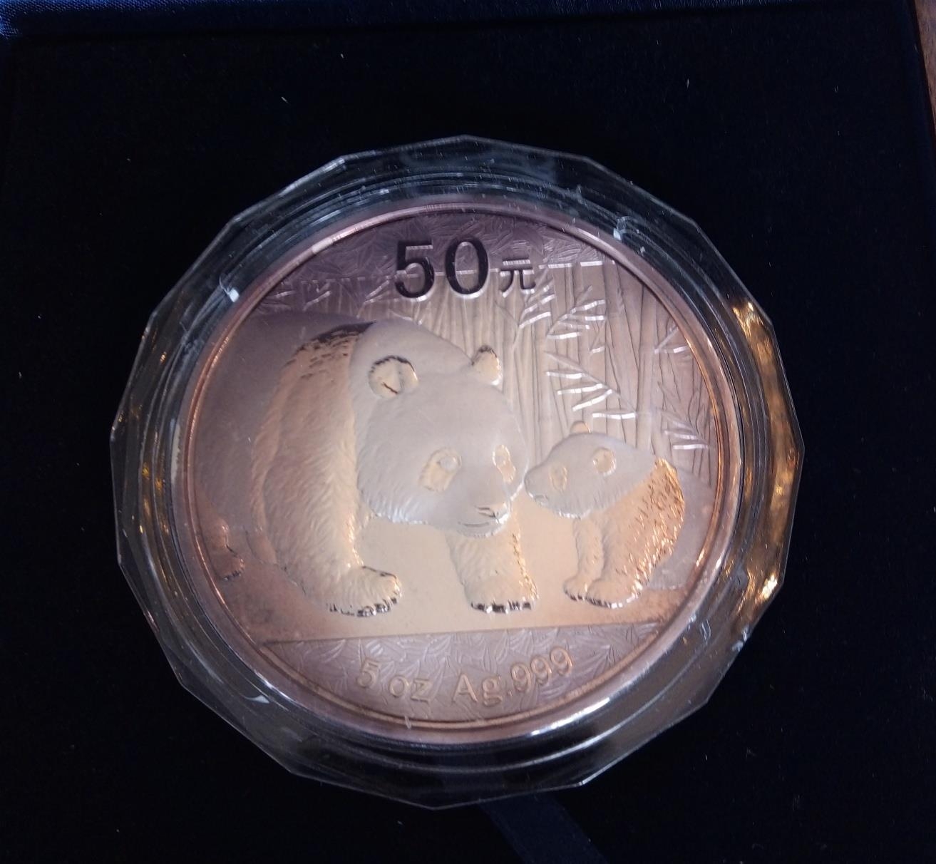 A SILVER 5OZ CHINESE PANDA COMMEMORATIVE PROOF COIN, DATED 2011