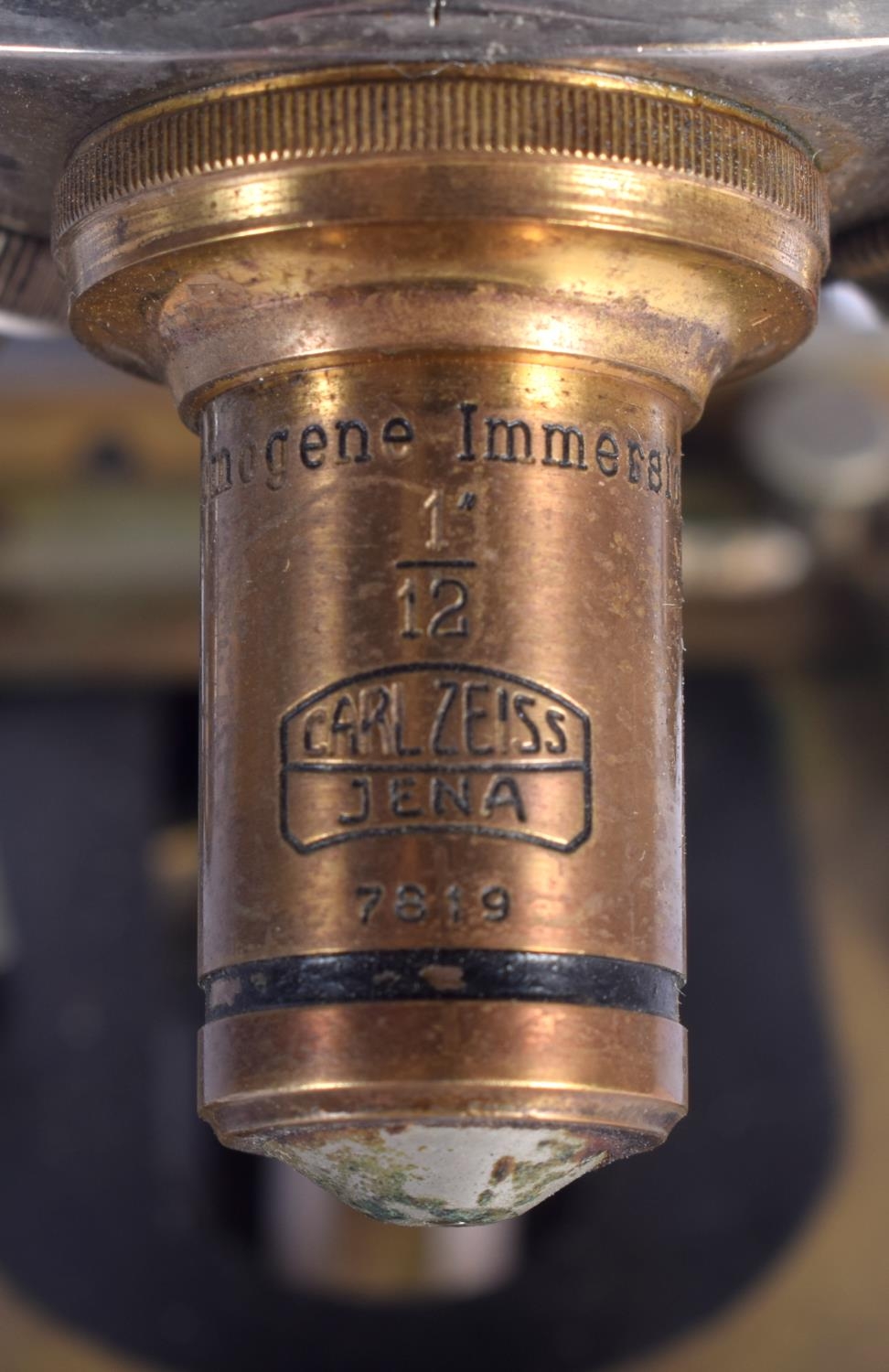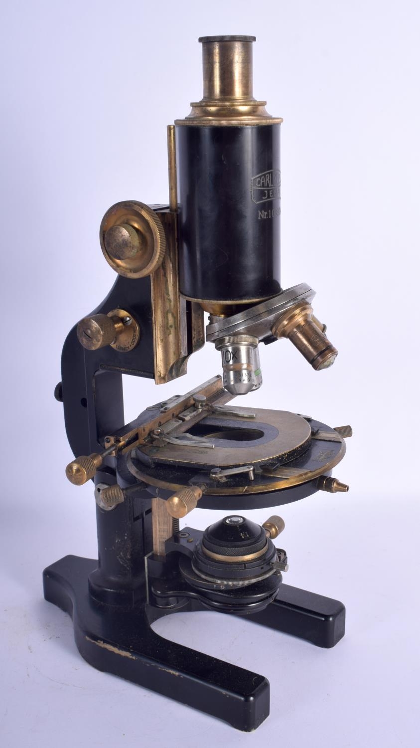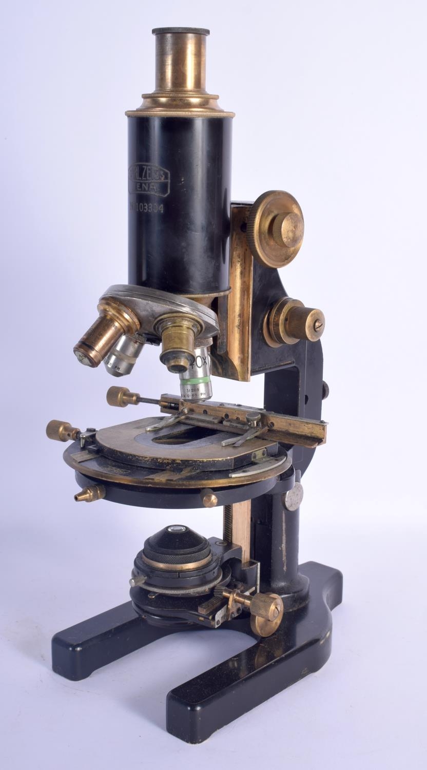 A CARL ZEISS JENA NO 103304 MICROSCOPE. 36 cm high.