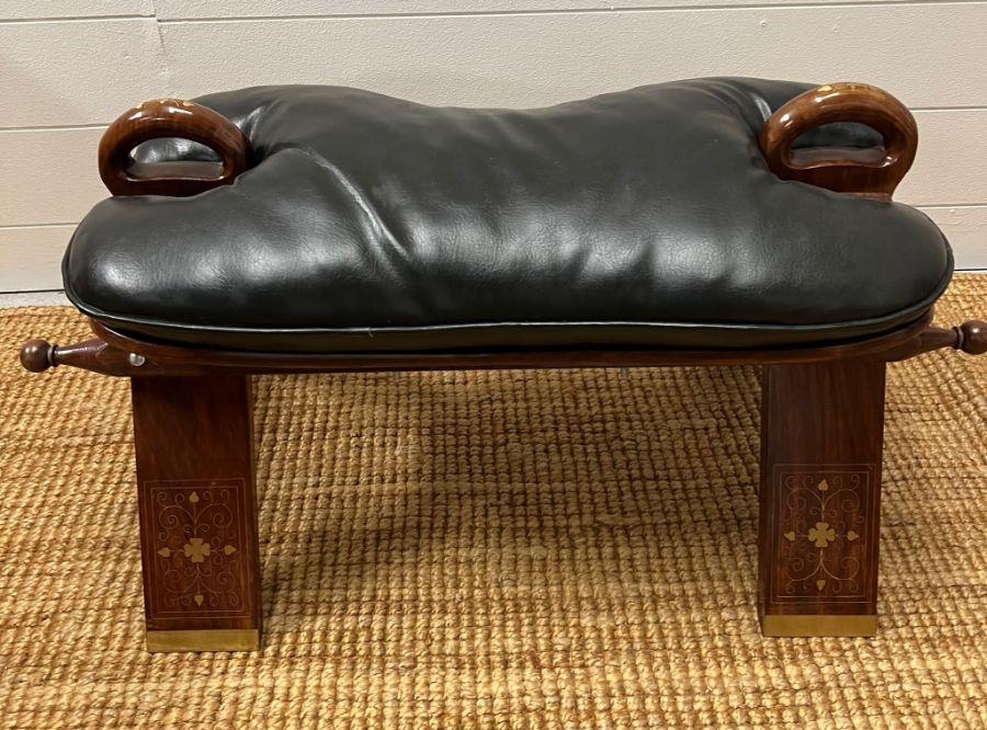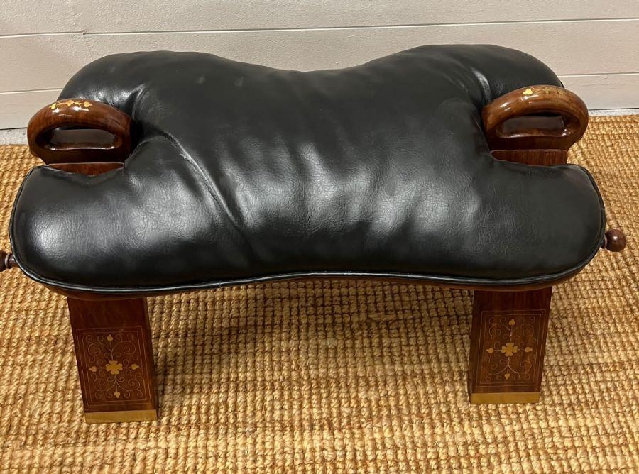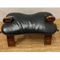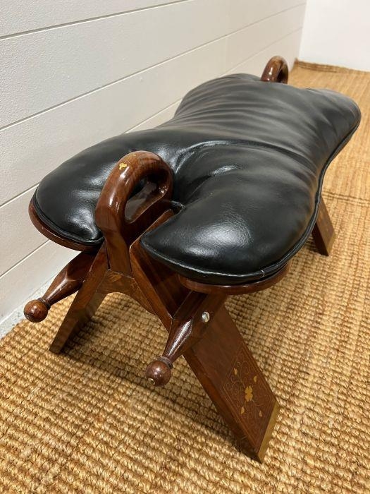 A camel seat with a leather seat pad and inlay brass decorations (H38cm W70cm)