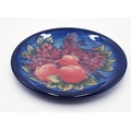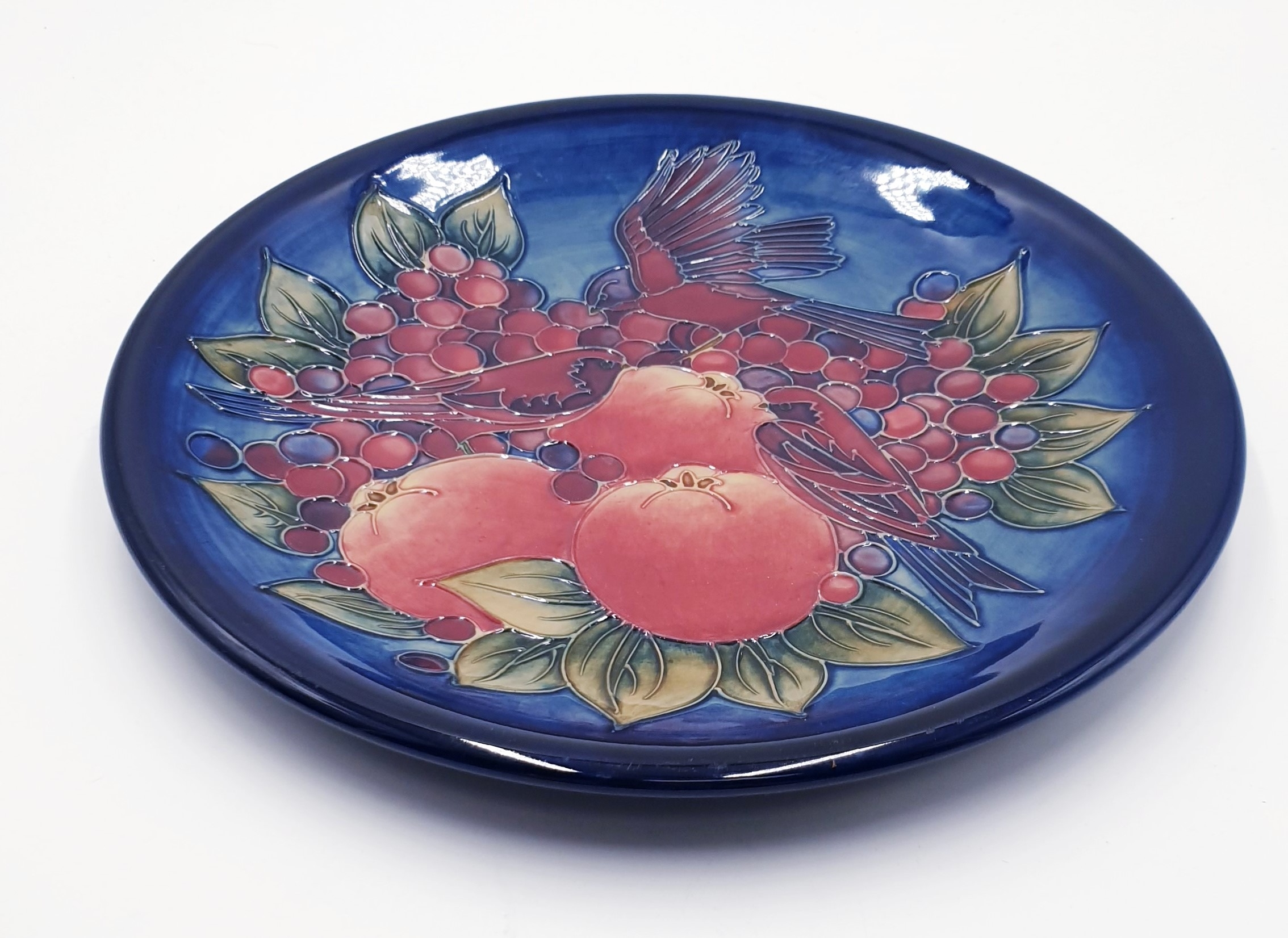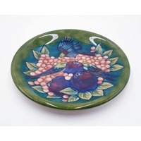 MOORCROFT Extra Large 35cm Dia CHARGER DECORATED WITHE FINCHES ON A BLUE GROUND By Designer Sally Tuffin