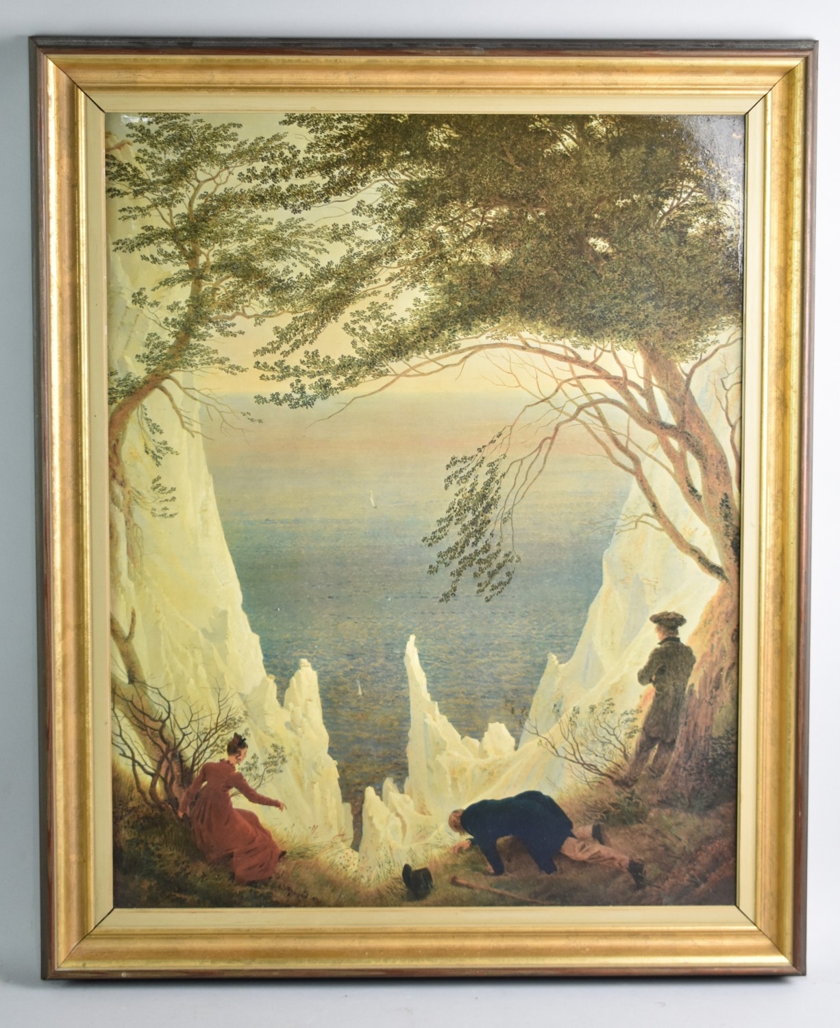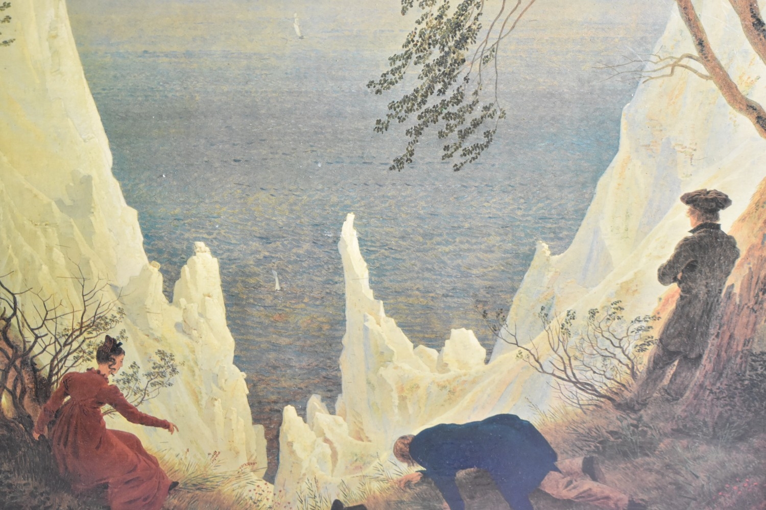 A Framed Print after Caspar David Friedrich depicting Mountaineering Scene, 44x55cms, Details Verso