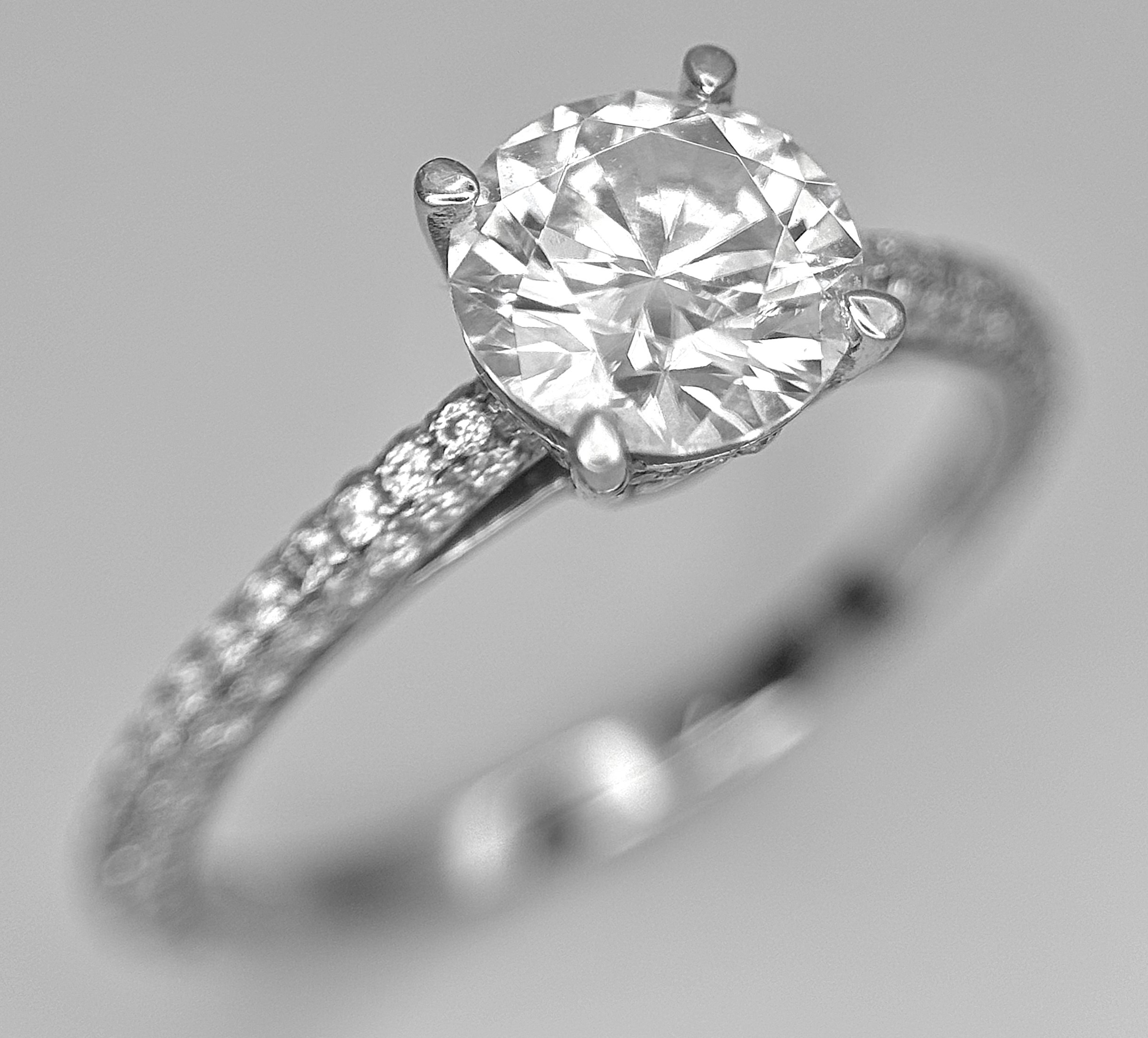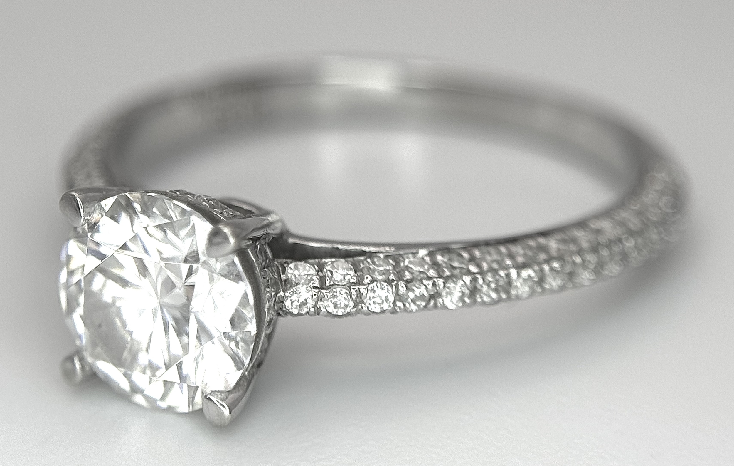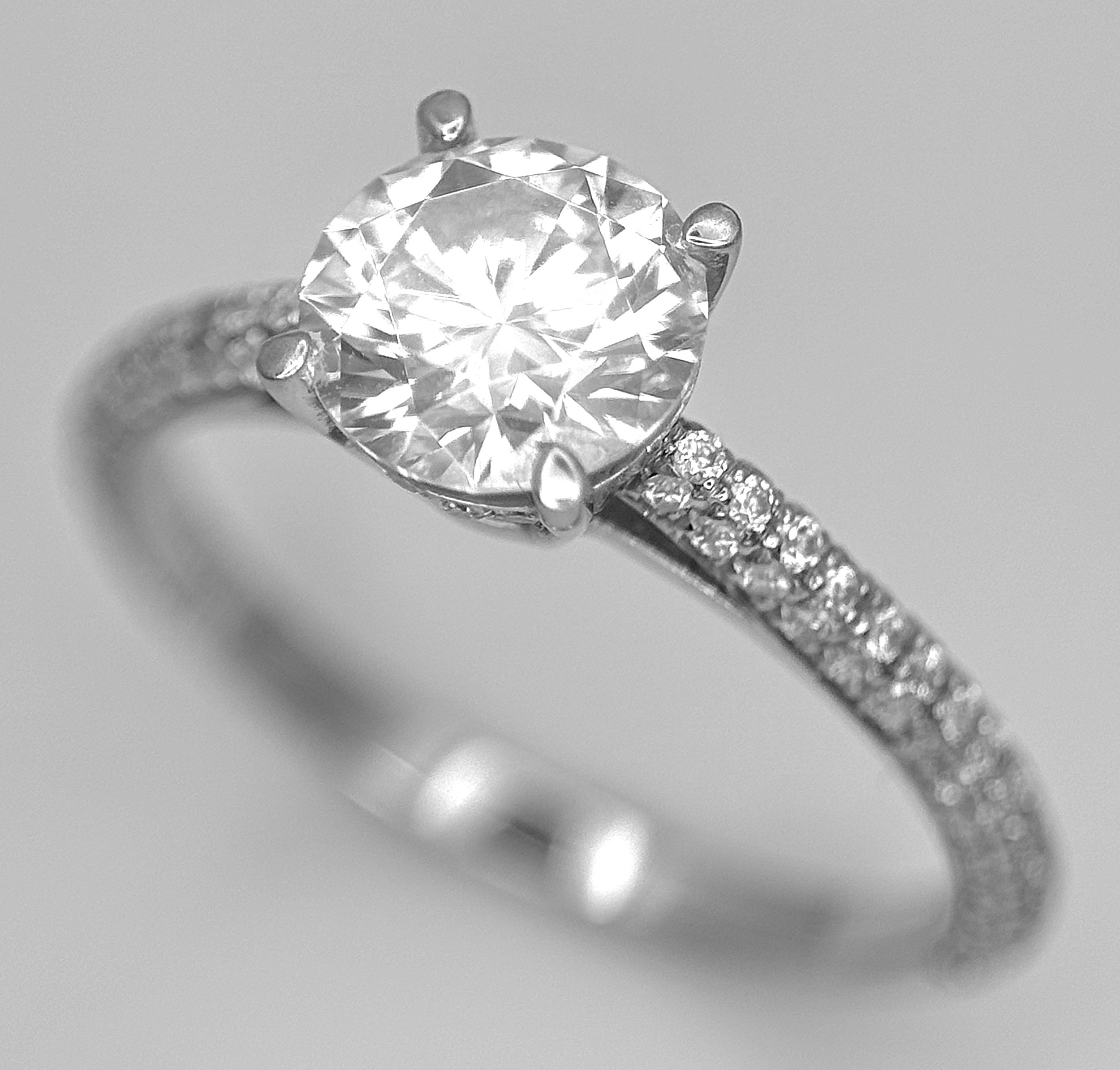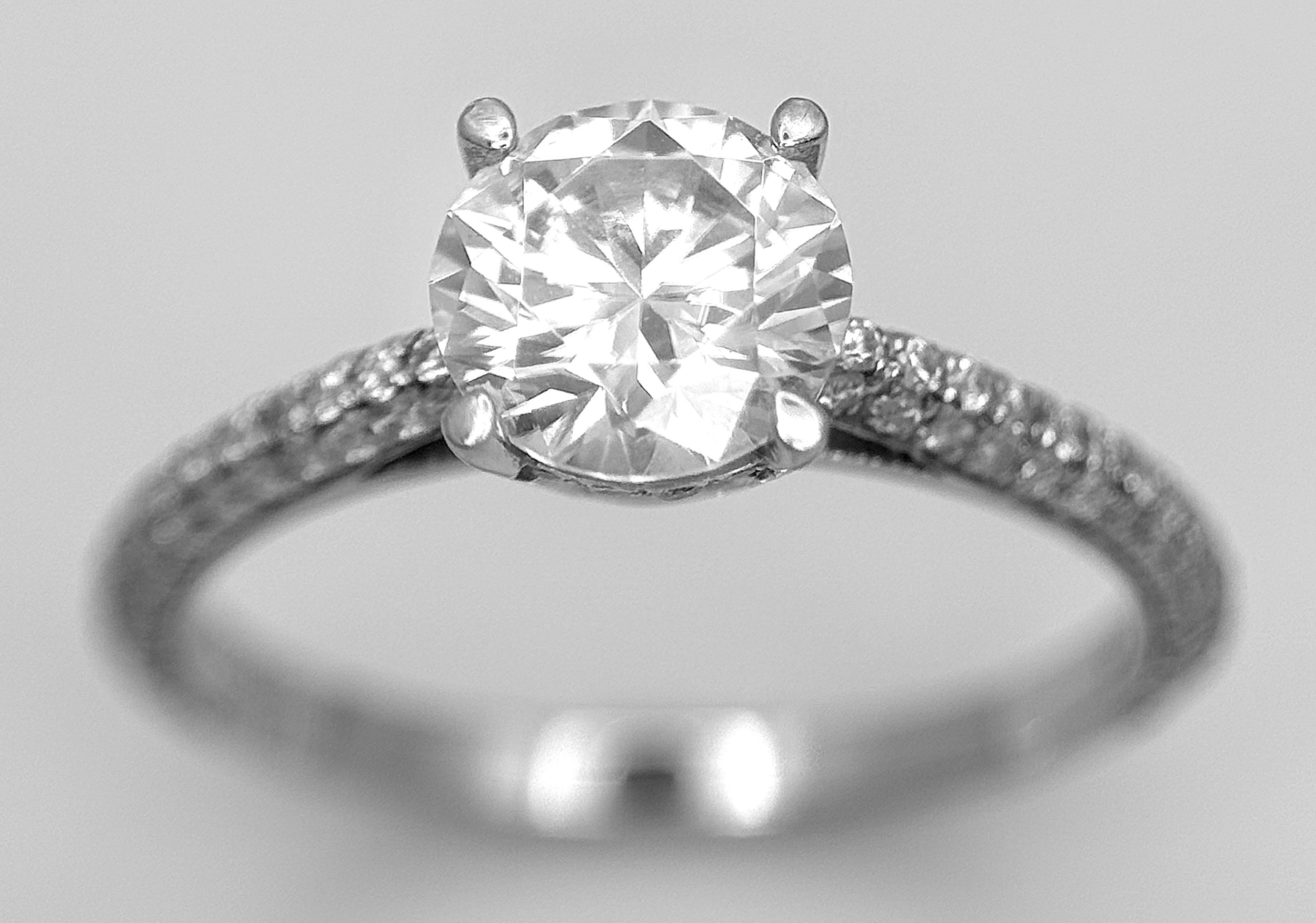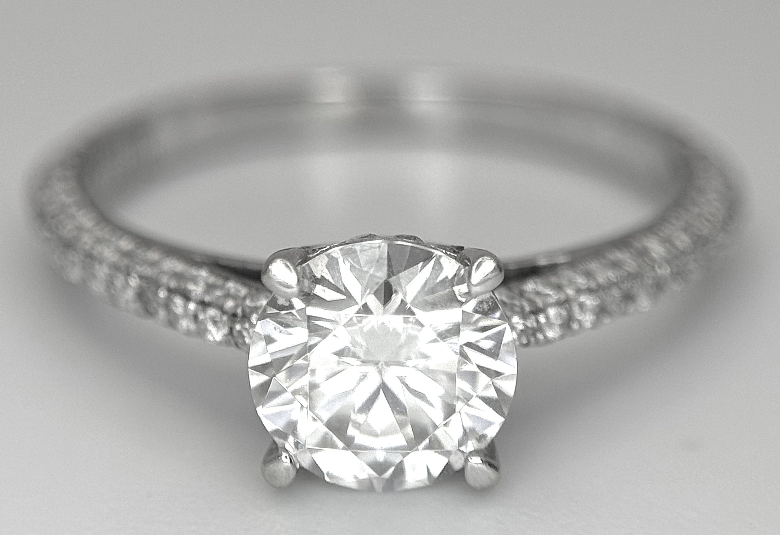 An 18K White Gold LAB Grown Diamond Ring. Round brilliant cut centre stone - 1ct. Size M. 2.2g
