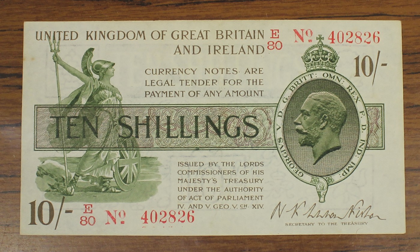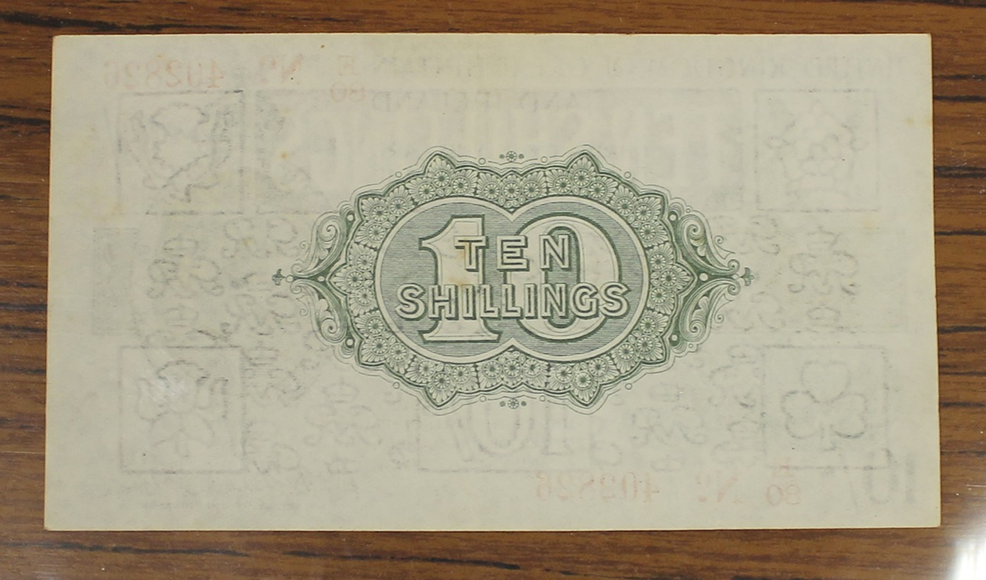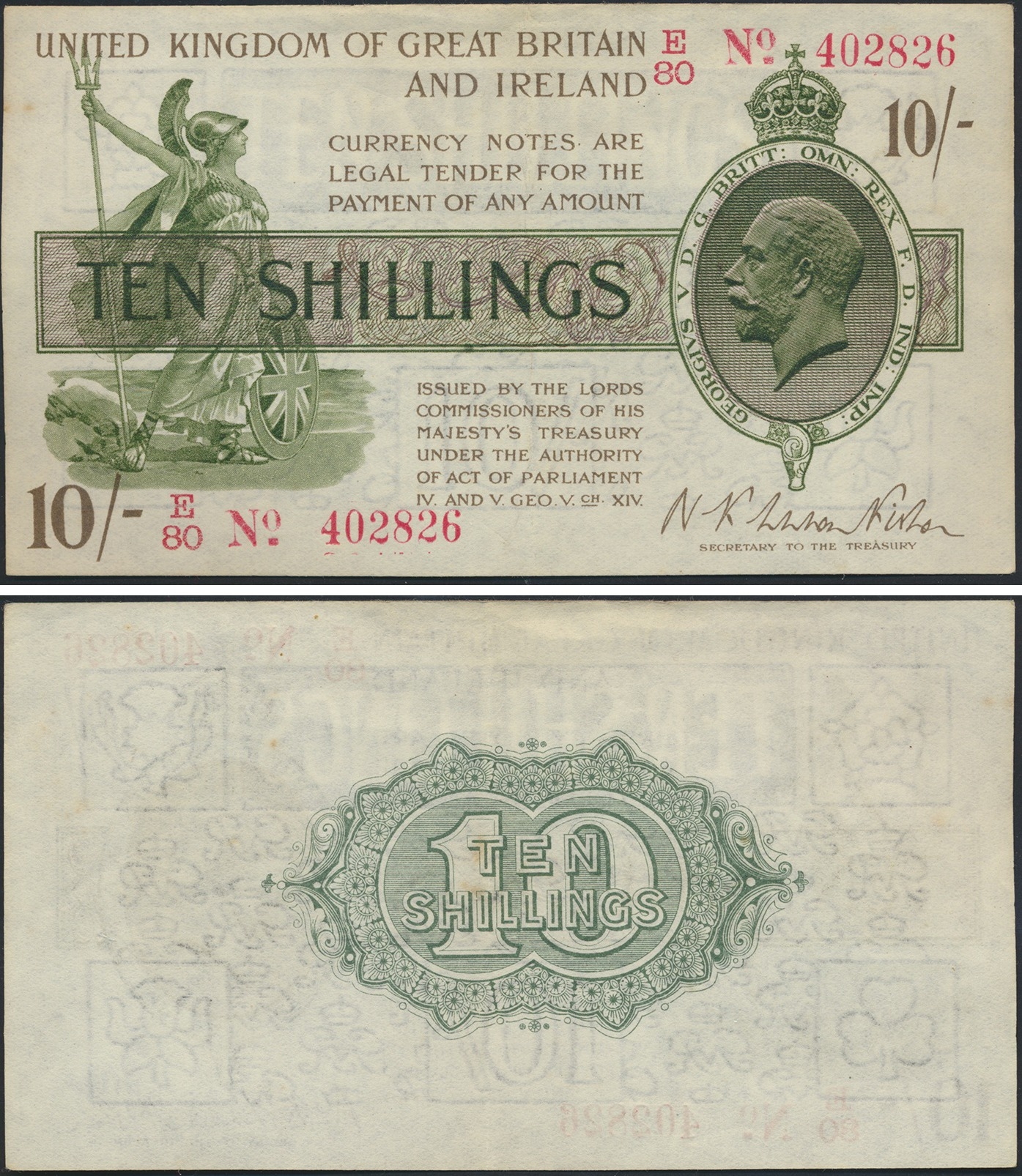 N.F. Warren Fisher. Pair of 10/- banknotes, with red dash E/80 402826 extremely fine (Duggleby T26) and P/34 854660 very fine (Duggleby T30). (N)